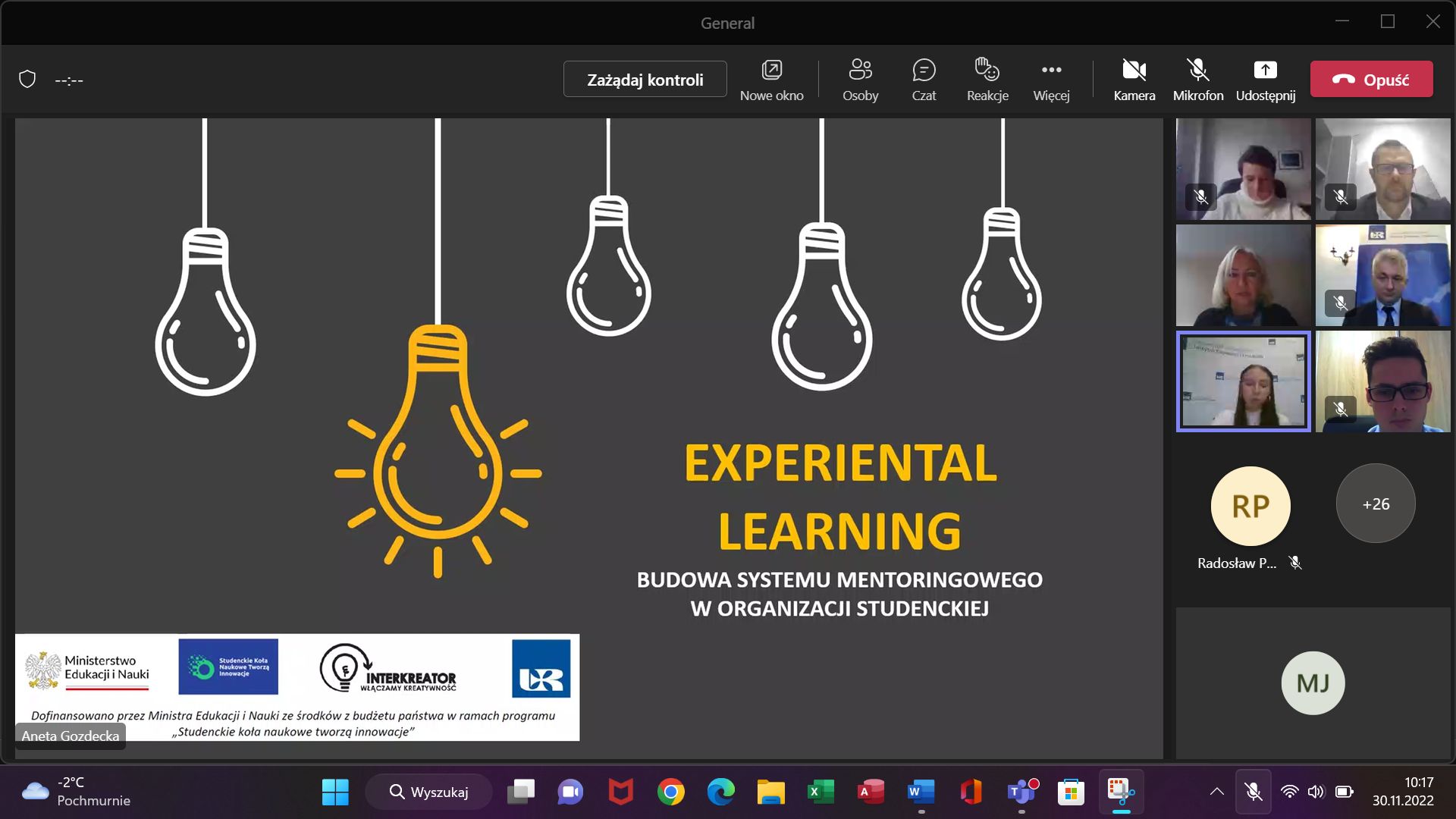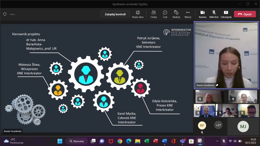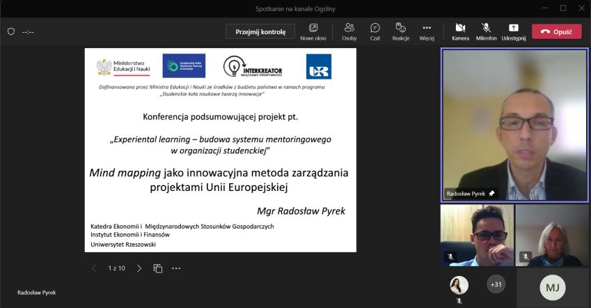 W dniu 30 listopada 2022 roku odbyła się w formie online konferencja podsumowująca projekt pt. Experiential learning – budowa systemu mentoringowego w organizacji studenckiej. Projekt był realizowany przez Koło Naukowe Ekonomistów „Interkreator”, działające przy Instytucie Ekonomii i Finansów Uniwersytetu Rzeszowskiego. Przedsięwzięcie zostało sfinansowane z programu Ministerstwa Edukacji i Nauki pn. Studenckie Koła Naukowe tworzą innowacje. Był to jeden spośród 128 projektów z całej Polski (jeden z czterech realizowanych przez studentów Uniwersytetu Rzeszowskiego), co jest niewątpliwie dużym sukcesem młodych adeptów nauki. Wydarzenie zostało objęte honorowym patronatem J.M. Rektora Uniwersytetu Rzeszowskiego prof. dr hab. Sylwestra Czopka oraz patronatami medialnymi Radia Via i Radia Feniks.