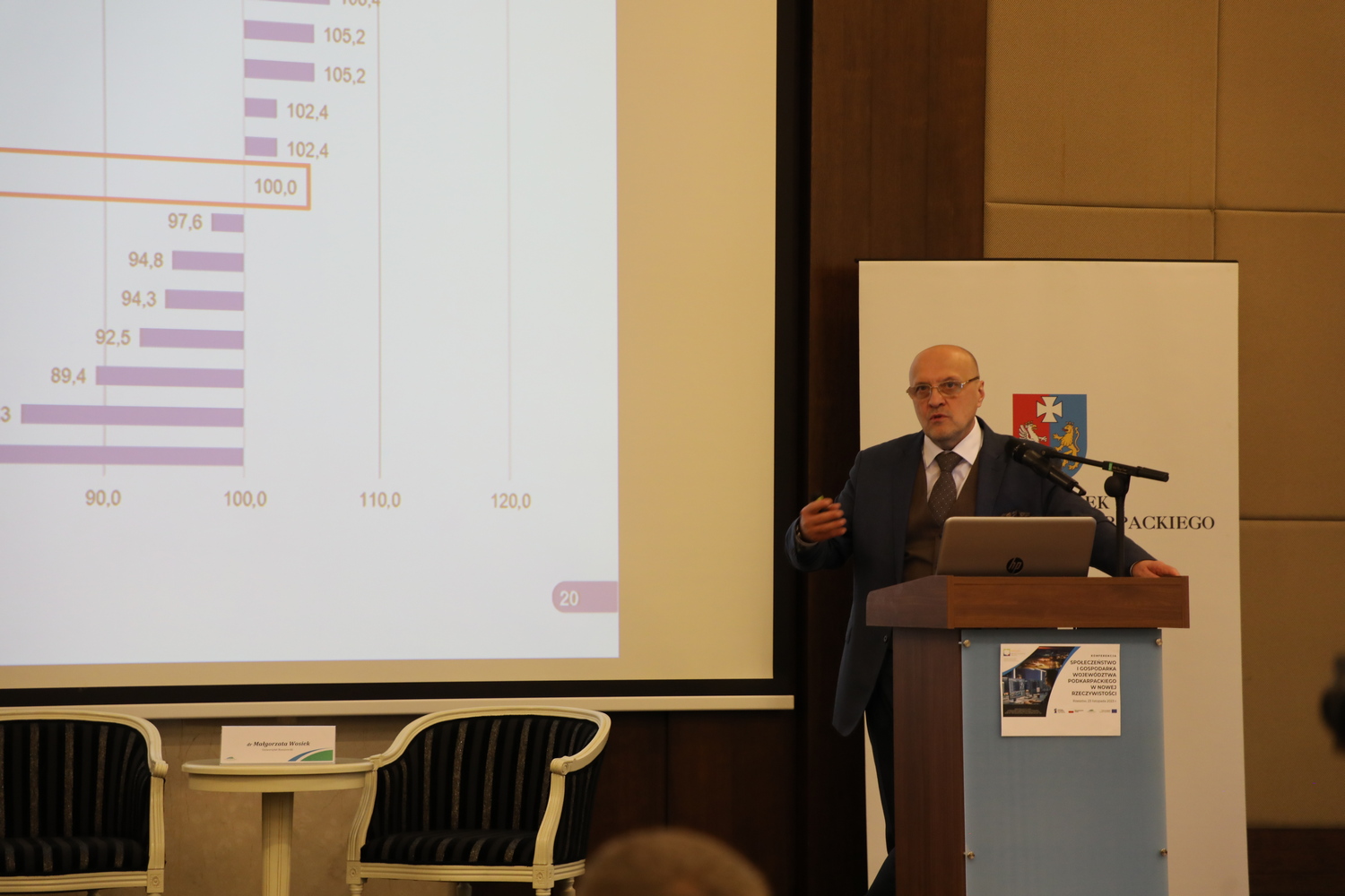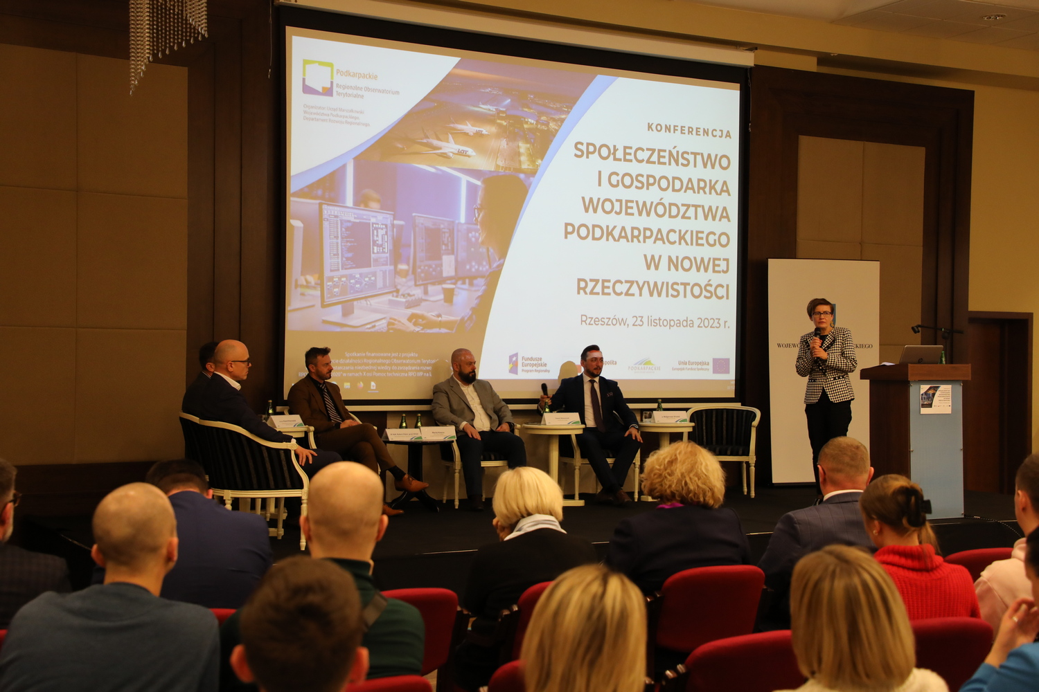 W ubiegły czwartek, 23 listopada 2023 r., odbyła się konferencja pt. „Społeczeństwo i gospodarka województwa podkarpackiego w zmieniającej się rzeczywistości” zorganizowana przez Regionalne Obserwatorium Terytorialne, znajdujące się w strukturze Departamentu Rozwoju Regionalnego Urzędu Marszałkowskiego Województwa Podkarpackiego w Rzeszowie. W wydarzeniu wzięli udział przedstawiciele różnych środowisk: rządowego, naukowego, społecznego oraz samorządu terytorialnego województwa podkarpackiego, a także reprezentanci młodego pokolenia (studenci).