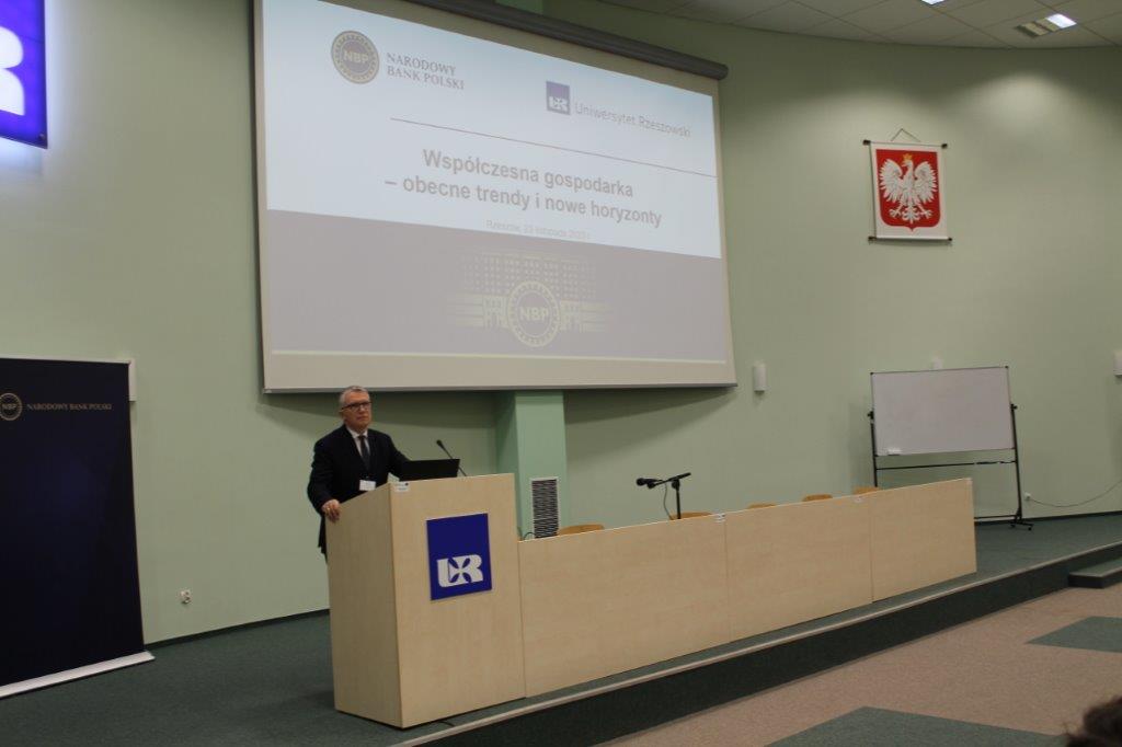 W dniu 23 listopada 2023 r. w Uniwersytecie Rzeszowskim na terenie Kampusu Zalesie odbyła się konferencja pt. „Współczesna gospodarka- obecne trendy i nowe horyzonty” zorganizowana przez Oddział Okręgowy NBP w Rzeszowie we współpracy z Instytutem Ekonomii i Finansów Uniwersytetu Rzeszowskiego.