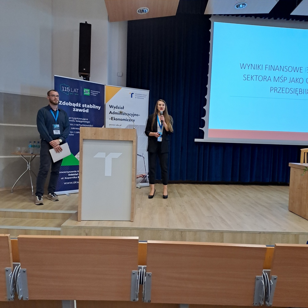 Paulina Pasierb i Hubert Leśniak reprezentując Koło Naukowe Liderzy Biznesu zajęli pierwsze miejsce z referatem nt. „Kondycja finansowa przedsiębiorczości w Polsce”.