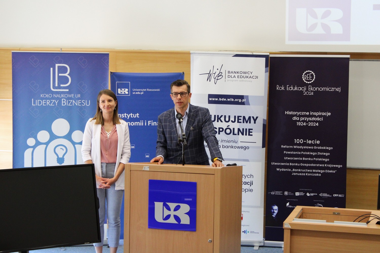 Prezes Koła Naukowego UR Liderzy Biznesu, Izabela Wilk, przywitała wszystkich obecnych na niniejszej konferencji. Natomiast uroczystego otwarcia konferencji dokonał Dyrektor Instytutu Ekonomii i Finansów UR, Pan Profesor Ryszard Kata.
