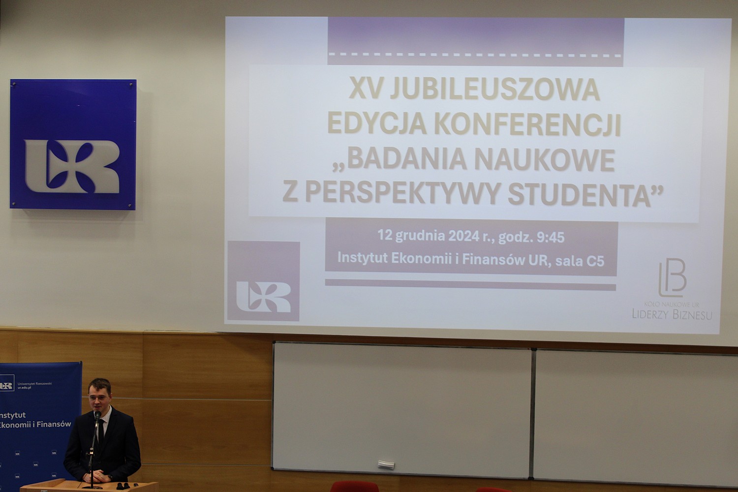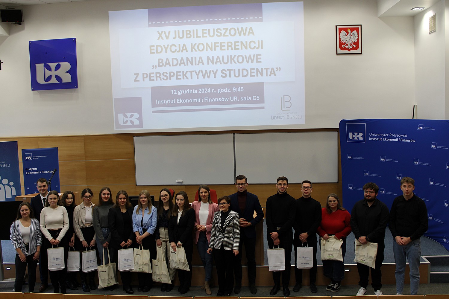 12 grudnia 2024 r. w Instytucie Ekonomii i Finansów UR odbyła się XV Edycja Konferencji Badania Naukowe z Perspektywy Studenta. Wydarzenie zgromadziło licznych uczestników – zarówno prelegentów, jak i publiczność – którzy wspólnie świętowali pasję do nauki i wymieniali się doświadczeniami badawczymi. Młodzi badacze zaprezentowali niezwykle ciekawe i zróżnicowane tematy, ukazując swoje zaangażowanie w rozwój nauki. Jury w składzie: dr Małgorzata Wosiek, dr Magdalena Wiercioch oraz dr hab. Grzegorz Hajduk, prof. UR, miało trudne zadanie, wybierając najlepsze wystąpienia.