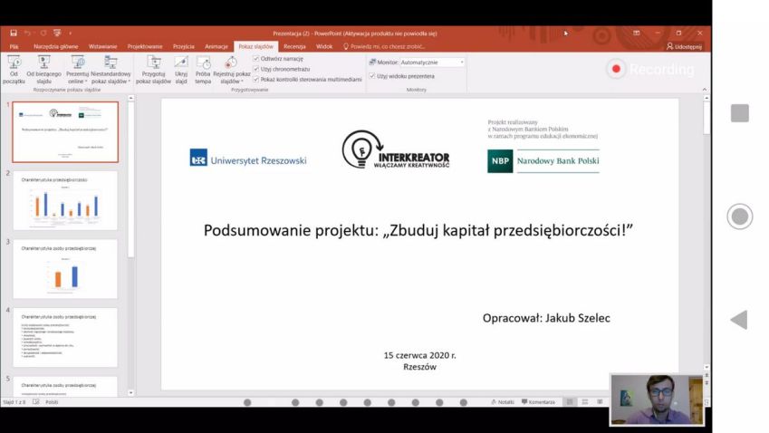 W okresie od 4 listopada 2019 roku do 31 grudnia 2020 roku Uniwersytet Rzeszowski, przy współpracy z Narodowym Bankiem Polskim realizował Projekt pt. „Zbuduj kapitał przedsiębiorczości!”. Z dużą satysfakcją i prawdziwą przyjemnością informujemy, że realizacja ww. Projektu dobiegła końca, a Projekt został rozliczony, zarówno pod względem merytorycznym, jak i finansowym.