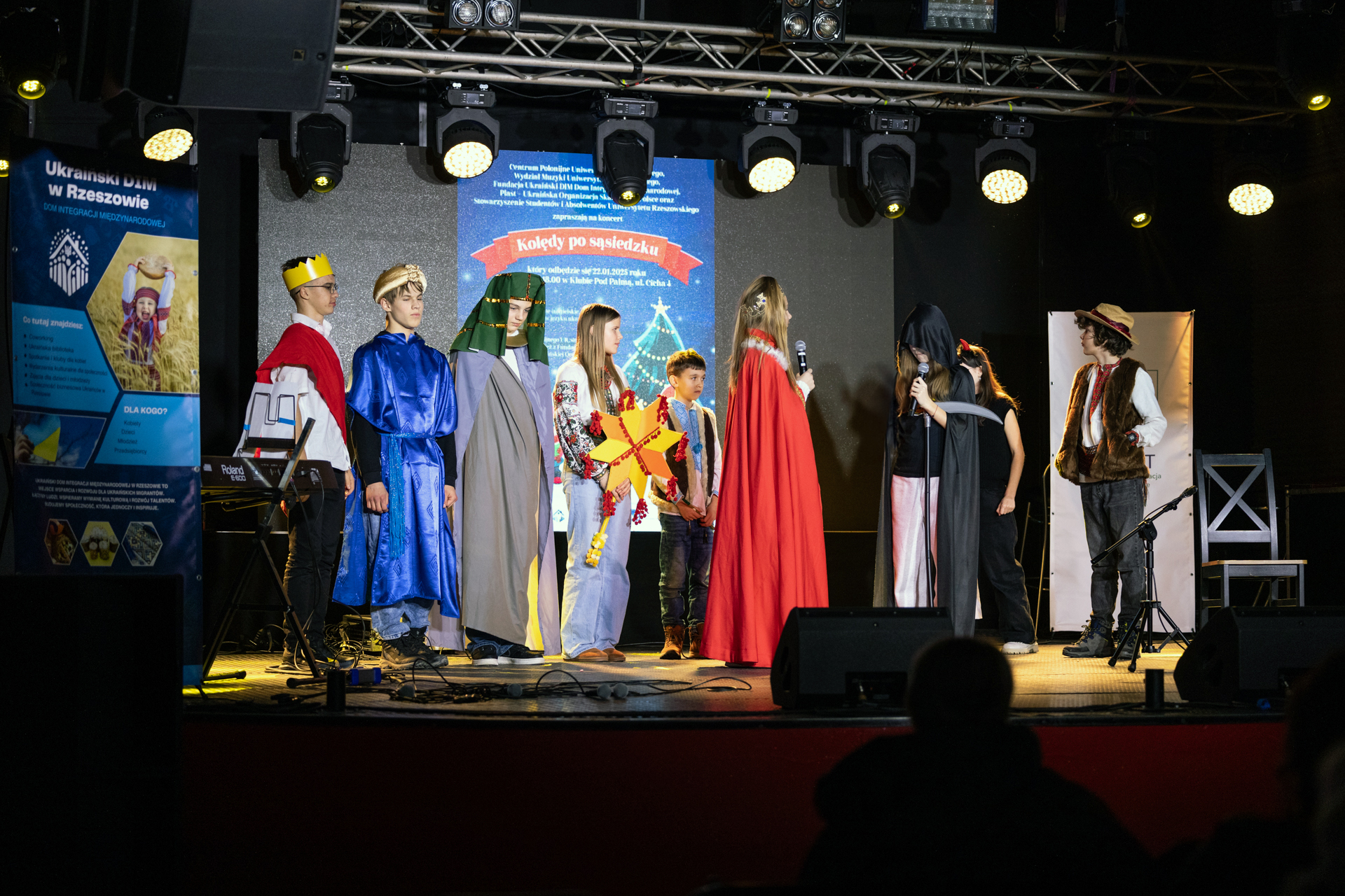 22 stycznia br., w klubie Pod Palmą wspólnie, po sąsiedzku kolędowali słuchacze Centrum Polonijnego, studenci Wydziału Muzyki oraz członkowie ukraińskiej organizacji skautowej Płast działającej w Rzeszowie od 2022 roku, a także przedstawiciele fundacji Ukraiński DIM Dom Integracji Międzynarodowej. Wykonawcy i uczestnicy spotkania śpiewali kolędy polskie, ukraińskie, hiszpańskie i tureckie. Najmłodsi członkowie Płasta oraz działająca w organizacji młodzież zaprezentowali ukraińskie jasełka, czyli wertepy.