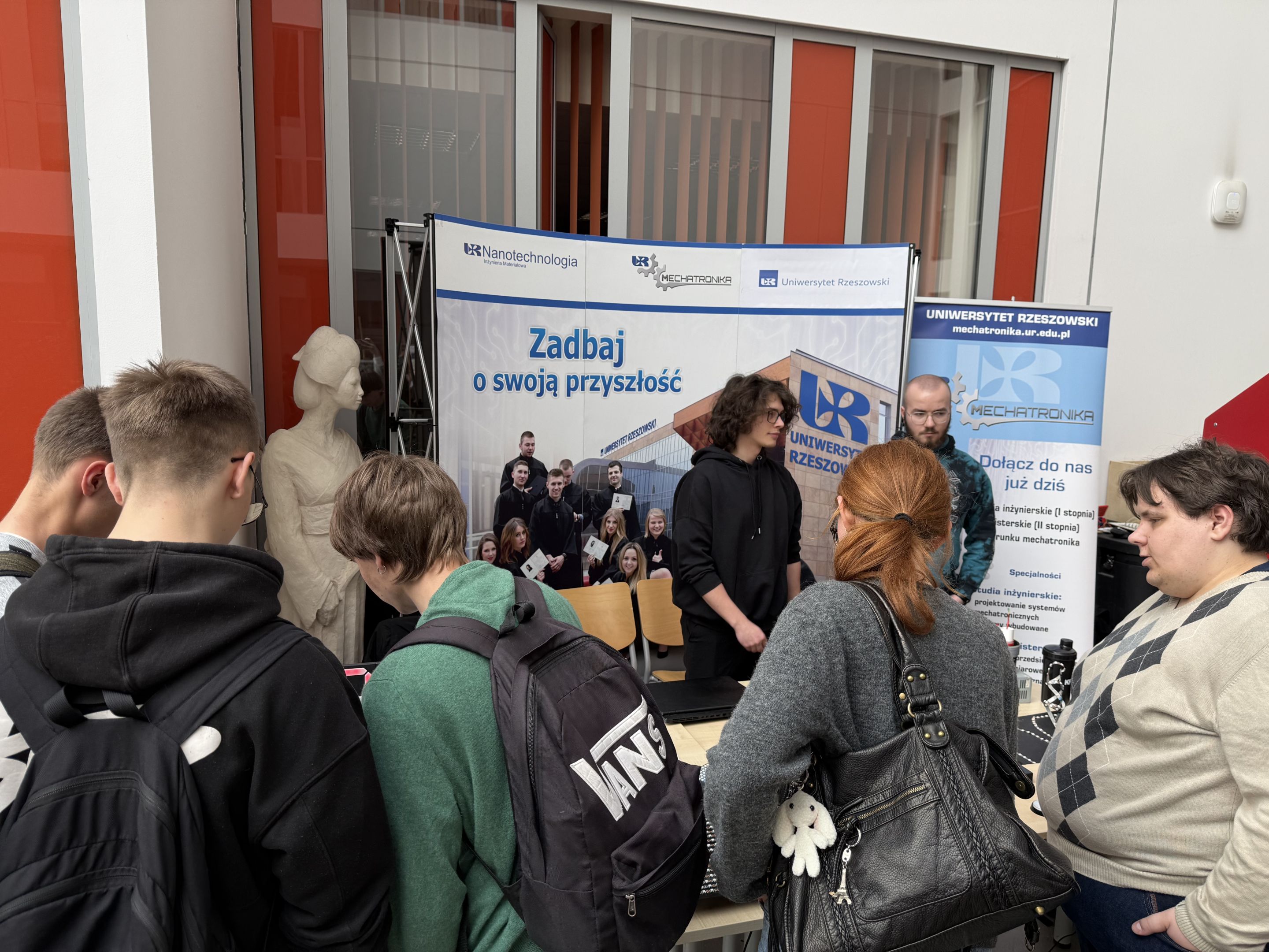 W dniu 16 kwietnia 2026 r. odbył się Dzień Otwarty Wydziału Nauk Ścisłych i Technicznych, podczas którego gościliśmy młodzież z I LO w Łańcucie, II i III LO w Rzeszowie oraz Zespół Szkół Elektronicznych w Rzeszowie. Młodzież miała okazję zapoznać się z ofertą edukacyjną naszego Wydziału, zwiedzić najciekawsze laboratoria oraz sprawdzić jakie projekty realizują nasze studenckie koła naukowe. Dziekujemy za Waszą obecność i wspólnie spędzony czas!