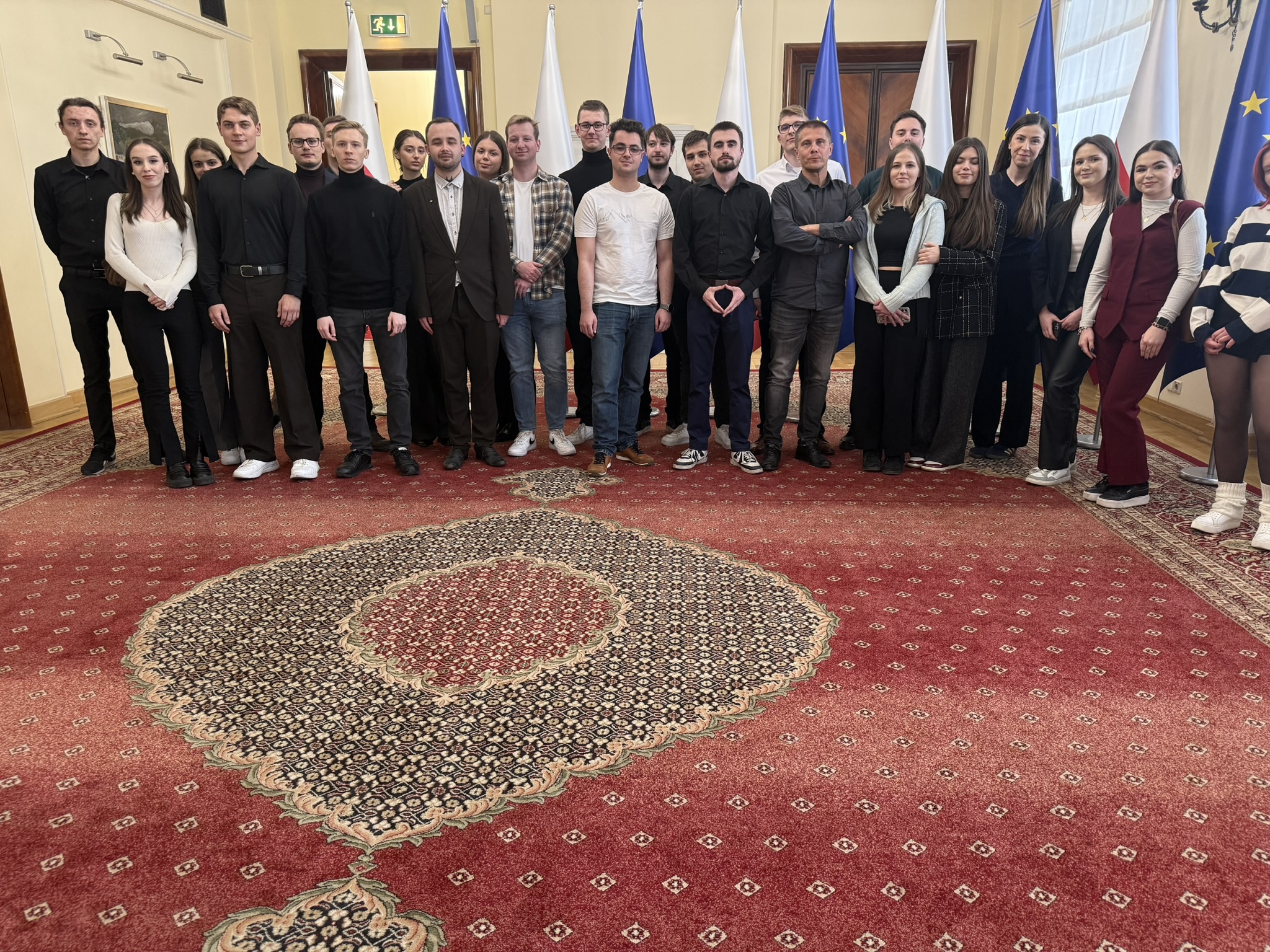 16 marca 2026 r. studenci kierunków politologia oraz stosunki międzynarodowe mieli okazję odwiedzić Kancelarię Prezesa Rady Ministrów. Wizyta odbyła się pod opieką dr Dominiki Zięby oraz dra hab. Tomasza Koziełły, prof. UR.