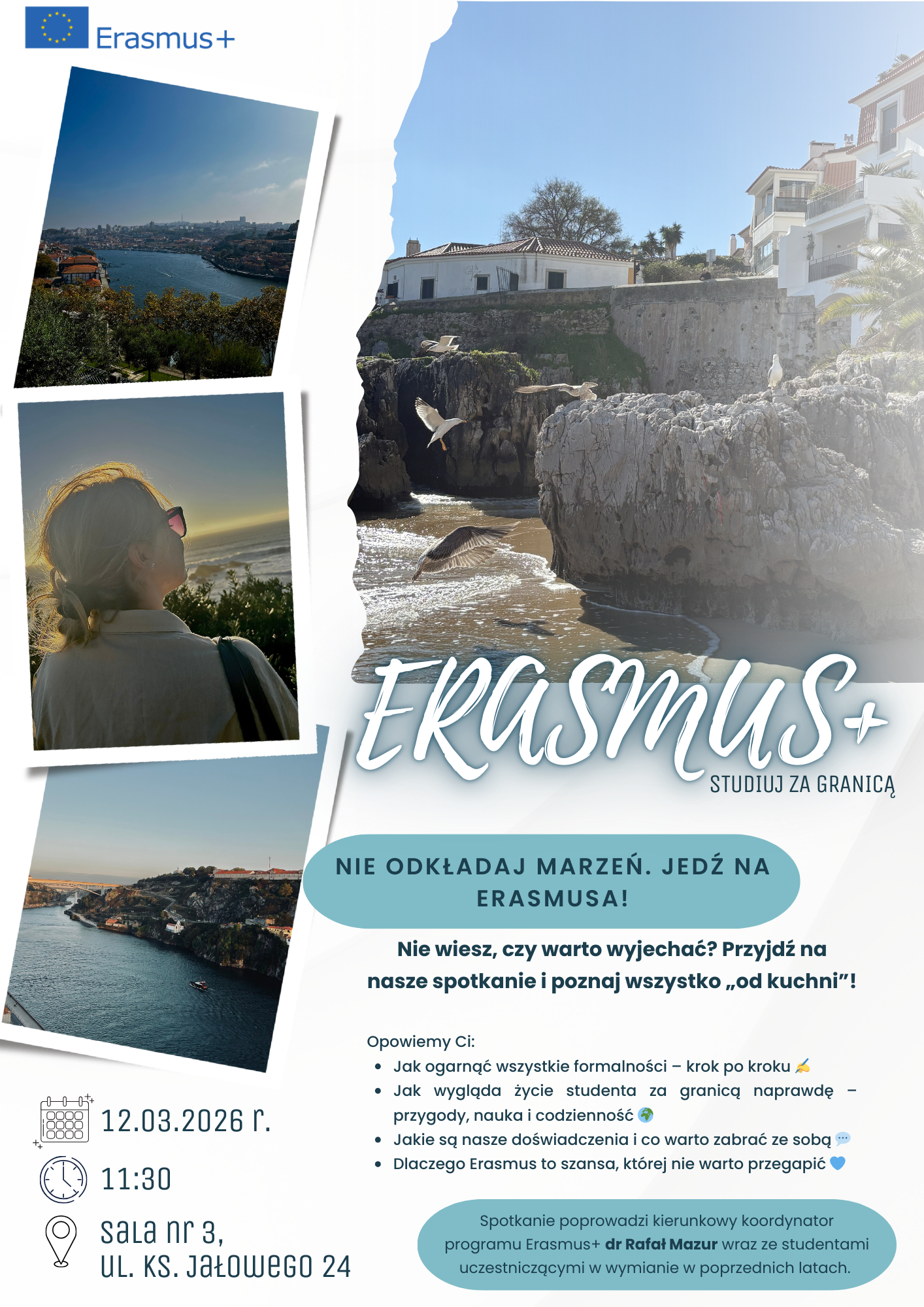 12 marca o godz. 11:30 w sali nr 3 odbędzie się spotkanie dla studentów zainteresowanych wyjazdem w ramach programu Erasmus+.