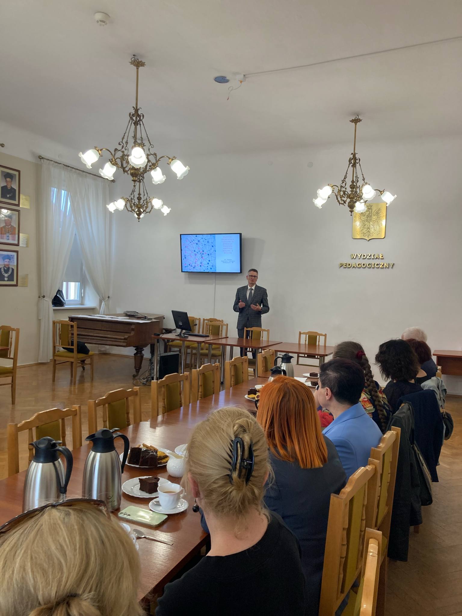 W dniu 24 kwietnia 2025 r. w Instytucie Pedagogiki, na Wydziale Pedagogiki i Filozofii Uniwersytetu Rzeszowskiego, odbyło się spotkanie władz Wydziału z interesariuszami zewnętrznymi. W wydarzeniu uczestniczyli przedstawiciele placówek przedszkolnych i szkolnych, placówek opiekuńczo-wychowawczych, ośrodków pomocy społecznej, instytucji społecznych oraz organizacji pozarządowych, którzy od lat wspierają rozwój kierunków kształcenia realizowanych w Instytucie Pedagogiki. Spotkanie stanowiło ważny element systematycznej współpracy Wydziału z otoczeniem społeczno-gospodarczym w zakresie doskonalenia jakości kształcenia i dostosowywania programów studiów do realnych potrzeb rynku pracy.