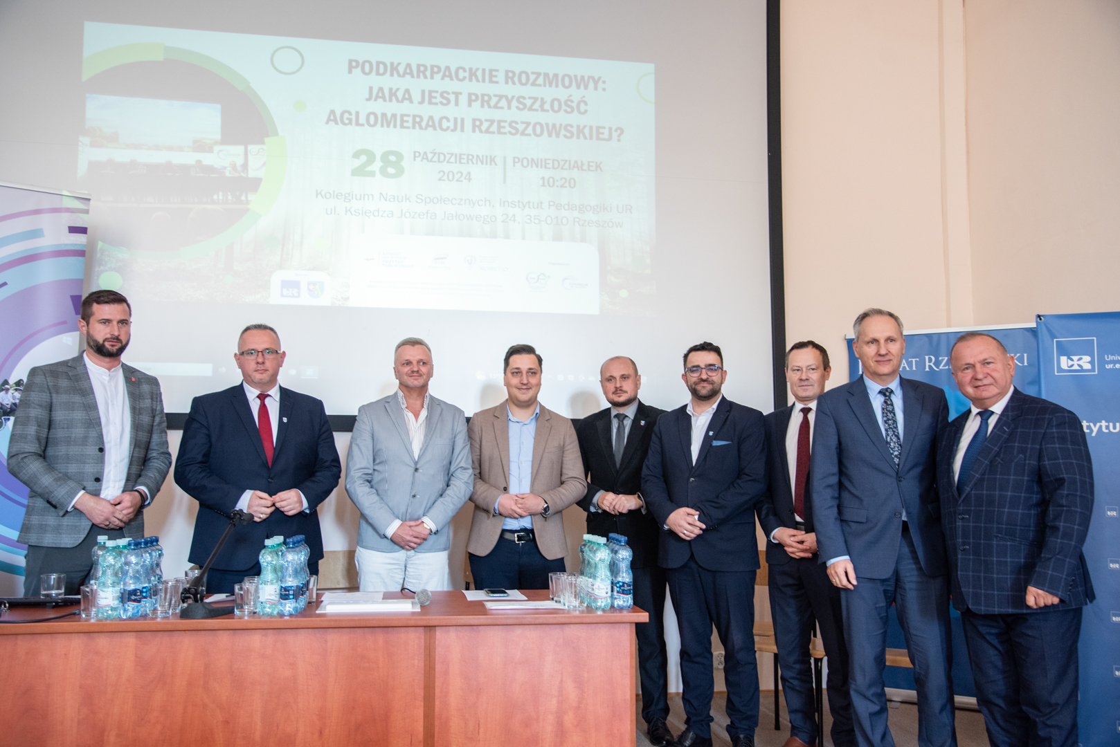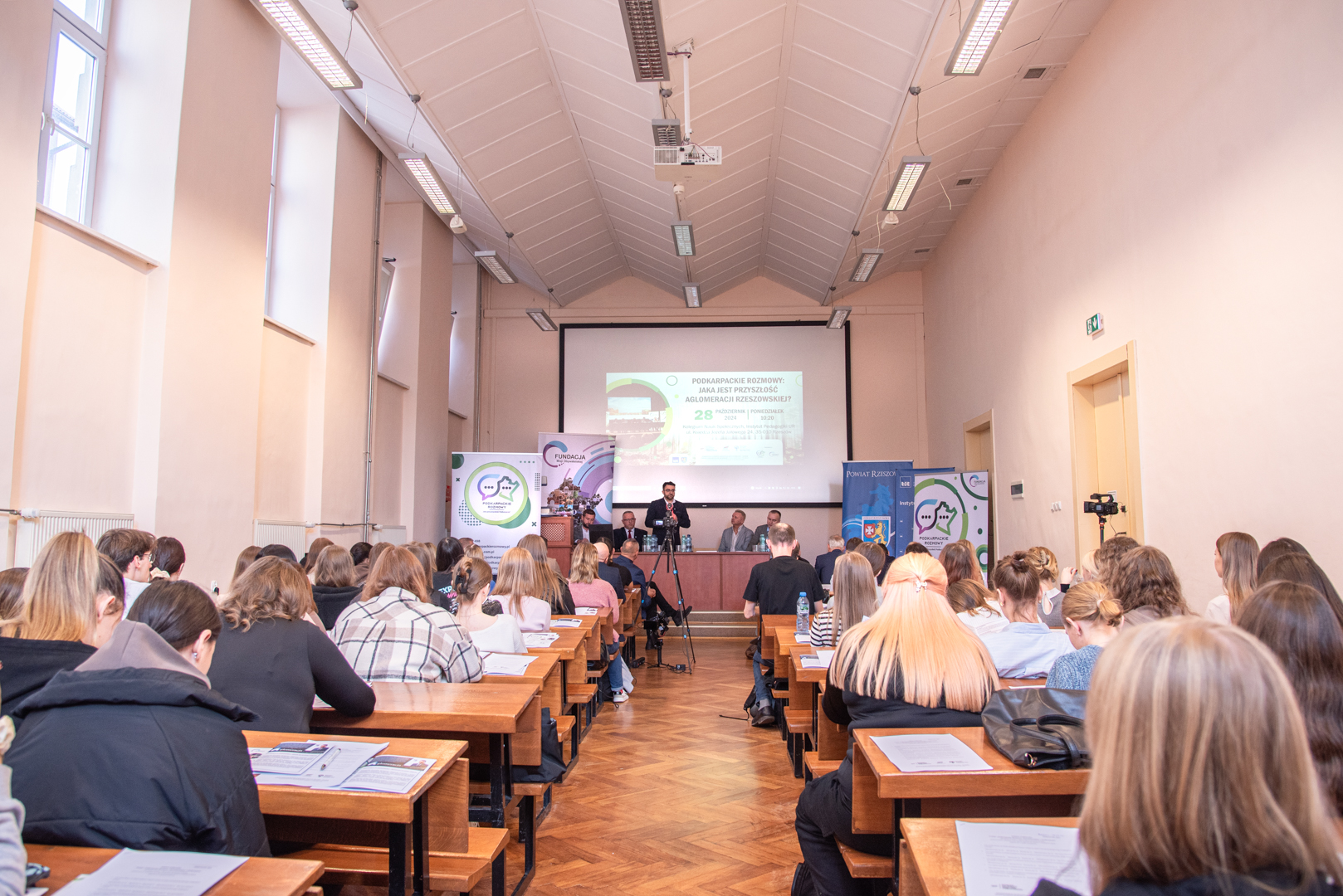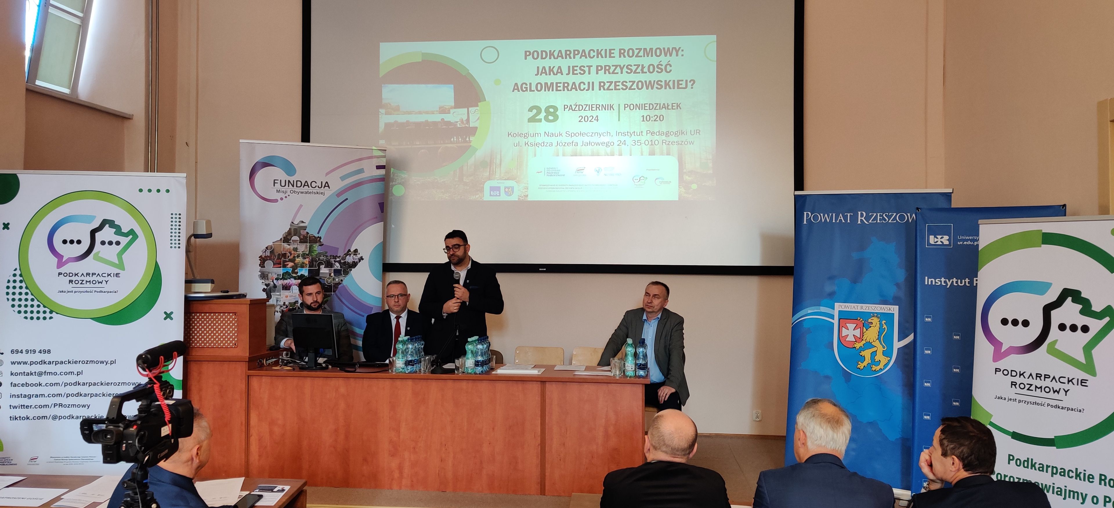 W poniedziałek 28 października 2024 roku w auli Instytutu Pedagogiki Uniwersytetu Rzeszowskiego przy ul. Ks. J. Jałowego w Rzeszowie, odbyła się konferencja na temat „Jaka jest przyszłość Aglomeracji Rzeszowskiej?”. Zorganizowana została ona w ramach projektu „Podkarpackie rozmowy” realizowanego przez Fundację Misji Obywatelskiej. W wydarzeniu brali udział samorządowcy Powiatu Rzeszowskiego, w tym Starosta Rzeszowski Krzysztof Jarosz, zaproszeni goście, studenci i nauczyciele akademiccy. Debatę otworzył Dyrektor Instytutu Pedagogiki – ks. dr hab. Janusz Miąso, prof. UR, który serdecznie powitał zaproszonych gości, życząc jednocześnie owocnych obrad.