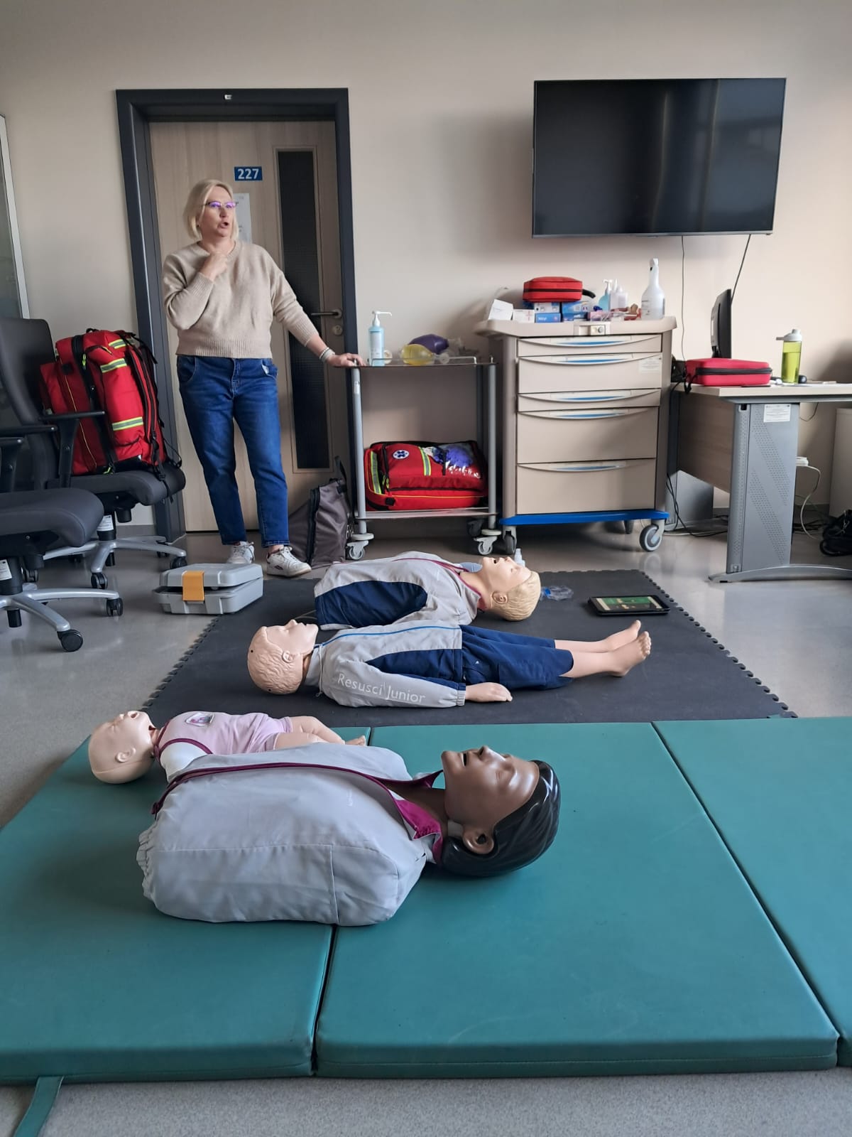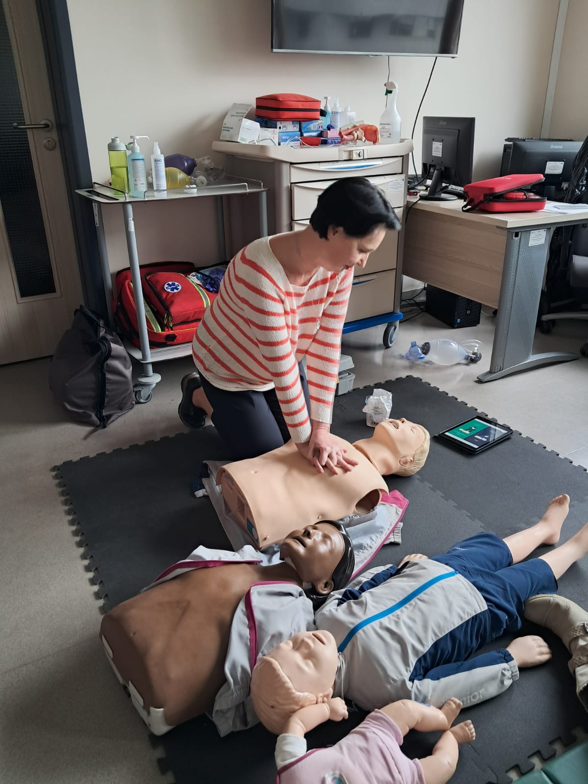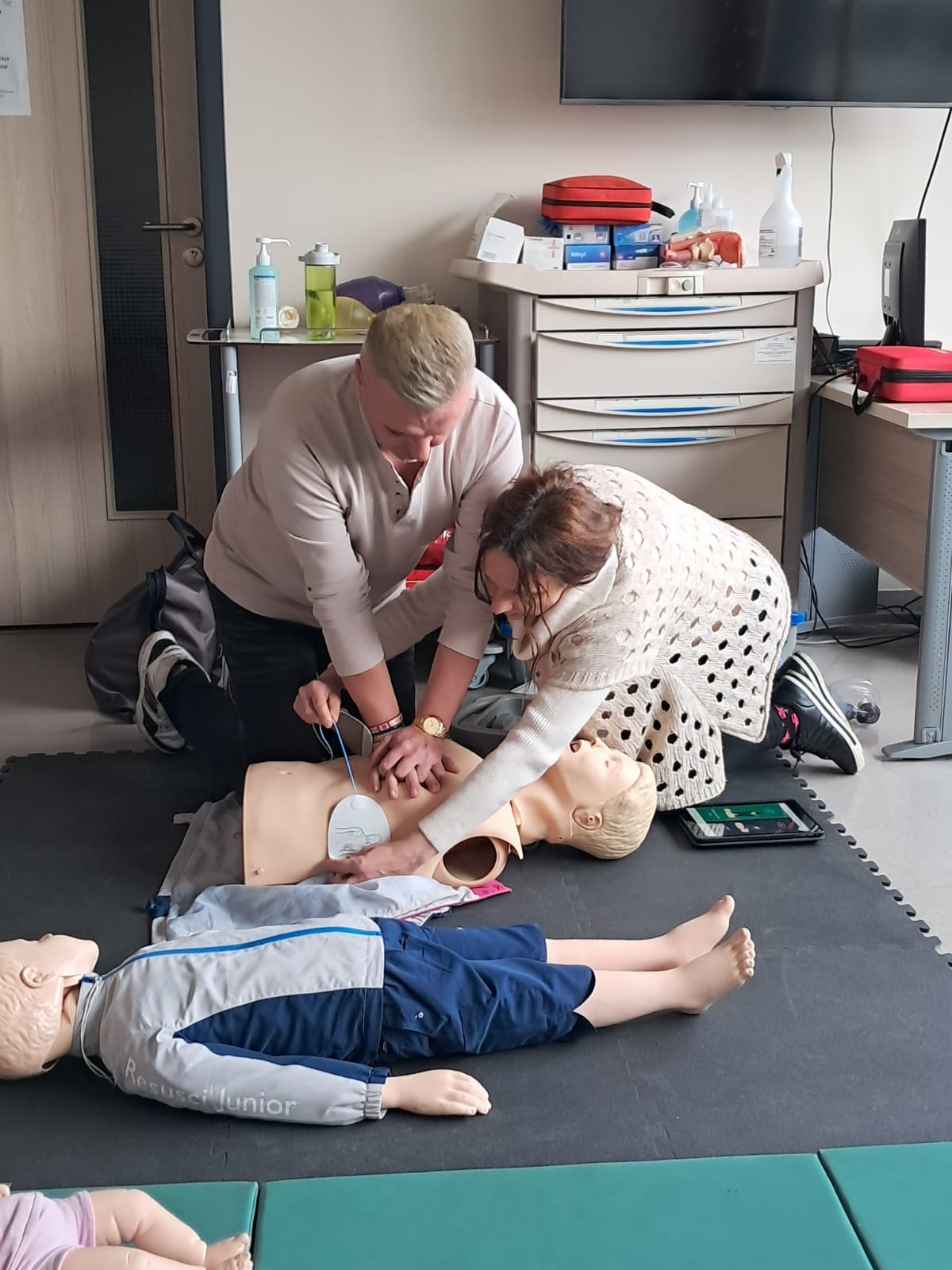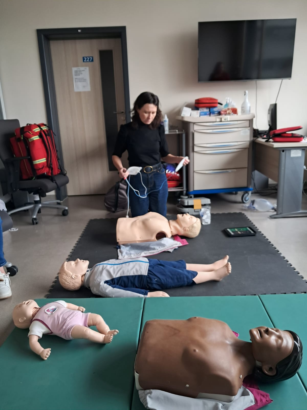 Część teoretyczną szkolenia stanowiły także kwestie dotyczące: bezpieczeństwa osoby udzielającej pomocy; zabezpieczenia miejsca zdarzenia; sprawdzenie podstawowych funkcji życiowych poszkodowanego; wezwania pogotowia ratunkowego (kolejności informacji podawanych dyspozytorowi); prowadzenia resuscytacji krążeniowo-oddechowej, między innymi wykorzystania metod sztucznego oddychania (usta-usta, usta-usta i nos) oraz masażu serca; wykonania innych czynności (na przykład: tamowania krwotoku). Uczestnicy zadawali szereg pytań dotyczących postępowania w różnych sytuacjach, choćby: zachłyśnięcia się przez dziecko, wstrząsu anafilaktycznego, ataku epilepsji itp. Szczególnie cenną część szkolenia stanowiły zajęcia praktyczne, podczas których pracownicy z wykorzystaniem manekinów mogli ćwiczyć udzielanie pierwszej pomocy. Oprócz stosowania w/w metod pierwszej pomocy wypróbowali również automatyczny defibrylator zewnętrzny (AED). Szkolenie było bardzo potrzebne, uczestnikom dostarczyło bezcennej wiedzy i umiejętności koniecznych w sytuacjach szybkiego reagowania na zagrożenia zdrowia i życia.