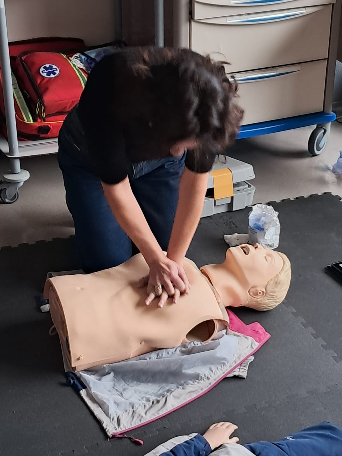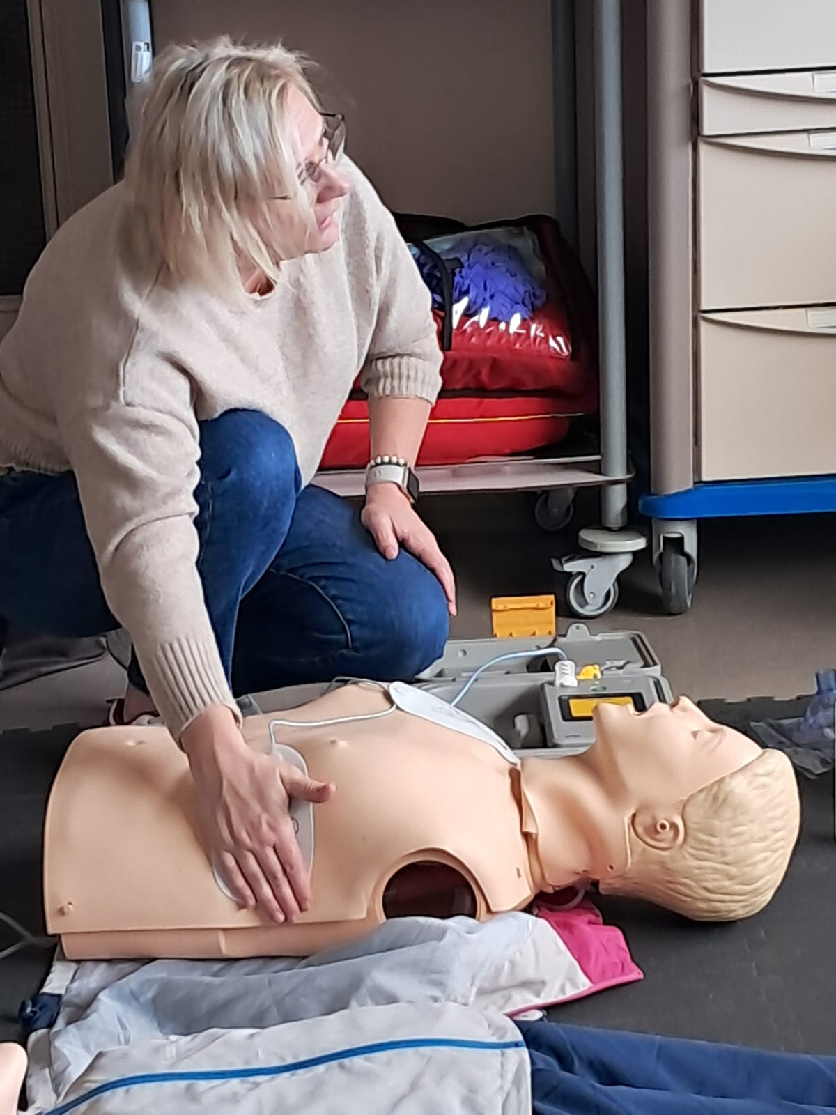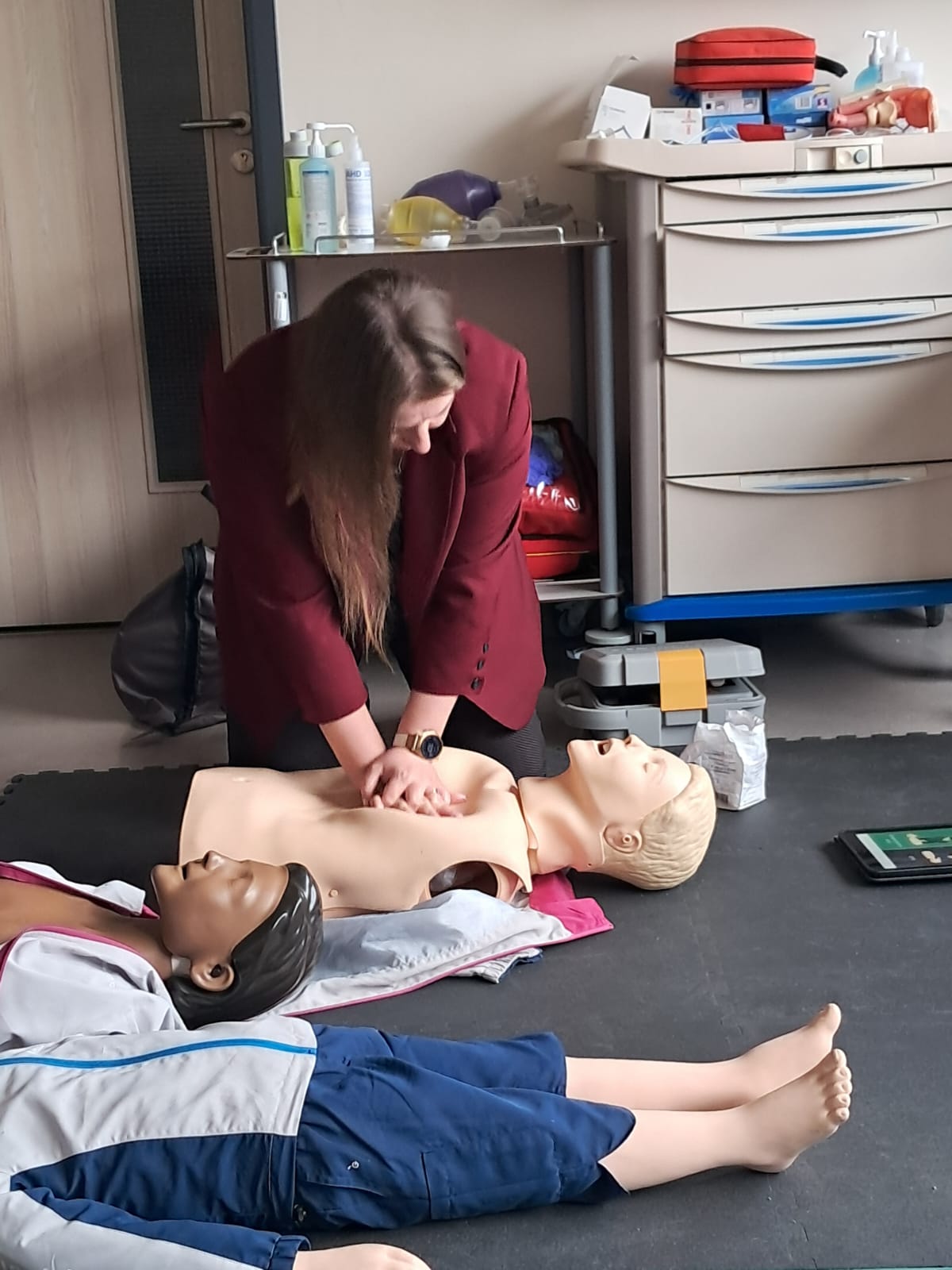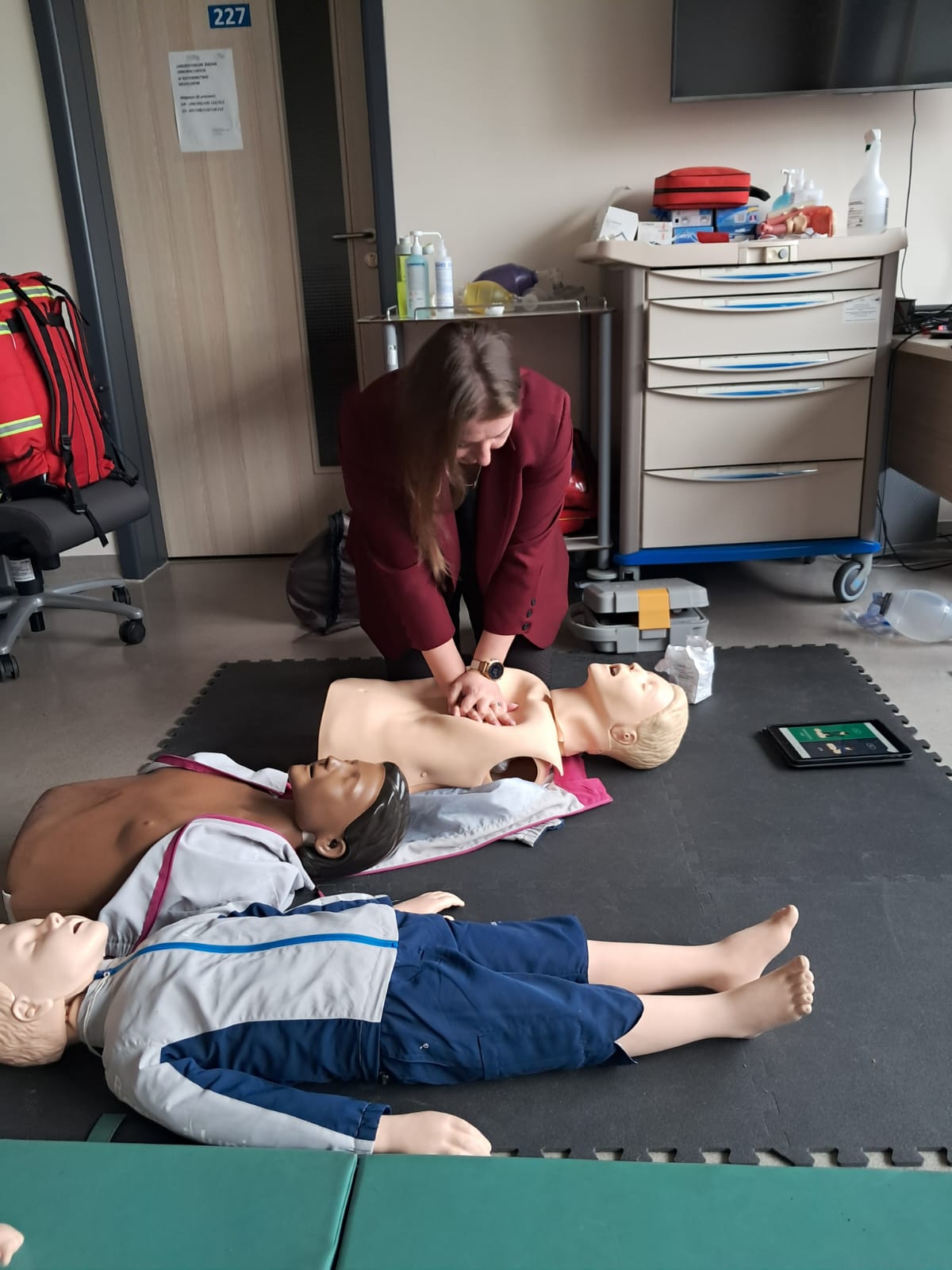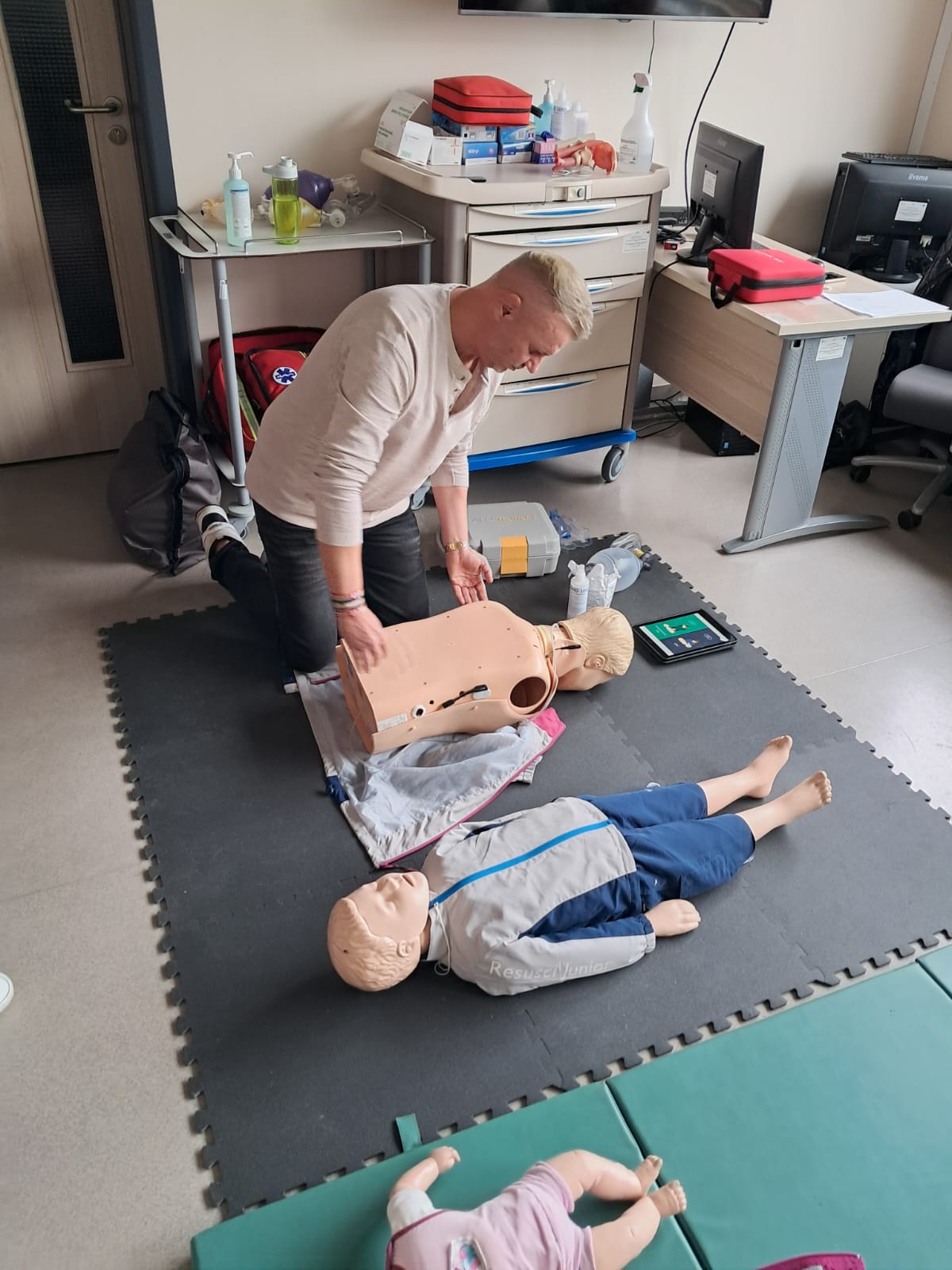 Część teoretyczną szkolenia stanowiły także kwestie dotyczące: bezpieczeństwa osoby udzielającej pomocy; zabezpieczenia miejsca zdarzenia; sprawdzenie podstawowych funkcji życiowych poszkodowanego; wezwania pogotowia ratunkowego (kolejności informacji podawanych dyspozytorowi); prowadzenia resuscytacji krążeniowo-oddechowej, między innymi wykorzystania metod sztucznego oddychania (usta-usta, usta-usta i nos) oraz masażu serca; wykonania innych czynności (na przykład: tamowania krwotoku). Uczestnicy zadawali szereg pytań dotyczących postępowania w różnych sytuacjach, choćby: zachłyśnięcia się przez dziecko, wstrząsu anafilaktycznego, ataku epilepsji itp. Szczególnie cenną część szkolenia stanowiły zajęcia praktyczne, podczas których pracownicy z wykorzystaniem manekinów mogli ćwiczyć udzielanie pierwszej pomocy. Oprócz stosowania w/w metod pierwszej pomocy wypróbowali również automatyczny defibrylator zewnętrzny (AED). Szkolenie było bardzo potrzebne, uczestnikom dostarczyło bezcennej wiedzy i umiejętności koniecznych w sytuacjach szybkiego reagowania na zagrożenia zdrowia i życia.