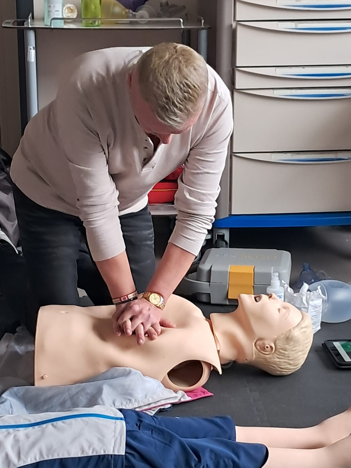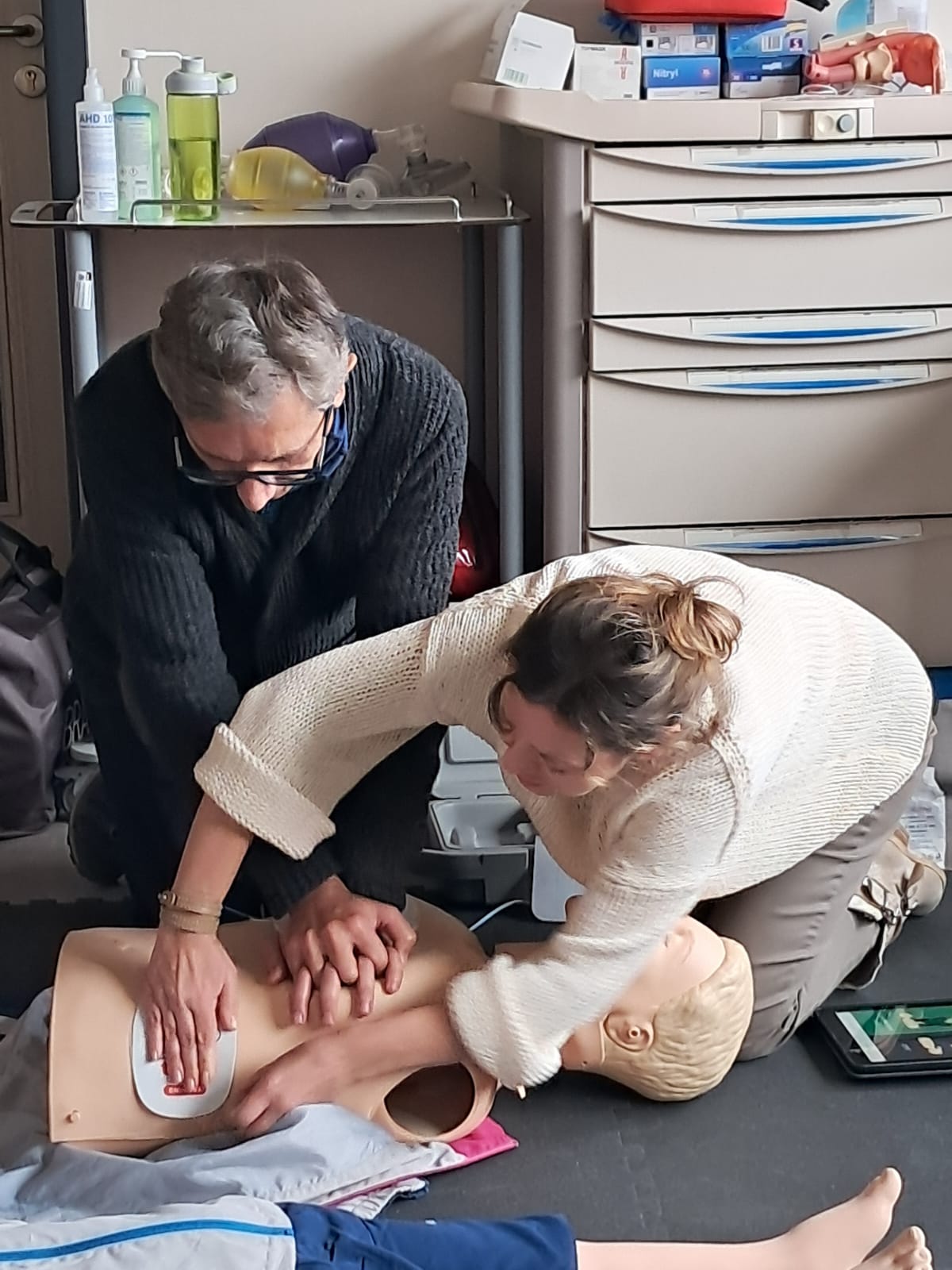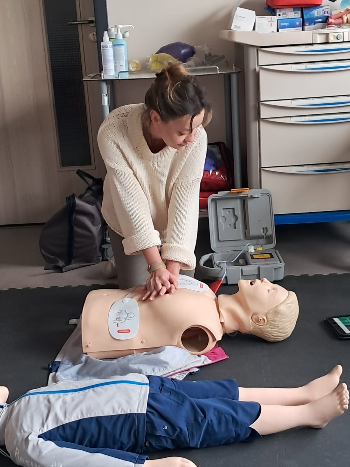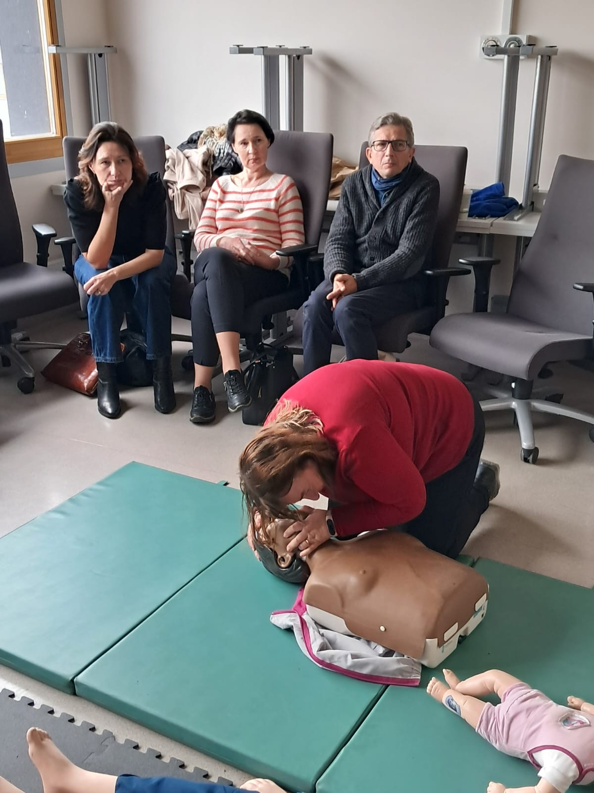 Część teoretyczną szkolenia stanowiły także kwestie dotyczące: bezpieczeństwa osoby udzielającej pomocy; zabezpieczenia miejsca zdarzenia; sprawdzenie podstawowych funkcji życiowych poszkodowanego; wezwania pogotowia ratunkowego (kolejności informacji podawanych dyspozytorowi); prowadzenia resuscytacji krążeniowo-oddechowej, między innymi wykorzystania metod sztucznego oddychania (usta-usta, usta-usta i nos) oraz masażu serca; wykonania innych czynności (na przykład: tamowania krwotoku). Uczestnicy zadawali szereg pytań dotyczących postępowania w różnych sytuacjach, choćby: zachłyśnięcia się przez dziecko, wstrząsu anafilaktycznego, ataku epilepsji itp. Szczególnie cenną część szkolenia stanowiły zajęcia praktyczne, podczas których pracownicy z wykorzystaniem manekinów mogli ćwiczyć udzielanie pierwszej pomocy. Oprócz stosowania w/w metod pierwszej pomocy wypróbowali również automatyczny defibrylator zewnętrzny (AED). Szkolenie było bardzo potrzebne, uczestnikom dostarczyło bezcennej wiedzy i umiejętności koniecznych w sytuacjach szybkiego reagowania na zagrożenia zdrowia i życia.