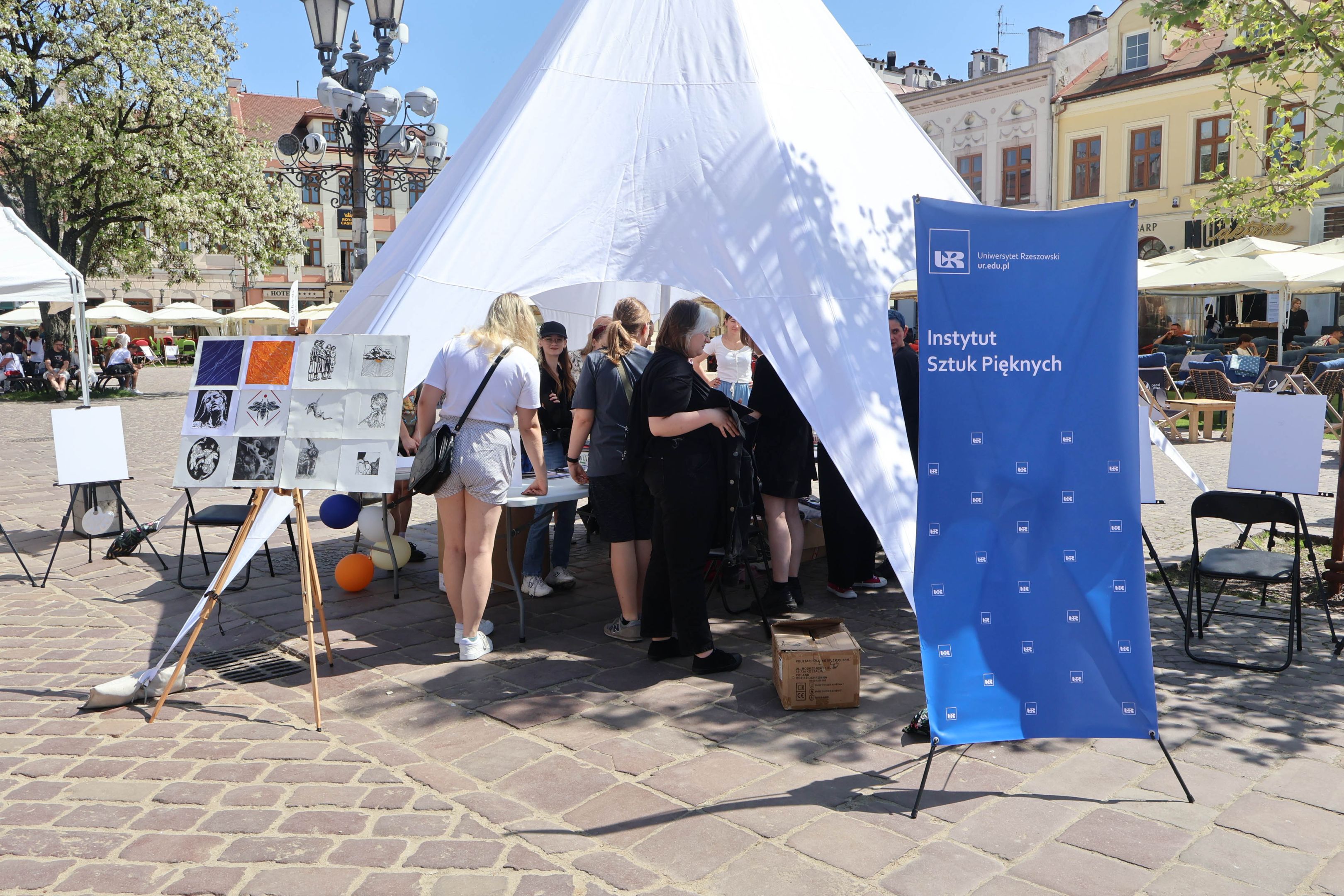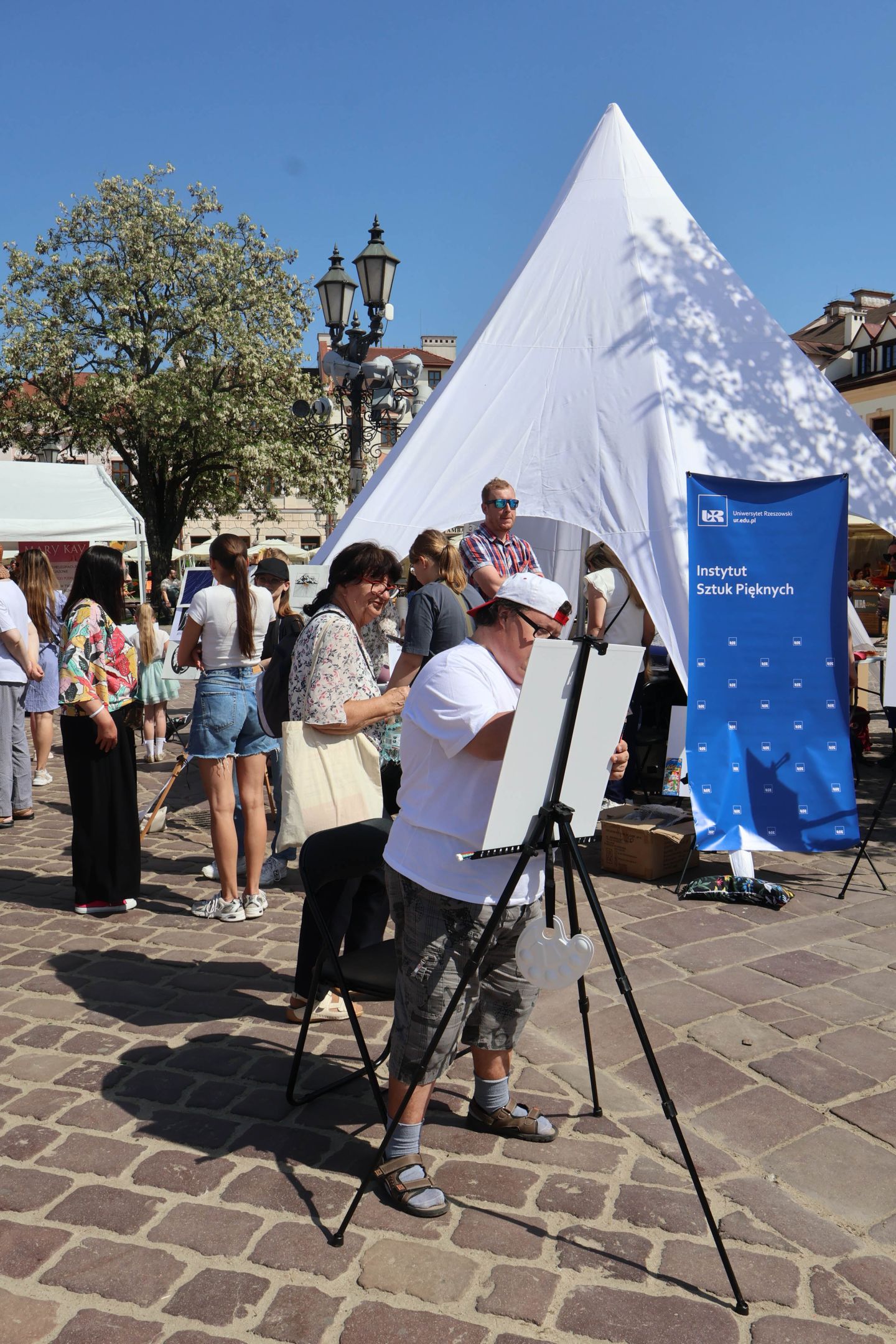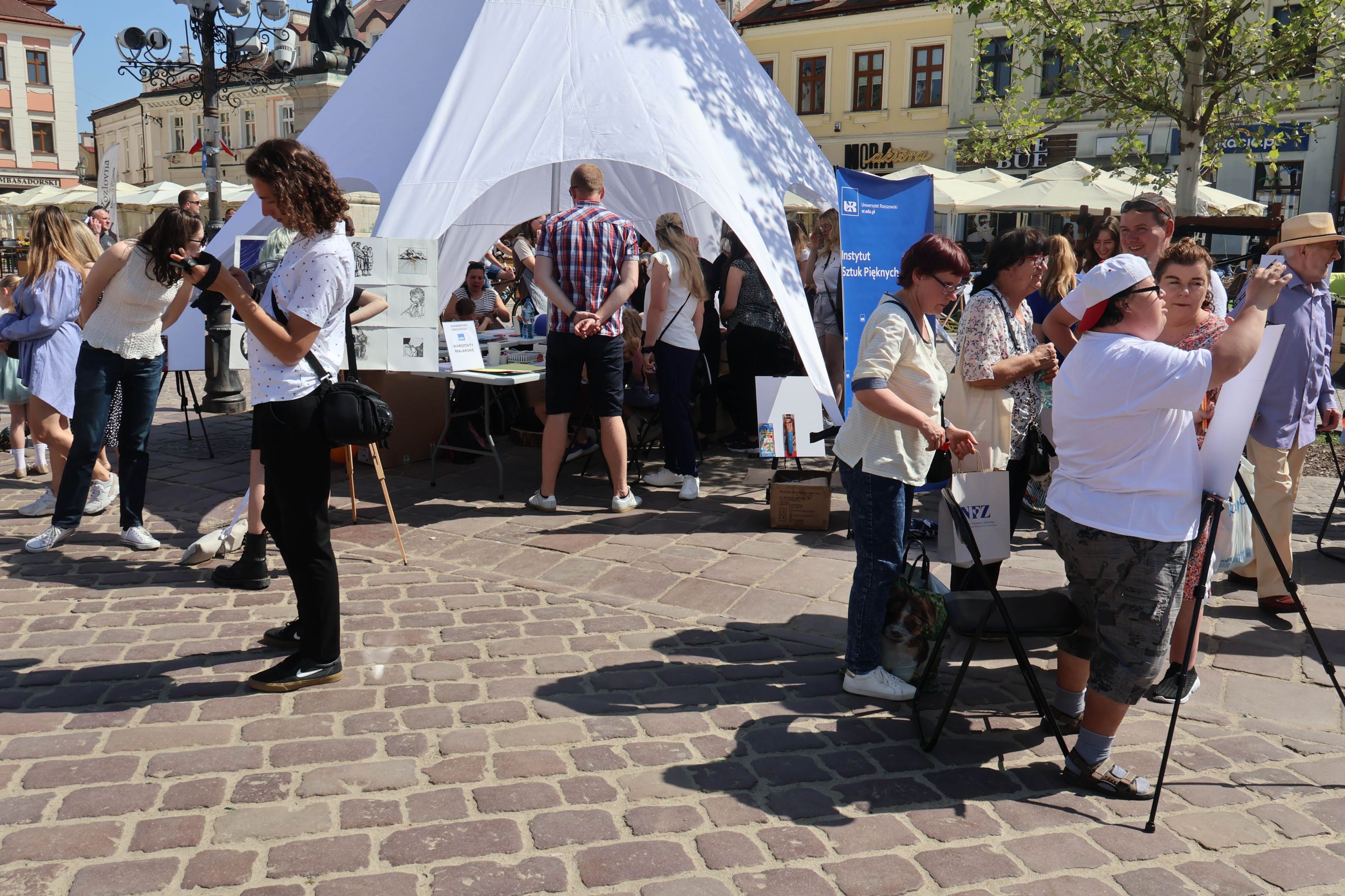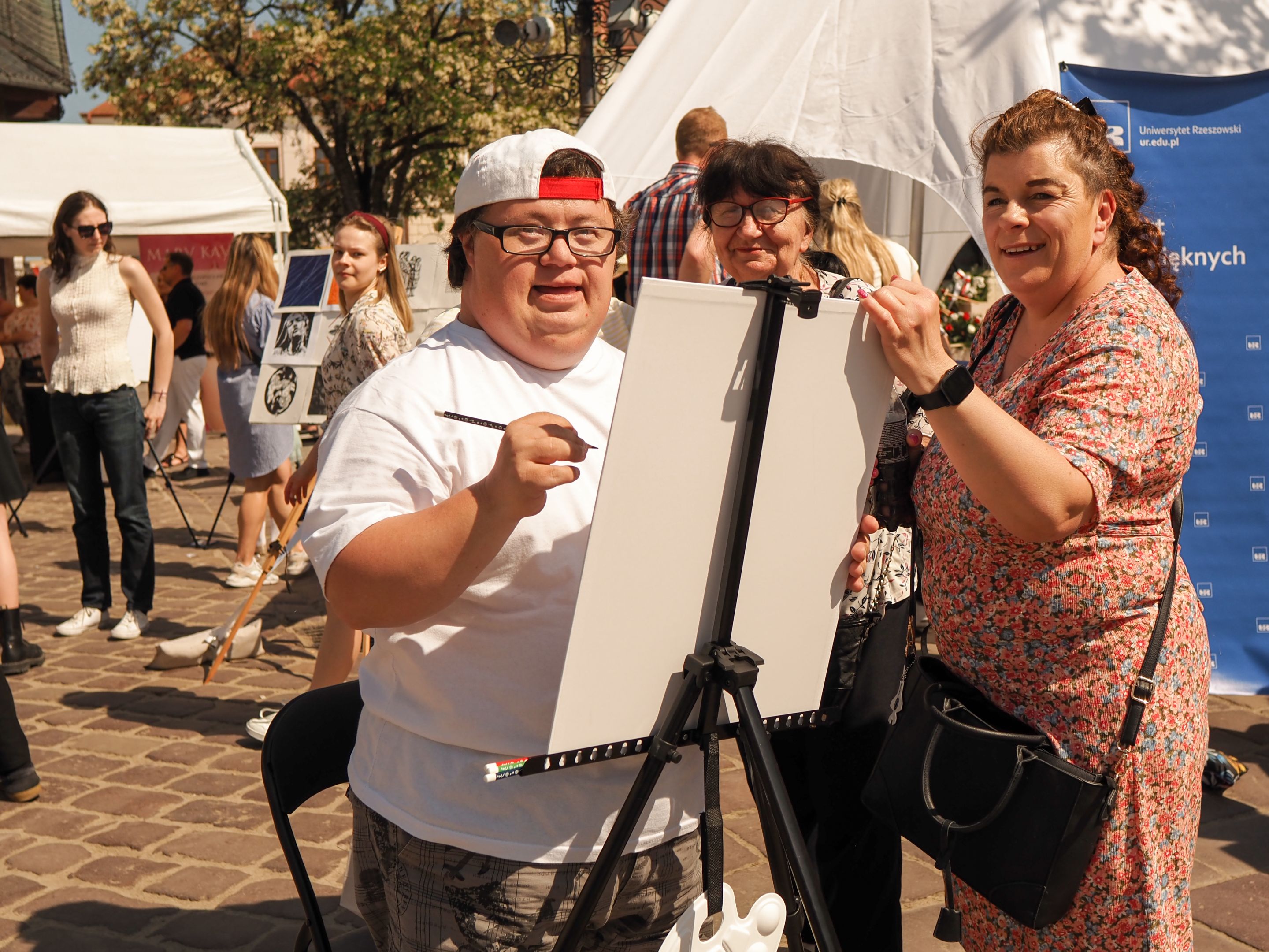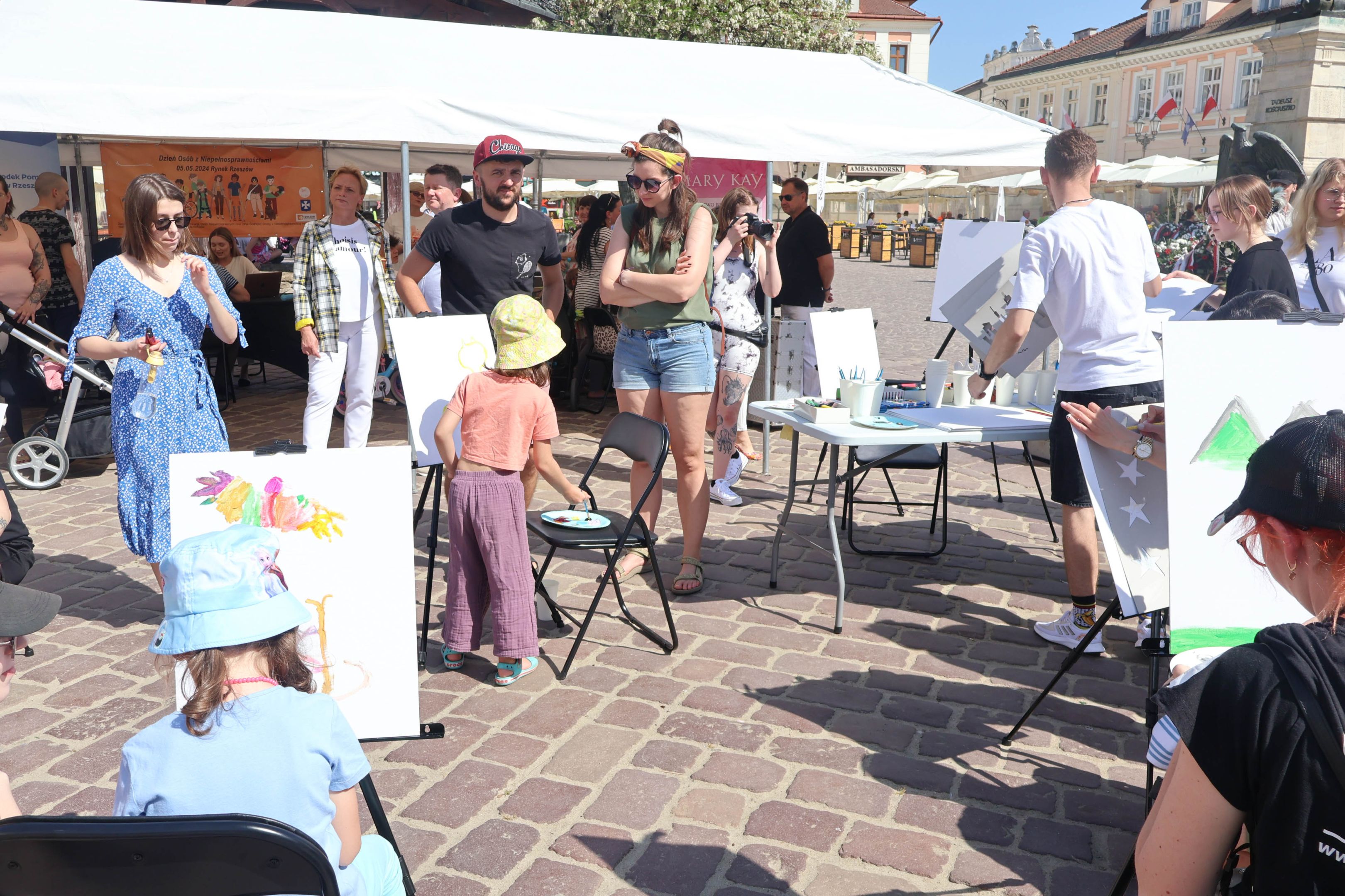 05.05.2024 to Europejski Dzień Walki z Dyskryminacją Osób Niepełnosprawnych oraz Dzień Godności Osób z Niepełnosprawnością Intelektualną. W 2024 roku na rzeszowskim Rynku Dzień Osób z Niepełnosprawnością organizowało Stowarzyszenie „For You” z Głogowa Młp., a Instytut Sztuk Pięknych został zaproszony do wzięcia czynnego udziału w tym wydarzeniu. W zaproponowanych przez nas warsztatach malarskich zarówno osoby z wyjątkowymi potrzebami, jak i mieszkańcy Rzeszowa poczuli się artystami. Cieszymy się, że tyle osób skorzystało z tego spotkania ze sztuką, poznania jej pozytywnego wpływu na zdrowie psychiczne i wyjątkowego oddziaływania na sferę emocjonalną. Warsztaty poprowadzili: kadra ISP – Anna Steliga (koordynatorka współpracy ze stowarzyszeniem „For You”), Karolina Niwelińska (opiekunka Zapału), Łukasz Kuśnierz; a także członkinie i członkowie Kół Naukowo-Artystycznych działających przy ISP tj. RAZEM, ZAPAŁ, GRAFO i LENS – Jurkiewicz Justyna, Głąb Kamil, Kochan Karolina, Nowak Natalia, Żuchowicz Gabriela, Szeliga Piotr, Środoń Justyna, Błażej Marcelina, Koziara Agnieszka, Winczowska Celina, Zdziebko Katarzyna, Sobuś Emilia, Gomułka Weronika, Furmanek Kinga, Krupa Antonina, Pivnova Polina, Lis Julia, Stopa Maksymilian, Inglot Anna, Nykiel Natalia, Możdżeń Paulina, Jachyra Sylwia, Drelich Weronika, Malinowska Weronika, Kiwior Weronika, Jarosz Daria, Szwed Żaneta, Kicińska Dominika, Cieszyńska Amelia, Kopala Anna, Sherstiukova Daria, Rachwalska Gabriela, Babińska Izabela, Miąsik Julia, Cichosz Marlena, Hanejko Monika, Dawid Wikiera, Julia Tryczyńska, Kornelia Sówka, Amelia Grzebyk, Michał Gorczyca, Joanna Żebracka, oraz Natalia Szlęk i Natalia Dranishcheva. Fotorelację z wydarzenia przygotowali: Weronika Drelich, Kornelia Sówka, Kamil Głąb, Michał Gorczyca, Dawid Wikiera i Łukasz Kuśnierz.