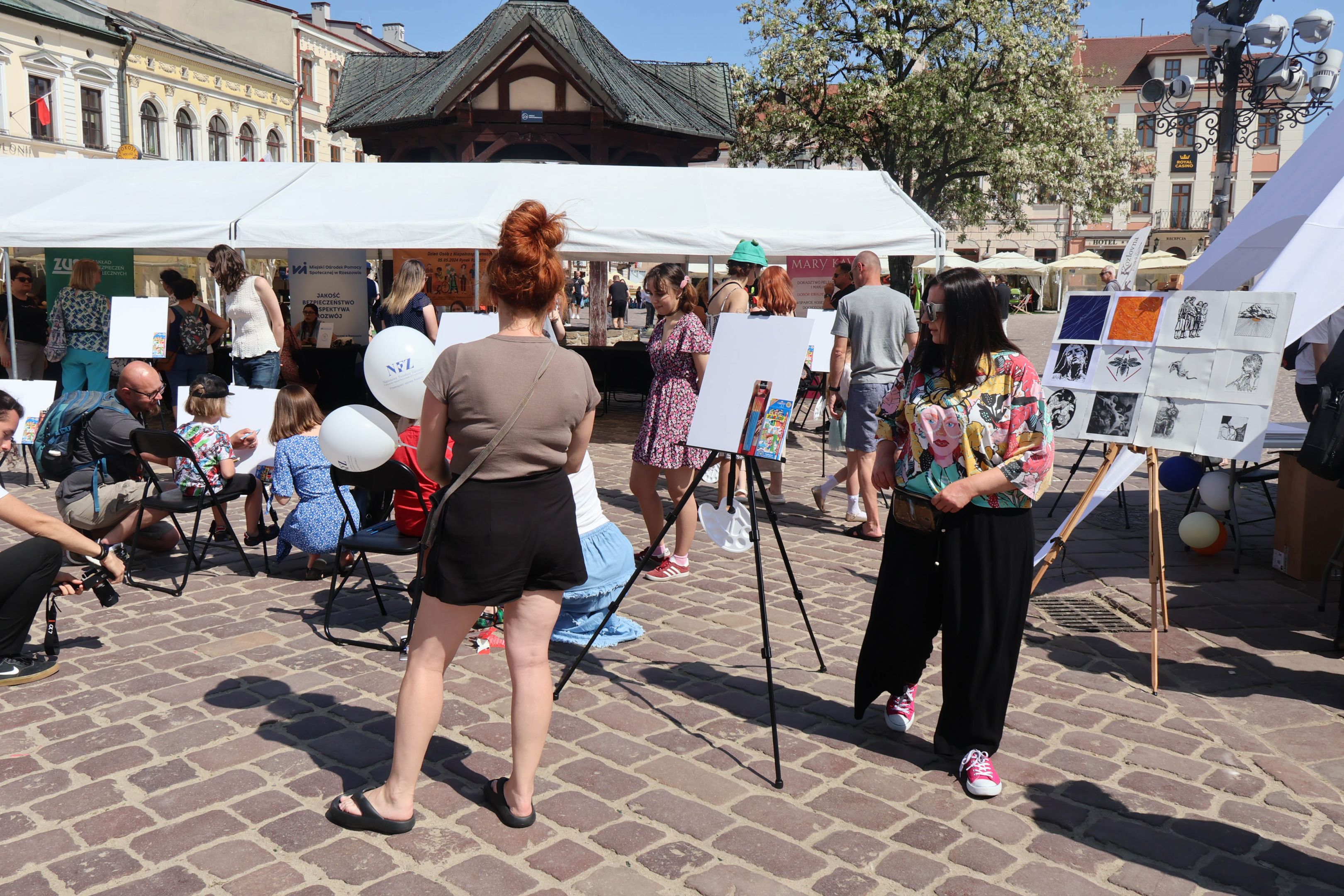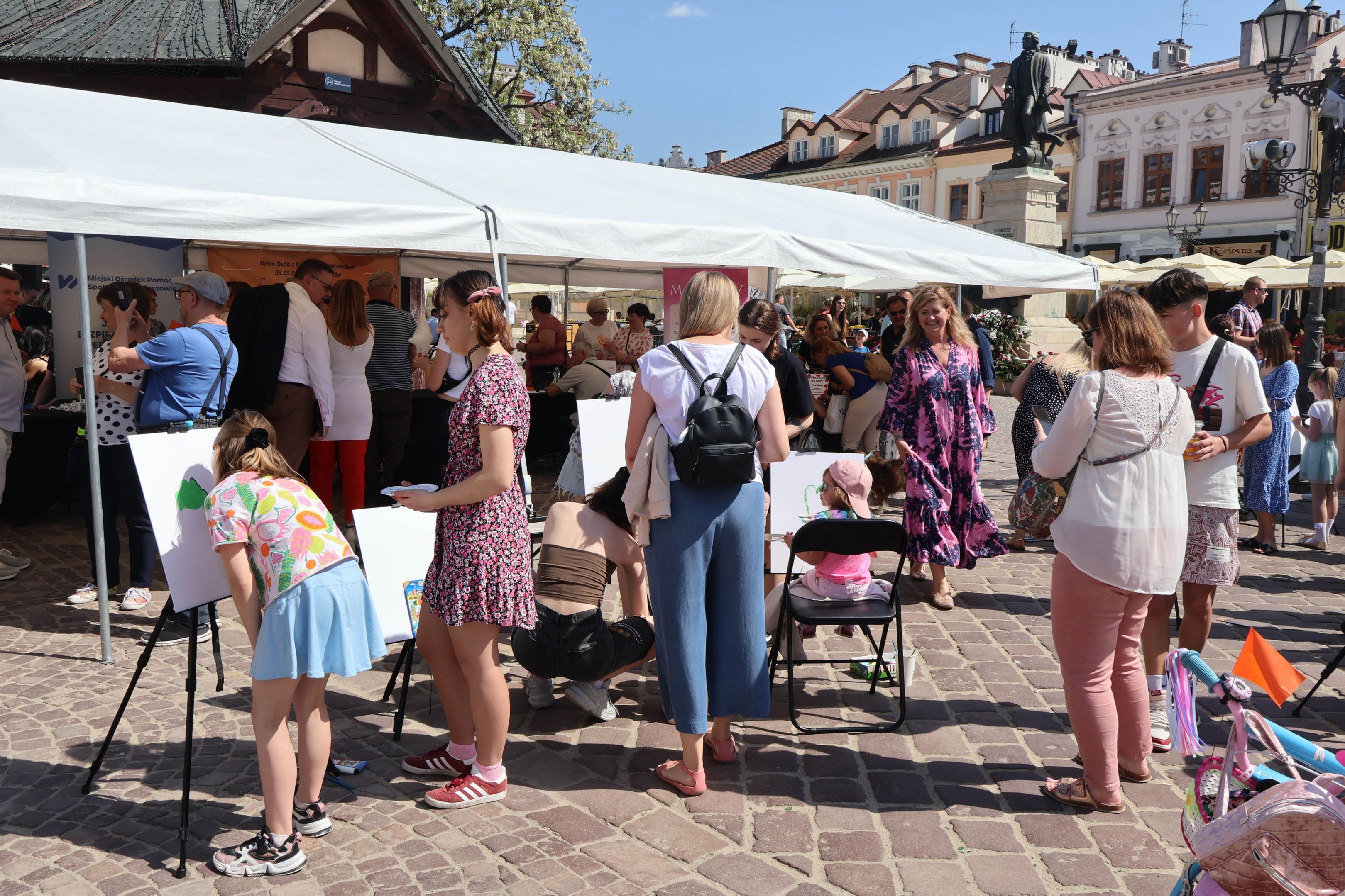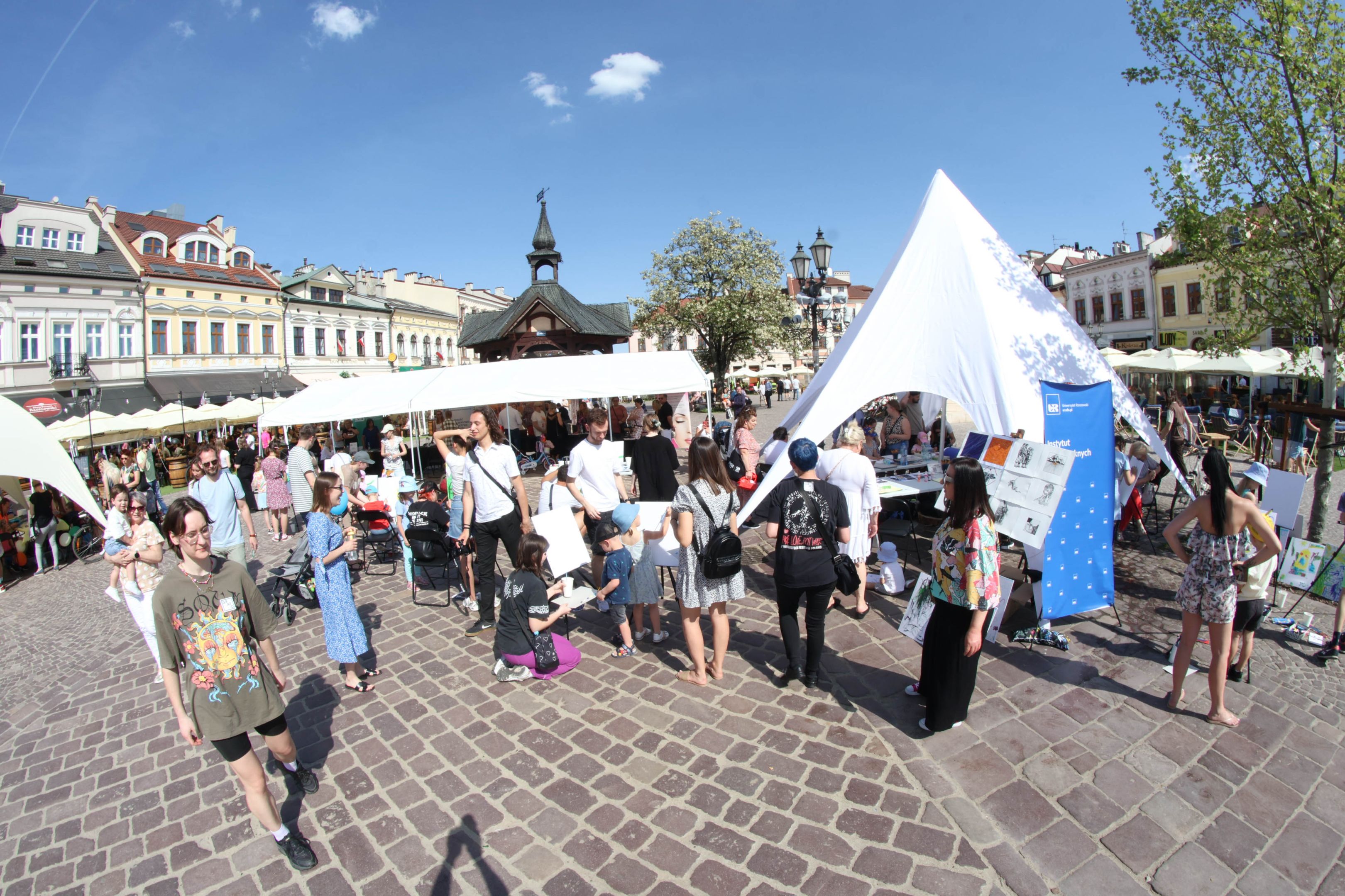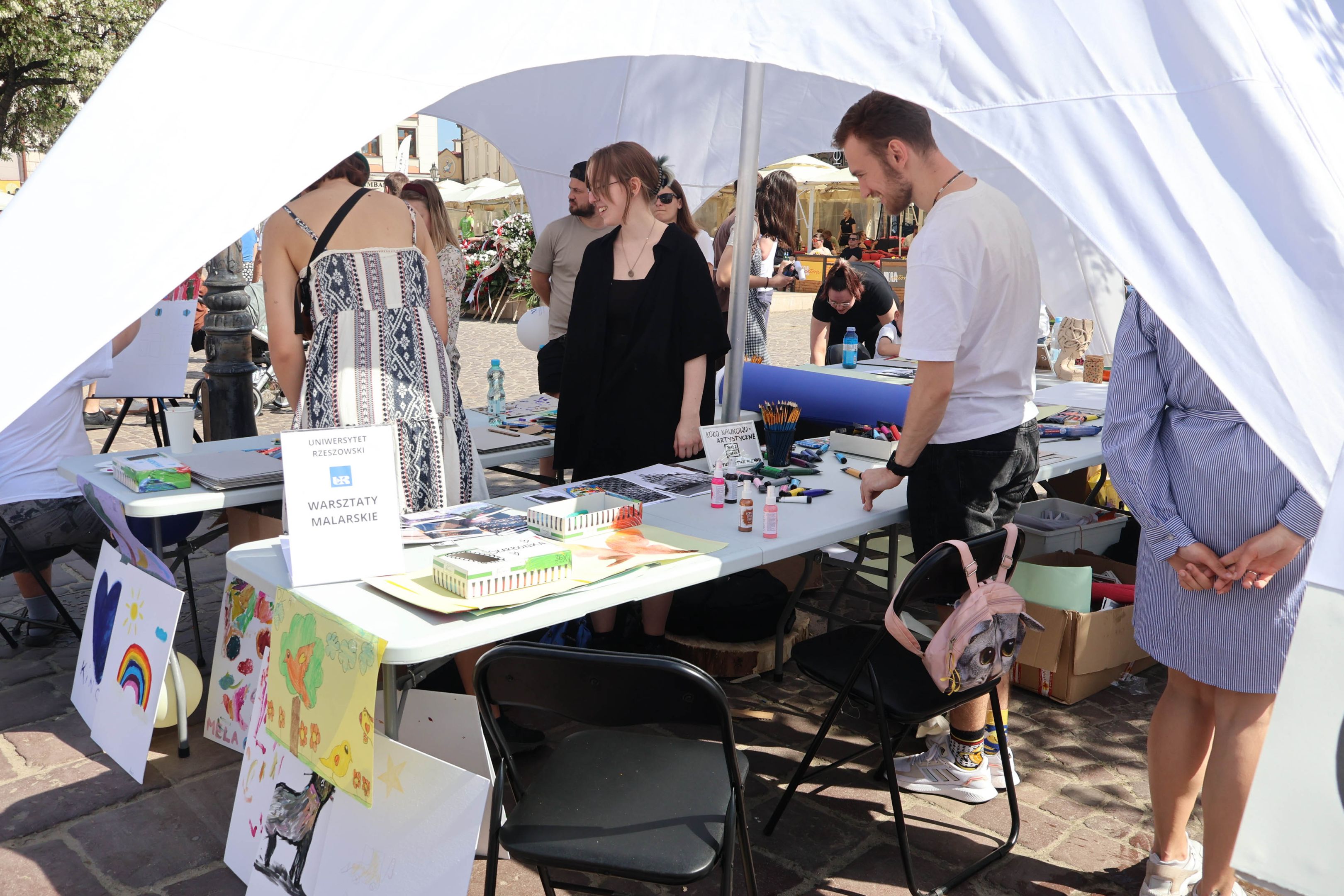 05.05.2024 to Europejski Dzień Walki z Dyskryminacją Osób Niepełnosprawnych oraz Dzień Godności Osób z Niepełnosprawnością Intelektualną. W 2024 roku na rzeszowskim Rynku Dzień Osób z Niepełnosprawnością organizowało Stowarzyszenie „For You” z Głogowa Młp., a Instytut Sztuk Pięknych został zaproszony do wzięcia czynnego udziału w tym wydarzeniu. W zaproponowanych przez nas warsztatach malarskich zarówno osoby z wyjątkowymi potrzebami, jak i mieszkańcy Rzeszowa poczuli się artystami. Cieszymy się, że tyle osób skorzystało z tego spotkania ze sztuką, poznania jej pozytywnego wpływu na zdrowie psychiczne i wyjątkowego oddziaływania na sferę emocjonalną. Warsztaty poprowadzili: kadra ISP – Anna Steliga (koordynatorka współpracy ze stowarzyszeniem „For You”), Karolina Niwelińska (opiekunka Zapału), Łukasz Kuśnierz; a także członkinie i członkowie Kół Naukowo-Artystycznych działających przy ISP tj. RAZEM, ZAPAŁ, GRAFO i LENS – Jurkiewicz Justyna, Głąb Kamil, Kochan Karolina, Nowak Natalia, Żuchowicz Gabriela, Szeliga Piotr, Środoń Justyna, Błażej Marcelina, Koziara Agnieszka, Winczowska Celina, Zdziebko Katarzyna, Sobuś Emilia, Gomułka Weronika, Furmanek Kinga, Krupa Antonina, Pivnova Polina, Lis Julia, Stopa Maksymilian, Inglot Anna, Nykiel Natalia, Możdżeń Paulina, Jachyra Sylwia, Drelich Weronika, Malinowska Weronika, Kiwior Weronika, Jarosz Daria, Szwed Żaneta, Kicińska Dominika, Cieszyńska Amelia, Kopala Anna, Sherstiukova Daria, Rachwalska Gabriela, Babińska Izabela, Miąsik Julia, Cichosz Marlena, Hanejko Monika, Dawid Wikiera, Julia Tryczyńska, Kornelia Sówka, Amelia Grzebyk, Michał Gorczyca, Joanna Żebracka, oraz Natalia Szlęk i Natalia Dranishcheva. Fotorelację z wydarzenia przygotowali: Weronika Drelich, Kornelia Sówka, Kamil Głąb, Michał Gorczyca, Dawid Wikiera i Łukasz Kuśnierz.