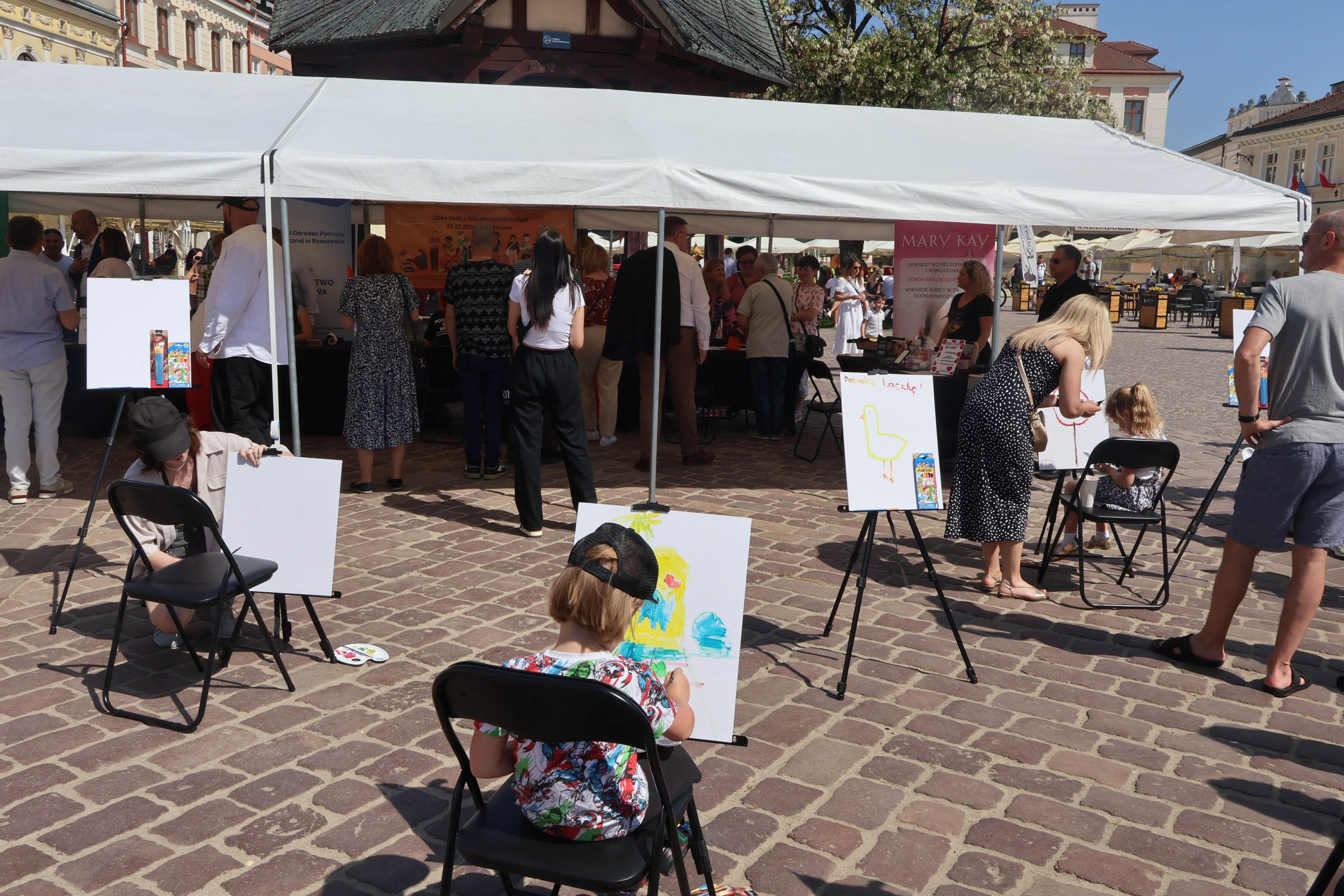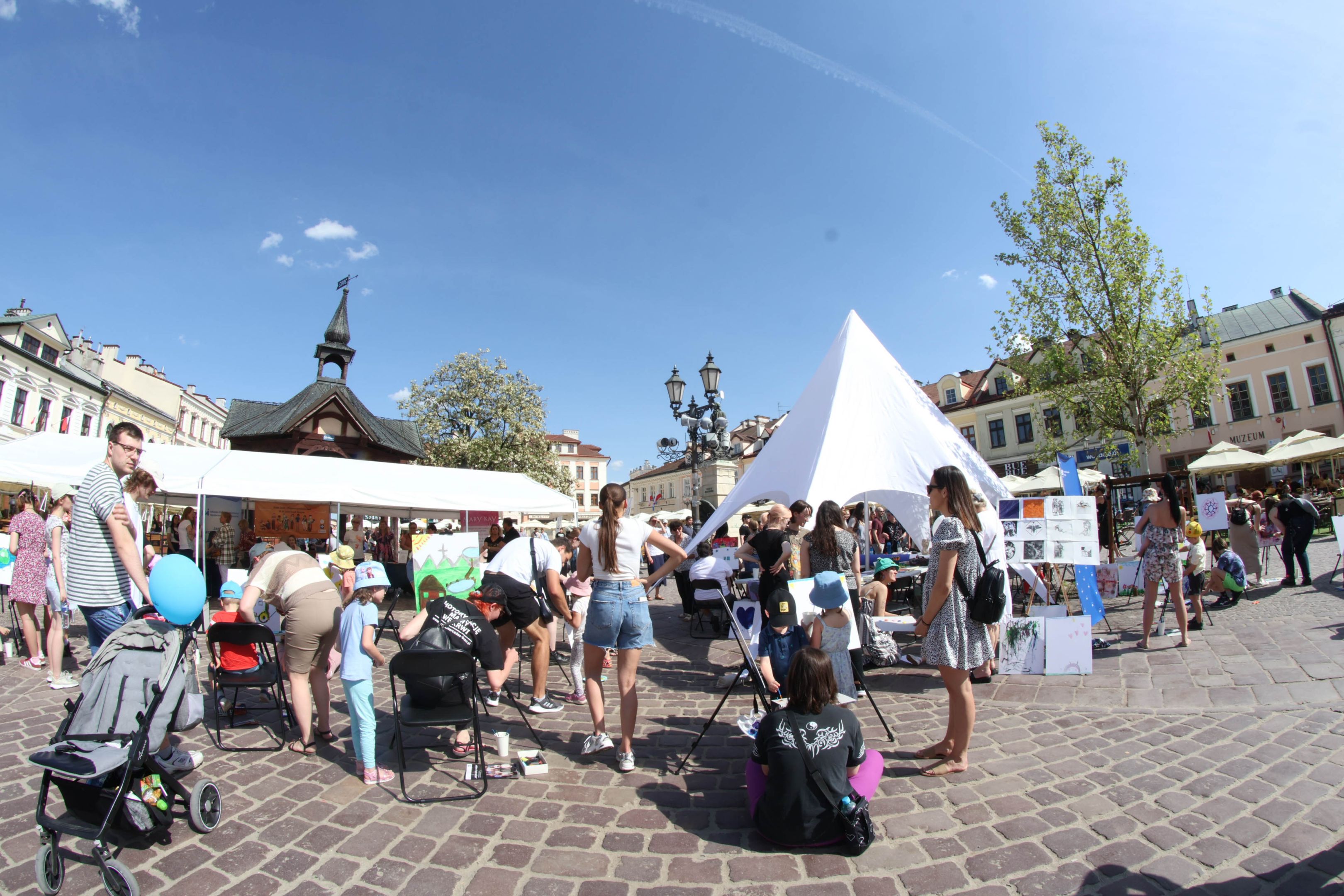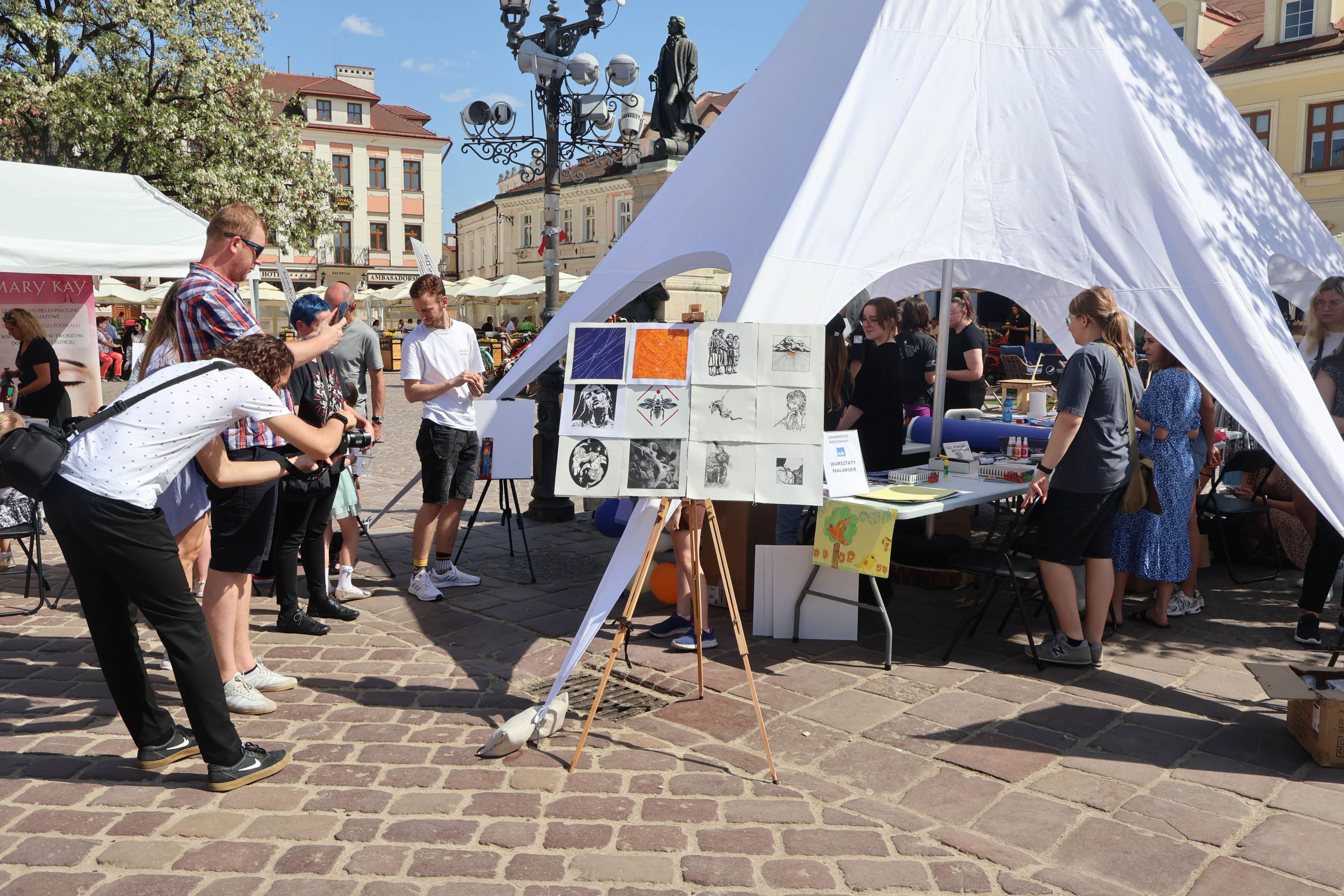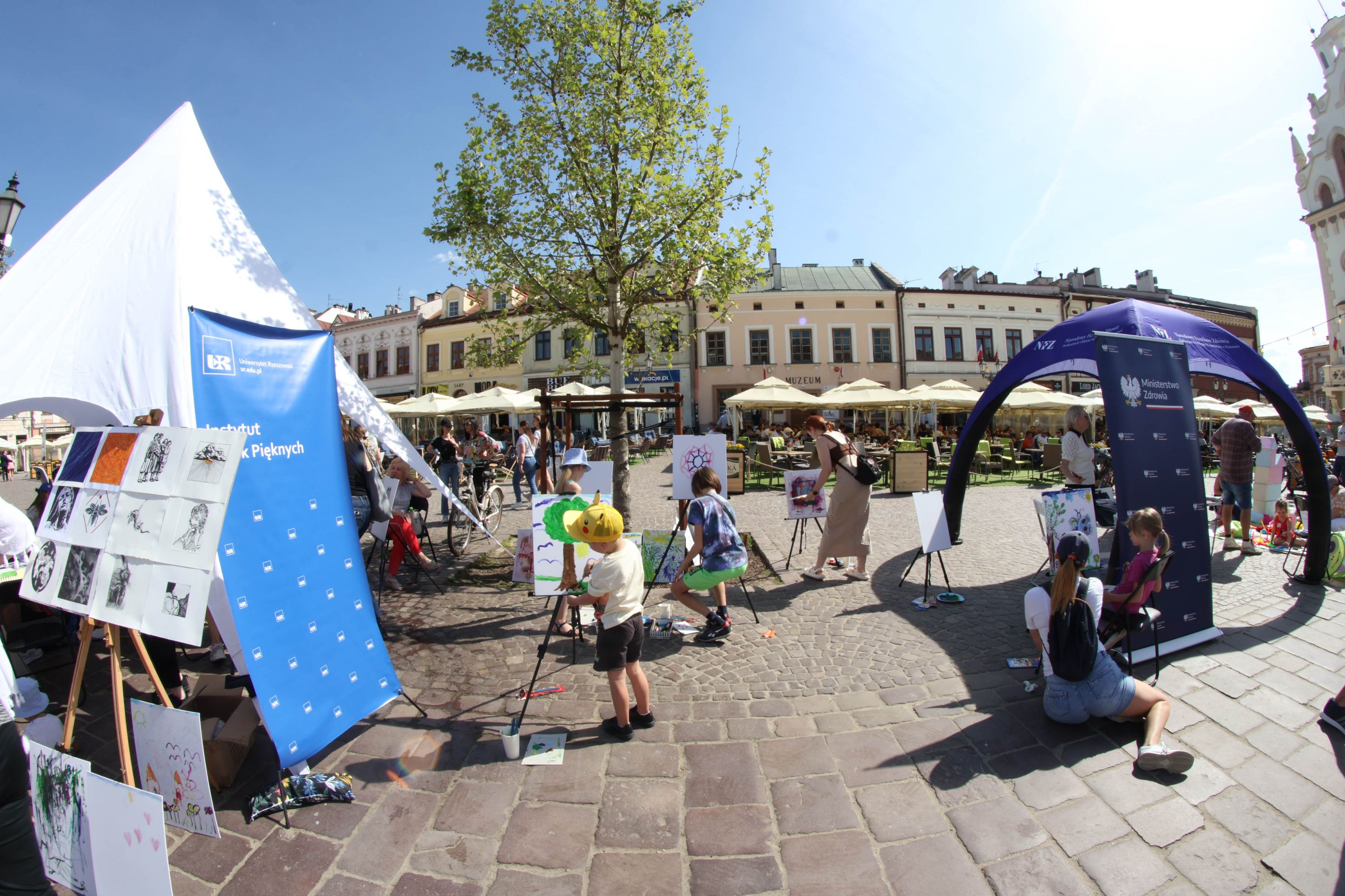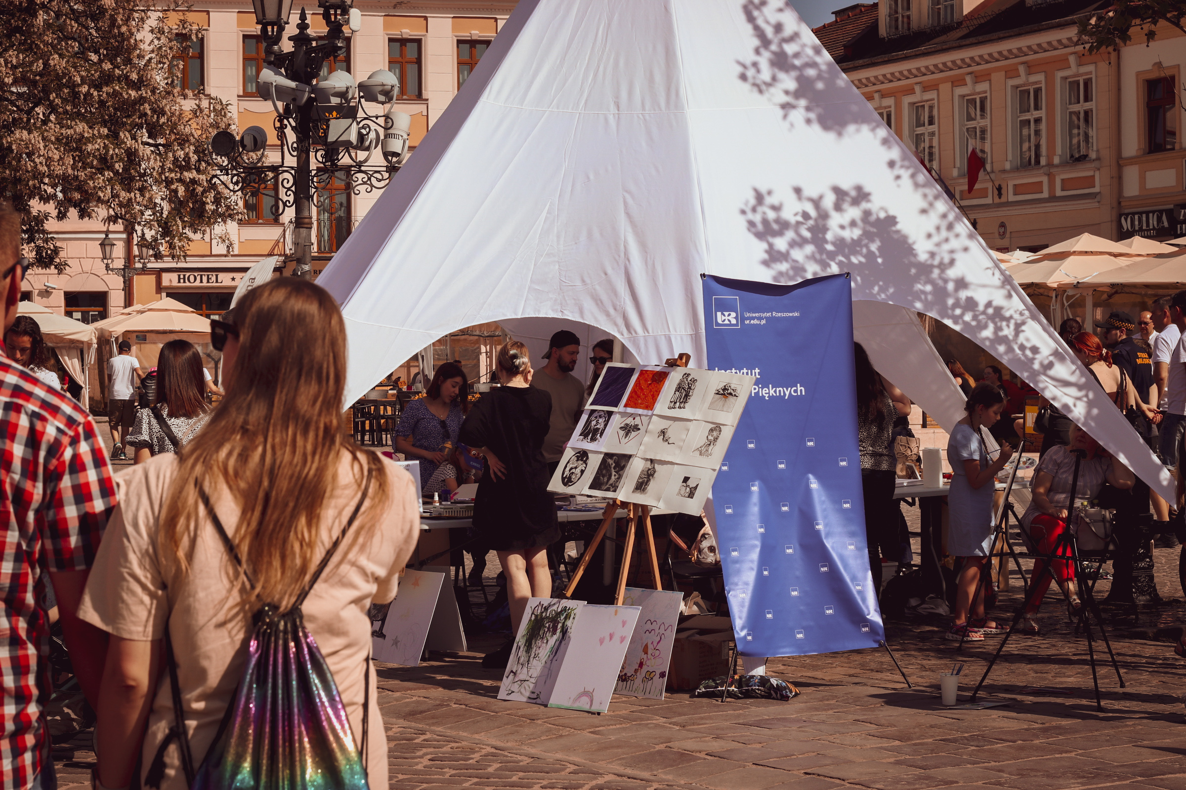05.05.2024 to Europejski Dzień Walki z Dyskryminacją Osób Niepełnosprawnych oraz Dzień Godności Osób z Niepełnosprawnością Intelektualną. W 2024 roku na rzeszowskim Rynku Dzień Osób z Niepełnosprawnością organizowało Stowarzyszenie „For You” z Głogowa Młp., a Instytut Sztuk Pięknych został zaproszony do wzięcia czynnego udziału w tym wydarzeniu. W zaproponowanych przez nas warsztatach malarskich zarówno osoby z wyjątkowymi potrzebami, jak i mieszkańcy Rzeszowa poczuli się artystami. Cieszymy się, że tyle osób skorzystało z tego spotkania ze sztuką, poznania jej pozytywnego wpływu na zdrowie psychiczne i wyjątkowego oddziaływania na sferę emocjonalną. Warsztaty poprowadzili: kadra ISP – Anna Steliga (koordynatorka współpracy ze stowarzyszeniem „For You”), Karolina Niwelińska (opiekunka Zapału), Łukasz Kuśnierz; a także członkinie i członkowie Kół Naukowo-Artystycznych działających przy ISP tj. RAZEM, ZAPAŁ, GRAFO i LENS – Jurkiewicz Justyna, Głąb Kamil, Kochan Karolina, Nowak Natalia, Żuchowicz Gabriela, Szeliga Piotr, Środoń Justyna, Błażej Marcelina, Koziara Agnieszka, Winczowska Celina, Zdziebko Katarzyna, Sobuś Emilia, Gomułka Weronika, Furmanek Kinga, Krupa Antonina, Pivnova Polina, Lis Julia, Stopa Maksymilian, Inglot Anna, Nykiel Natalia, Możdżeń Paulina, Jachyra Sylwia, Drelich Weronika, Malinowska Weronika, Kiwior Weronika, Jarosz Daria, Szwed Żaneta, Kicińska Dominika, Cieszyńska Amelia, Kopala Anna, Sherstiukova Daria, Rachwalska Gabriela, Babińska Izabela, Miąsik Julia, Cichosz Marlena, Hanejko Monika, Dawid Wikiera, Julia Tryczyńska, Kornelia Sówka, Amelia Grzebyk, Michał Gorczyca, Joanna Żebracka, oraz Natalia Szlęk i Natalia Dranishcheva. Fotorelację z wydarzenia przygotowali: Weronika Drelich, Kornelia Sówka, Kamil Głąb, Michał Gorczyca, Dawid Wikiera i Łukasz Kuśnierz.
