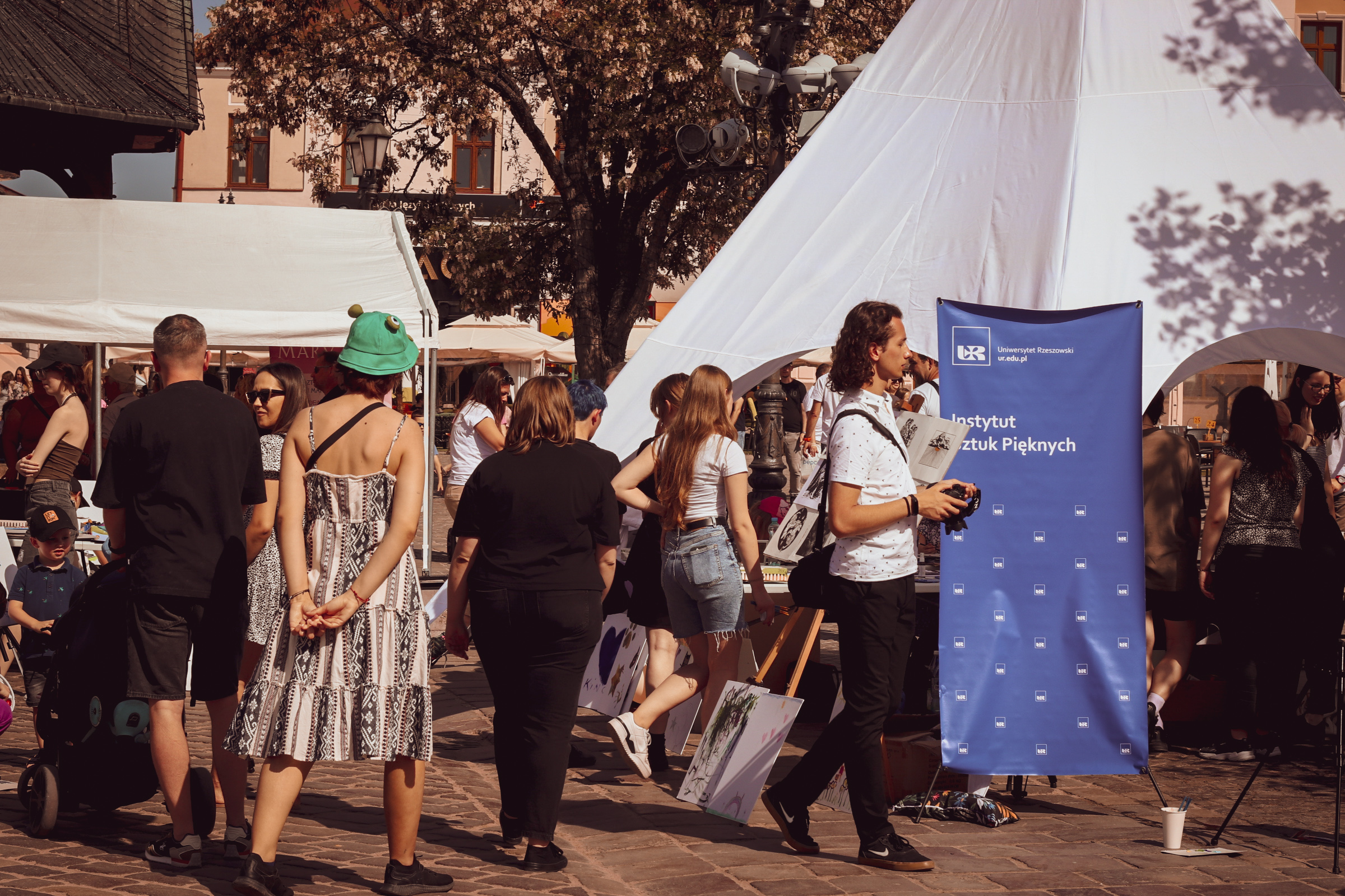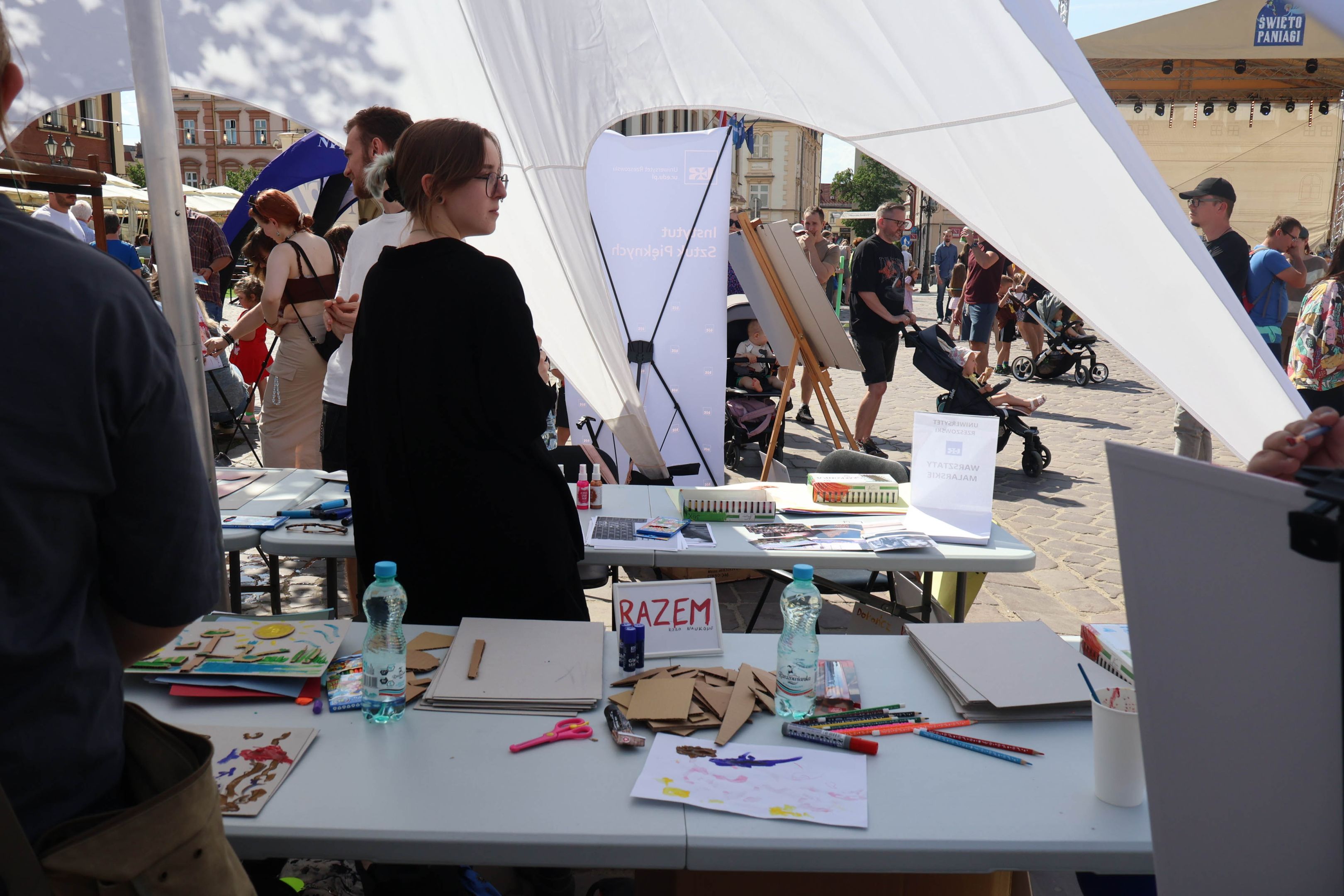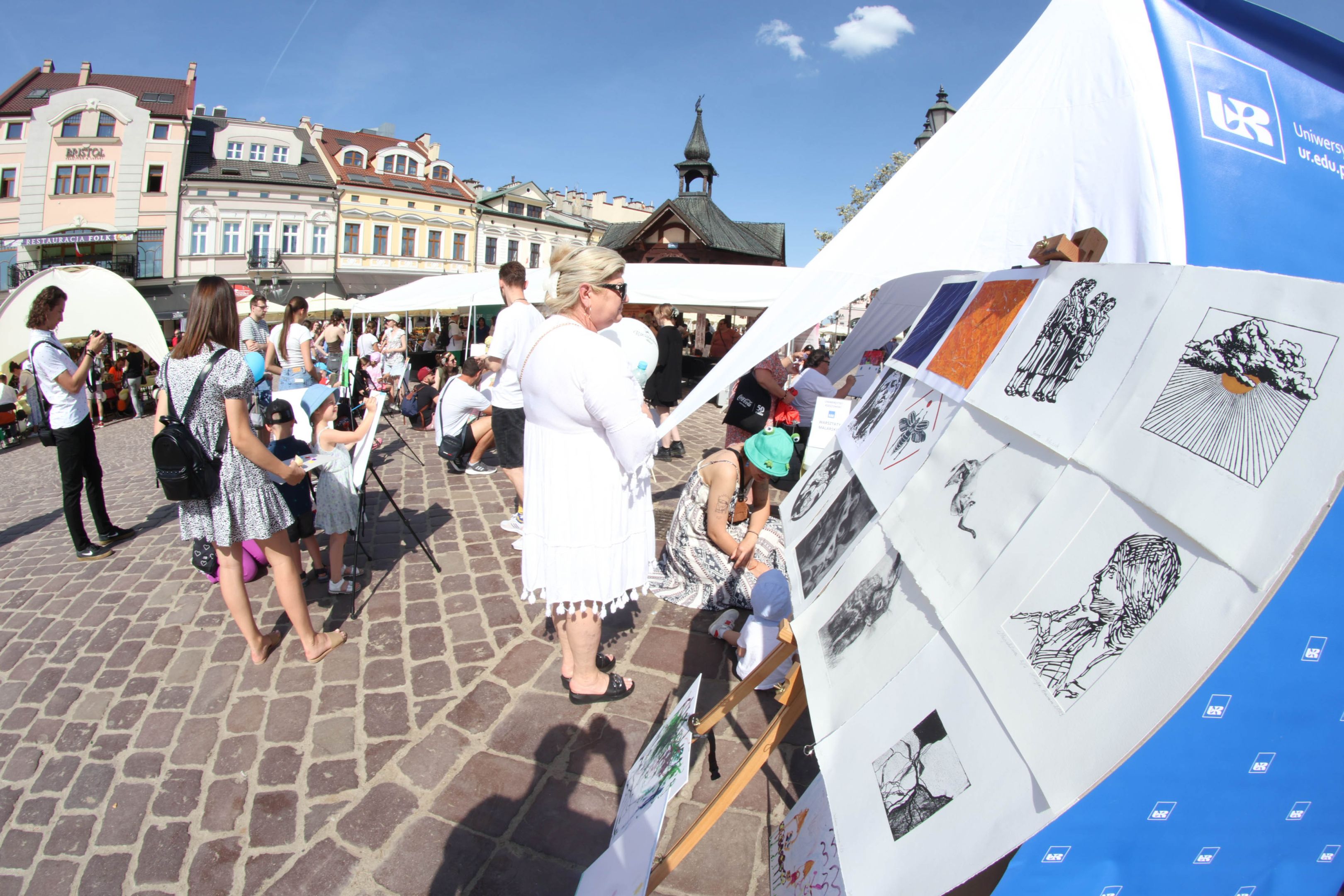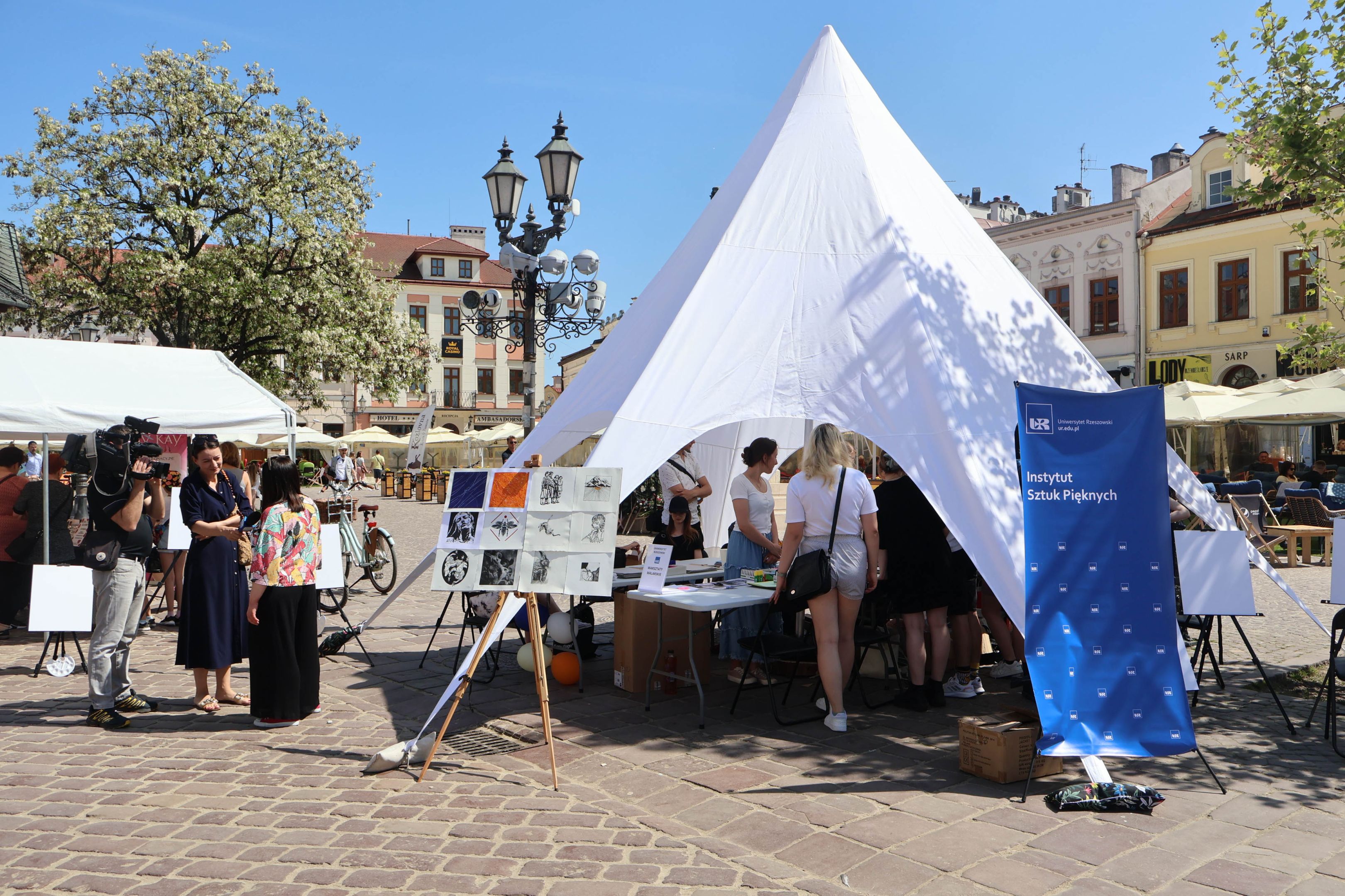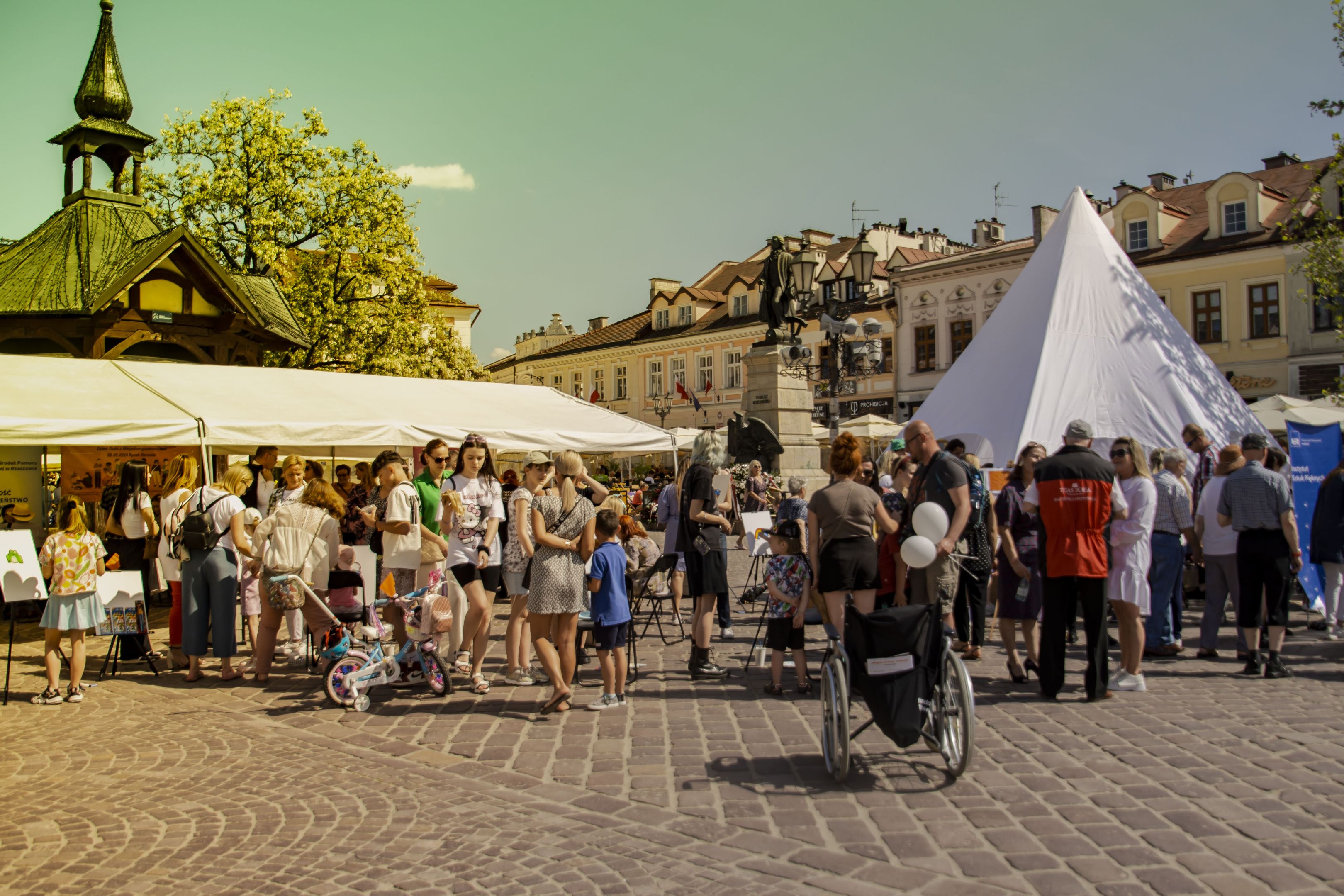 05.05.2024 to Europejski Dzień Walki z Dyskryminacją Osób Niepełnosprawnych oraz Dzień Godności Osób z Niepełnosprawnością Intelektualną. W 2024 roku na rzeszowskim Rynku Dzień Osób z Niepełnosprawnością organizowało Stowarzyszenie „For You” z Głogowa Młp., a Instytut Sztuk Pięknych został zaproszony do wzięcia czynnego udziału w tym wydarzeniu. W zaproponowanych przez nas warsztatach malarskich zarówno osoby z wyjątkowymi potrzebami, jak i mieszkańcy Rzeszowa poczuli się artystami. Cieszymy się, że tyle osób skorzystało z tego spotkania ze sztuką, poznania jej pozytywnego wpływu na zdrowie psychiczne i wyjątkowego oddziaływania na sferę emocjonalną. Warsztaty poprowadzili: kadra ISP – Anna Steliga (koordynatorka współpracy ze stowarzyszeniem „For You”), Karolina Niwelińska (opiekunka Zapału), Łukasz Kuśnierz; a także członkinie i członkowie Kół Naukowo-Artystycznych działających przy ISP tj. RAZEM, ZAPAŁ, GRAFO i LENS – Jurkiewicz Justyna, Głąb Kamil, Kochan Karolina, Nowak Natalia, Żuchowicz Gabriela, Szeliga Piotr, Środoń Justyna, Błażej Marcelina, Koziara Agnieszka, Winczowska Celina, Zdziebko Katarzyna, Sobuś Emilia, Gomułka Weronika, Furmanek Kinga, Krupa Antonina, Pivnova Polina, Lis Julia, Stopa Maksymilian, Inglot Anna, Nykiel Natalia, Możdżeń Paulina, Jachyra Sylwia, Drelich Weronika, Malinowska Weronika, Kiwior Weronika, Jarosz Daria, Szwed Żaneta, Kicińska Dominika, Cieszyńska Amelia, Kopala Anna, Sherstiukova Daria, Rachwalska Gabriela, Babińska Izabela, Miąsik Julia, Cichosz Marlena, Hanejko Monika, Dawid Wikiera, Julia Tryczyńska, Kornelia Sówka, Amelia Grzebyk, Michał Gorczyca, Joanna Żebracka, oraz Natalia Szlęk i Natalia Dranishcheva. Fotorelację z wydarzenia przygotowali: Weronika Drelich, Kornelia Sówka, Kamil Głąb, Michał Gorczyca, Dawid Wikiera i Łukasz Kuśnierz.