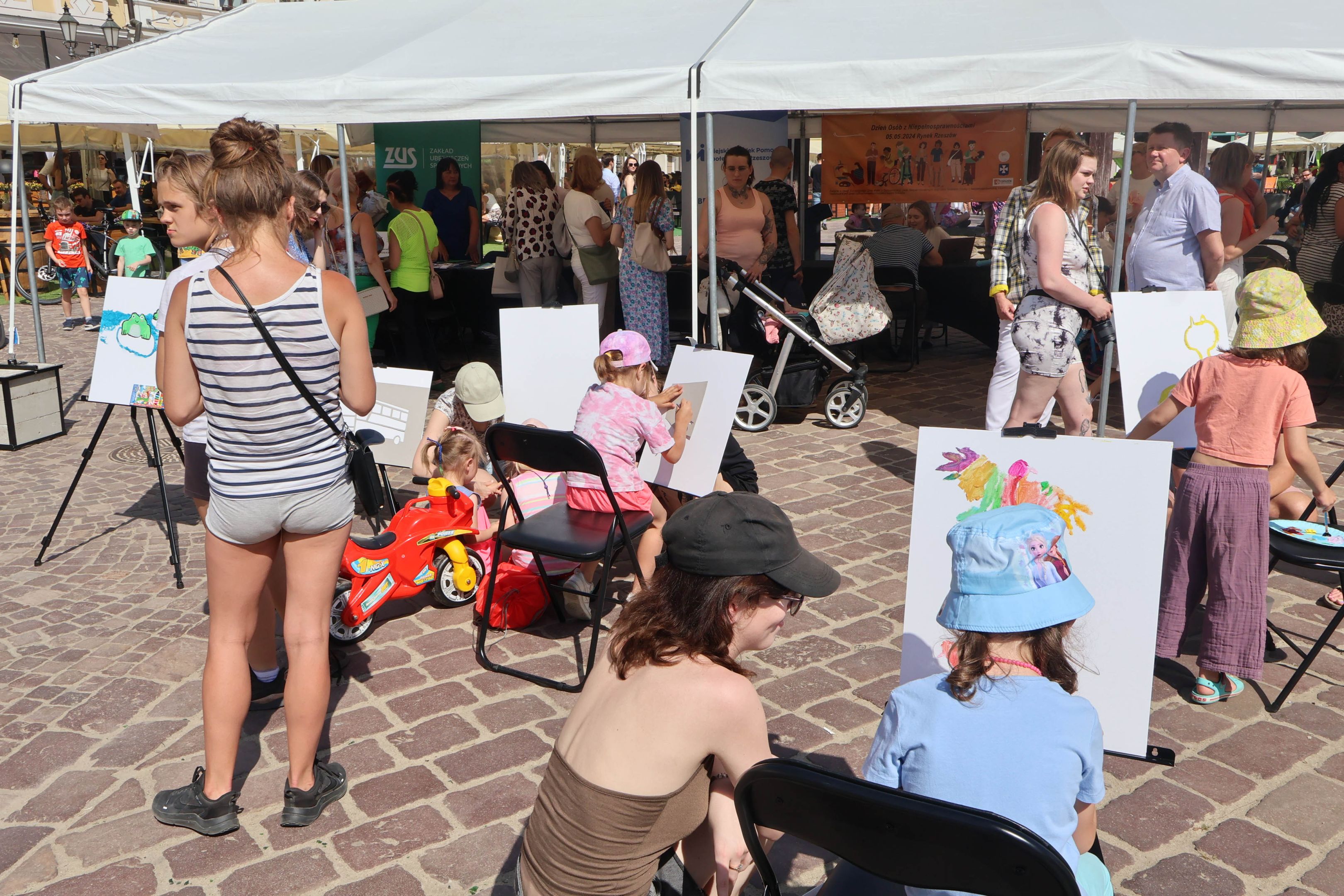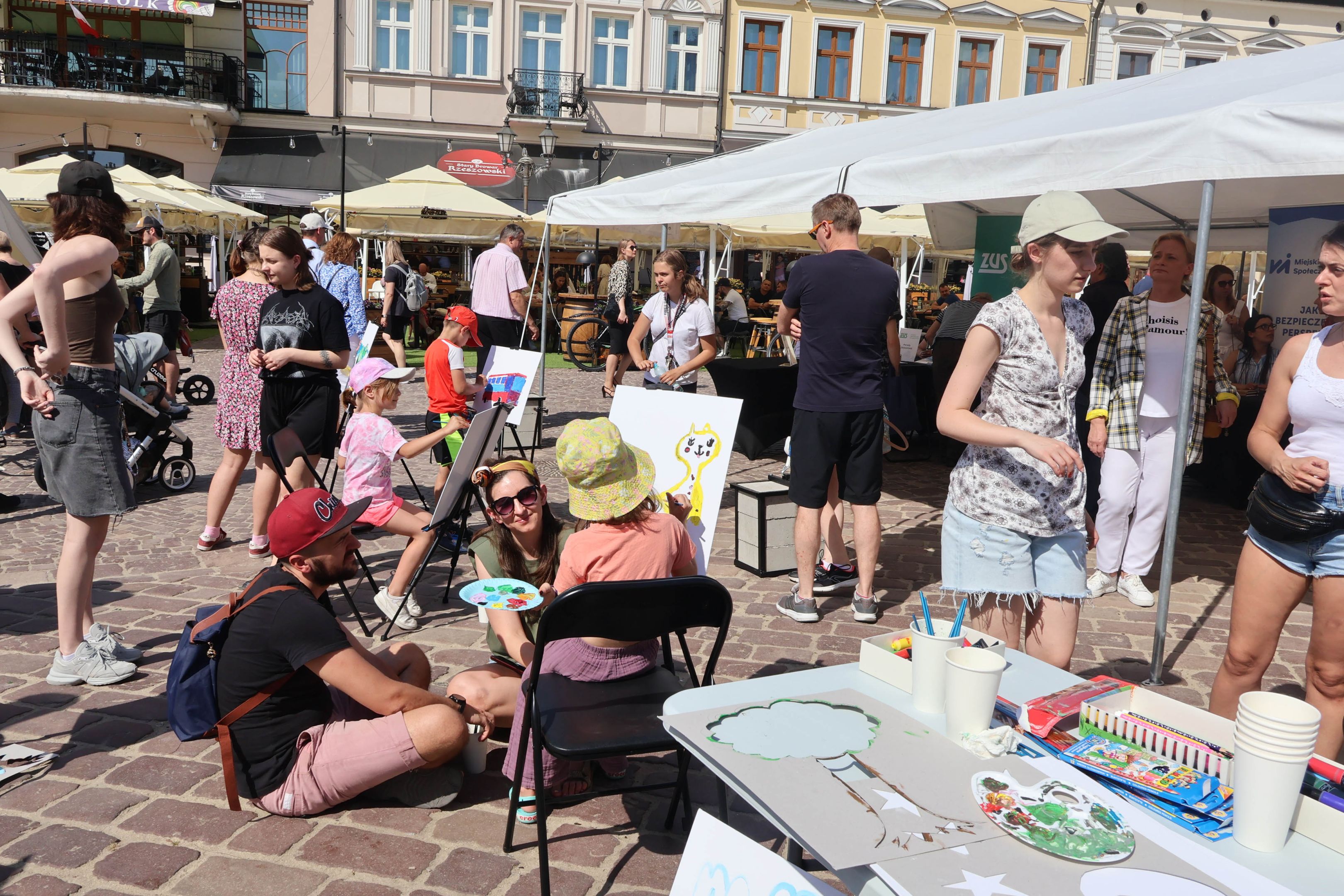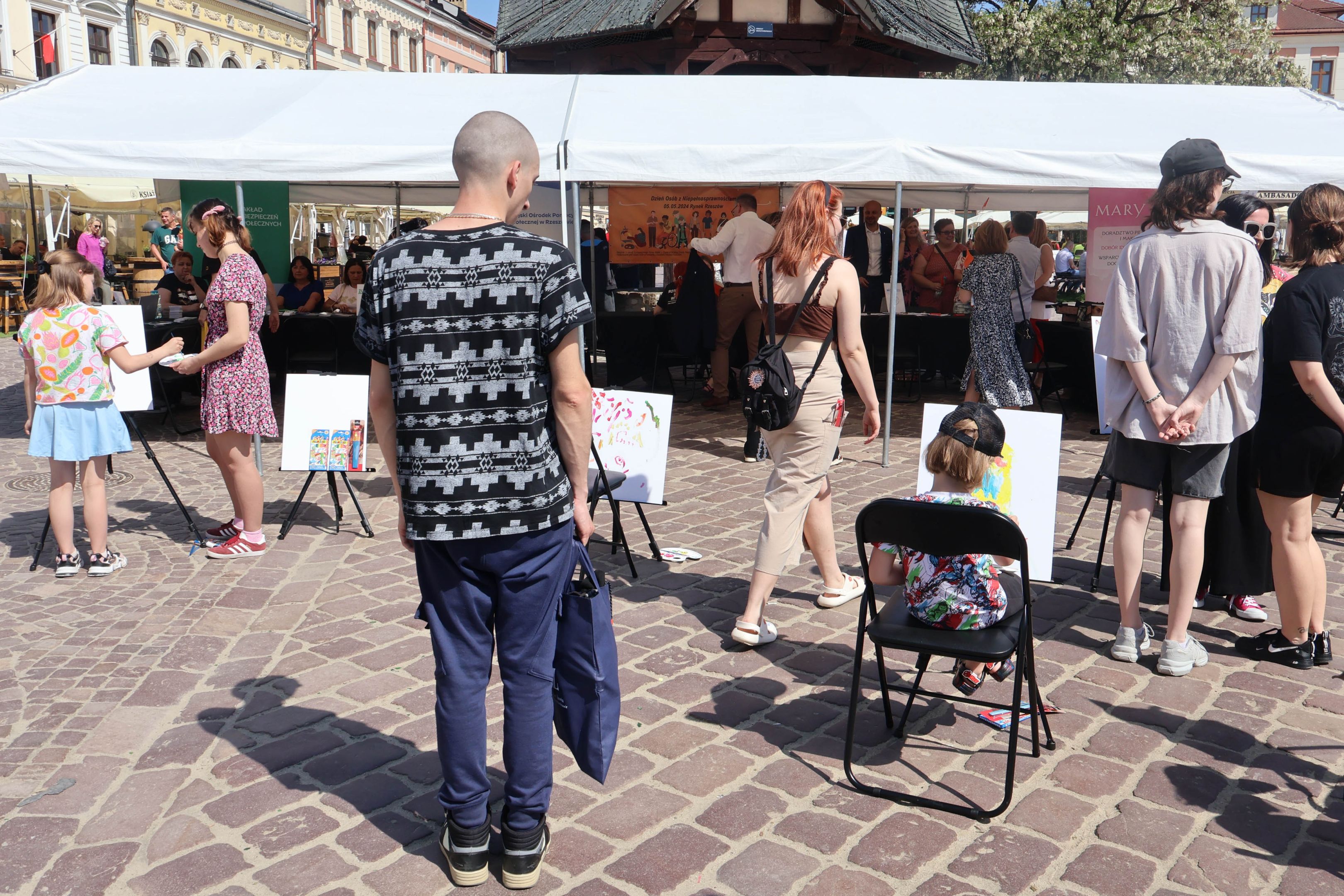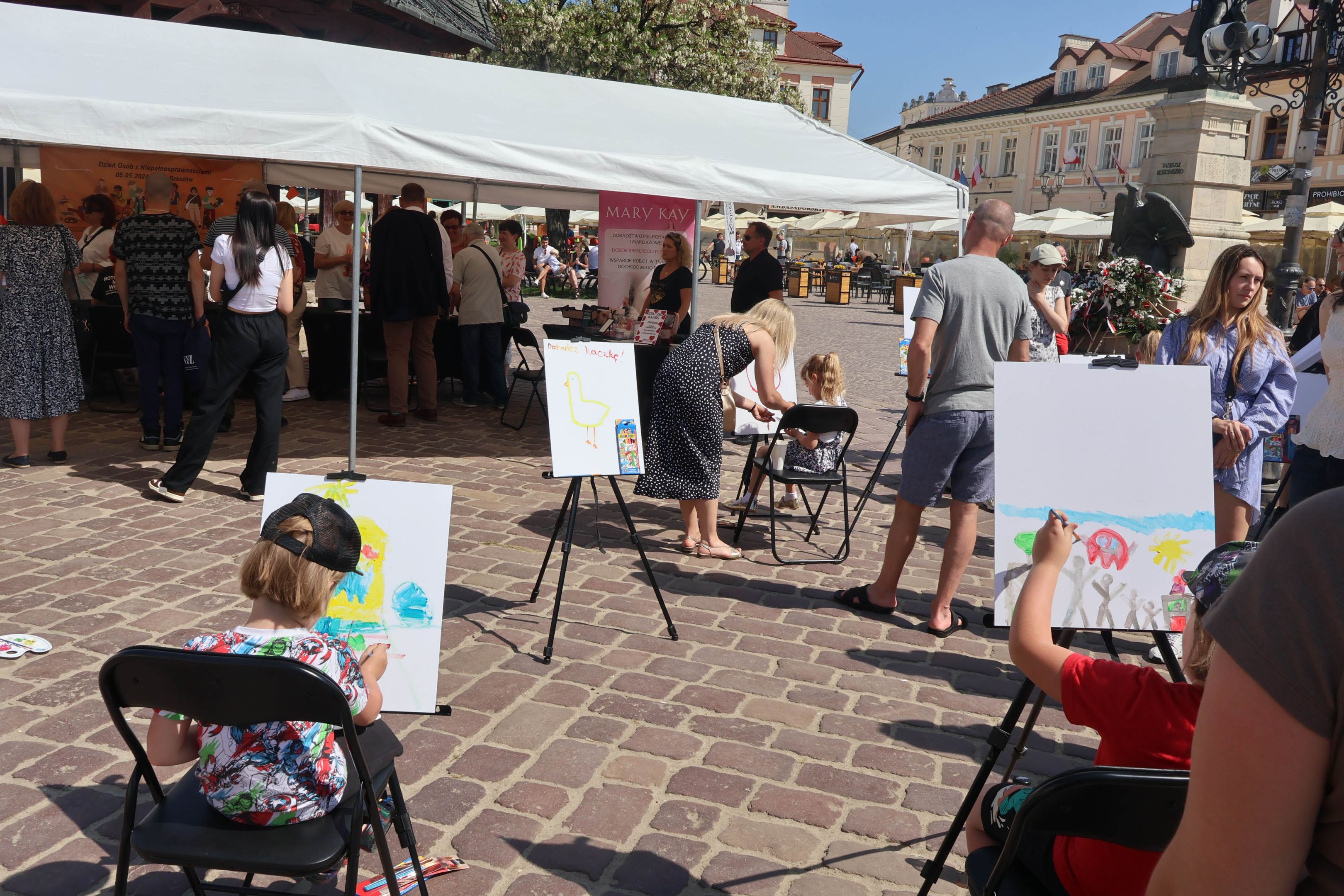 05.05.2024 to Europejski Dzień Walki z Dyskryminacją Osób Niepełnosprawnych oraz Dzień Godności Osób z Niepełnosprawnością Intelektualną. W 2024 roku na rzeszowskim Rynku Dzień Osób z Niepełnosprawnością organizowało Stowarzyszenie „For You” z Głogowa Młp., a Instytut Sztuk Pięknych został zaproszony do wzięcia czynnego udziału w tym wydarzeniu. W zaproponowanych przez nas warsztatach malarskich zarówno osoby z wyjątkowymi potrzebami, jak i mieszkańcy Rzeszowa poczuli się artystami. Cieszymy się, że tyle osób skorzystało z tego spotkania ze sztuką, poznania jej pozytywnego wpływu na zdrowie psychiczne i wyjątkowego oddziaływania na sferę emocjonalną. Warsztaty poprowadzili: kadra ISP – Anna Steliga (koordynatorka współpracy ze stowarzyszeniem „For You”), Karolina Niwelińska (opiekunka Zapału), Łukasz Kuśnierz; a także członkinie i członkowie Kół Naukowo-Artystycznych działających przy ISP tj. RAZEM, ZAPAŁ, GRAFO i LENS – Jurkiewicz Justyna, Głąb Kamil, Kochan Karolina, Nowak Natalia, Żuchowicz Gabriela, Szeliga Piotr, Środoń Justyna, Błażej Marcelina, Koziara Agnieszka, Winczowska Celina, Zdziebko Katarzyna, Sobuś Emilia, Gomułka Weronika, Furmanek Kinga, Krupa Antonina, Pivnova Polina, Lis Julia, Stopa Maksymilian, Inglot Anna, Nykiel Natalia, Możdżeń Paulina, Jachyra Sylwia, Drelich Weronika, Malinowska Weronika, Kiwior Weronika, Jarosz Daria, Szwed Żaneta, Kicińska Dominika, Cieszyńska Amelia, Kopala Anna, Sherstiukova Daria, Rachwalska Gabriela, Babińska Izabela, Miąsik Julia, Cichosz Marlena, Hanejko Monika, Dawid Wikiera, Julia Tryczyńska, Kornelia Sówka, Amelia Grzebyk, Michał Gorczyca, Joanna Żebracka, oraz Natalia Szlęk i Natalia Dranishcheva. Fotorelację z wydarzenia przygotowali: Weronika Drelich, Kornelia Sówka, Kamil Głąb, Michał Gorczyca, Dawid Wikiera i Łukasz Kuśnierz.