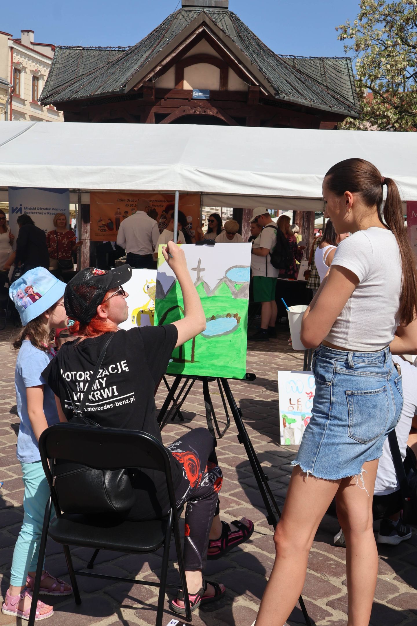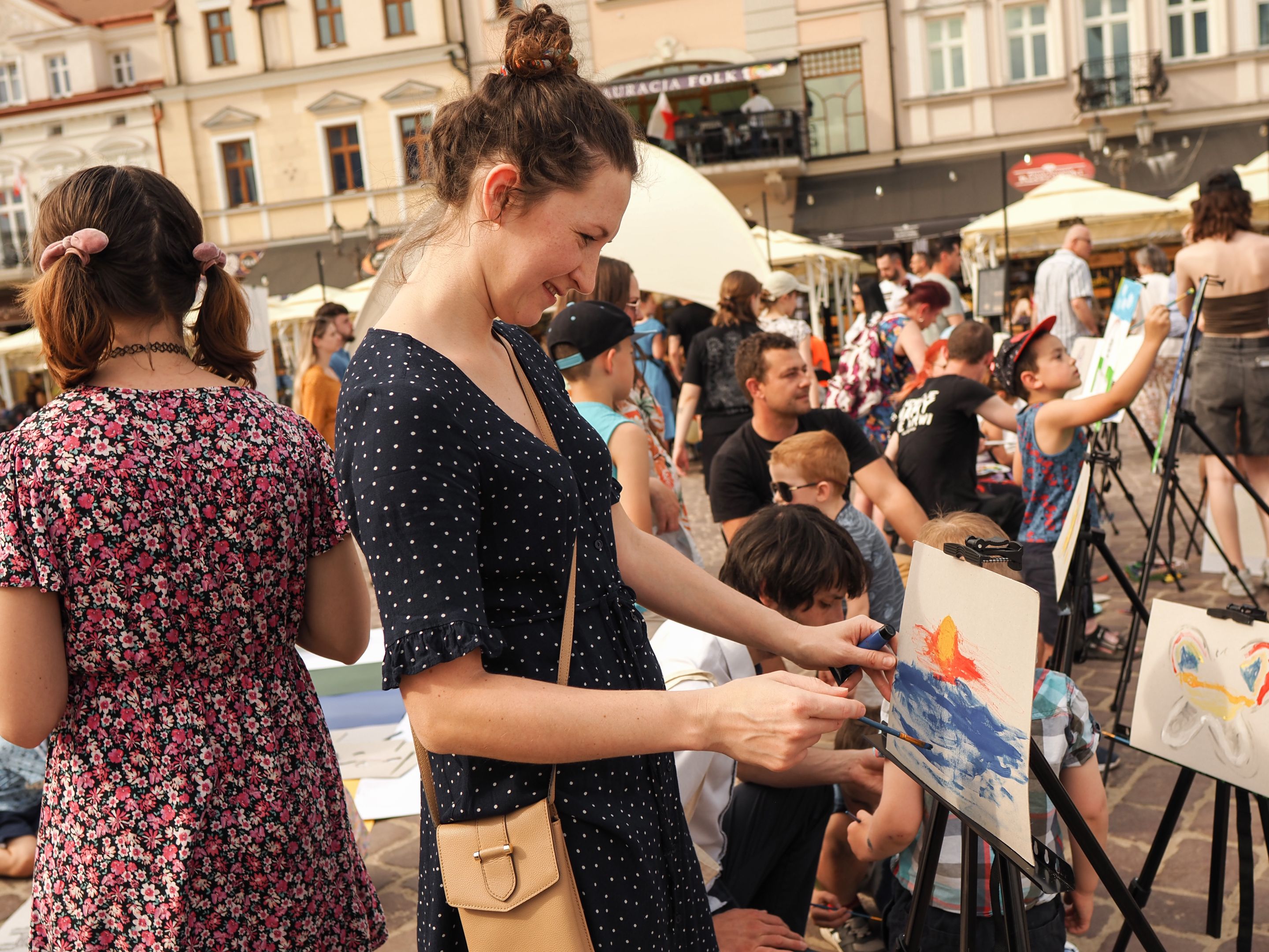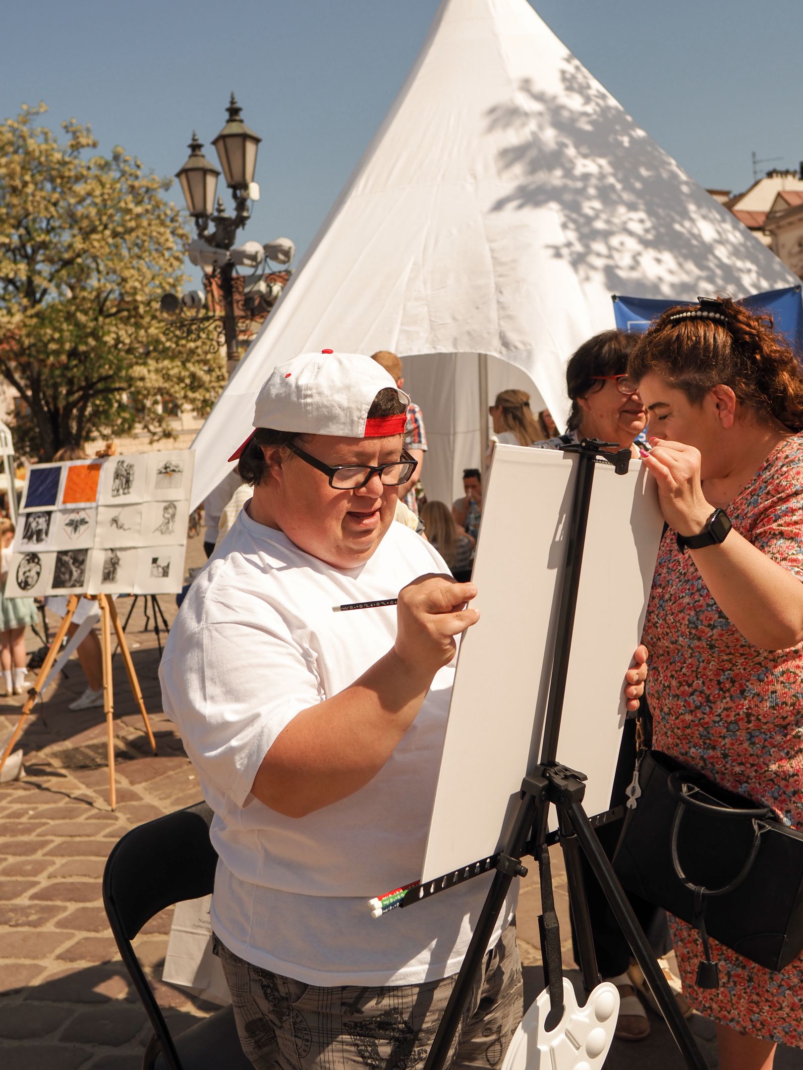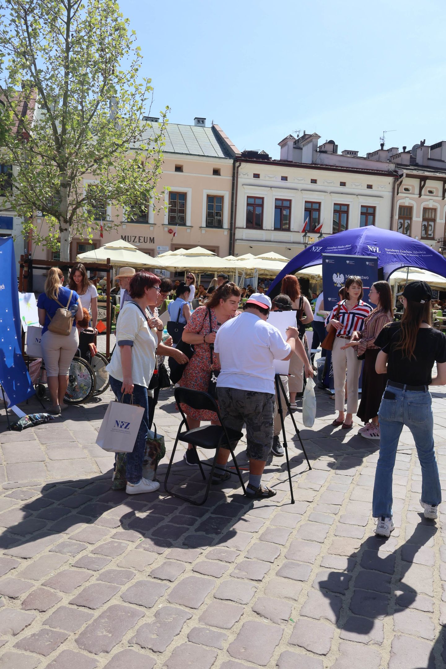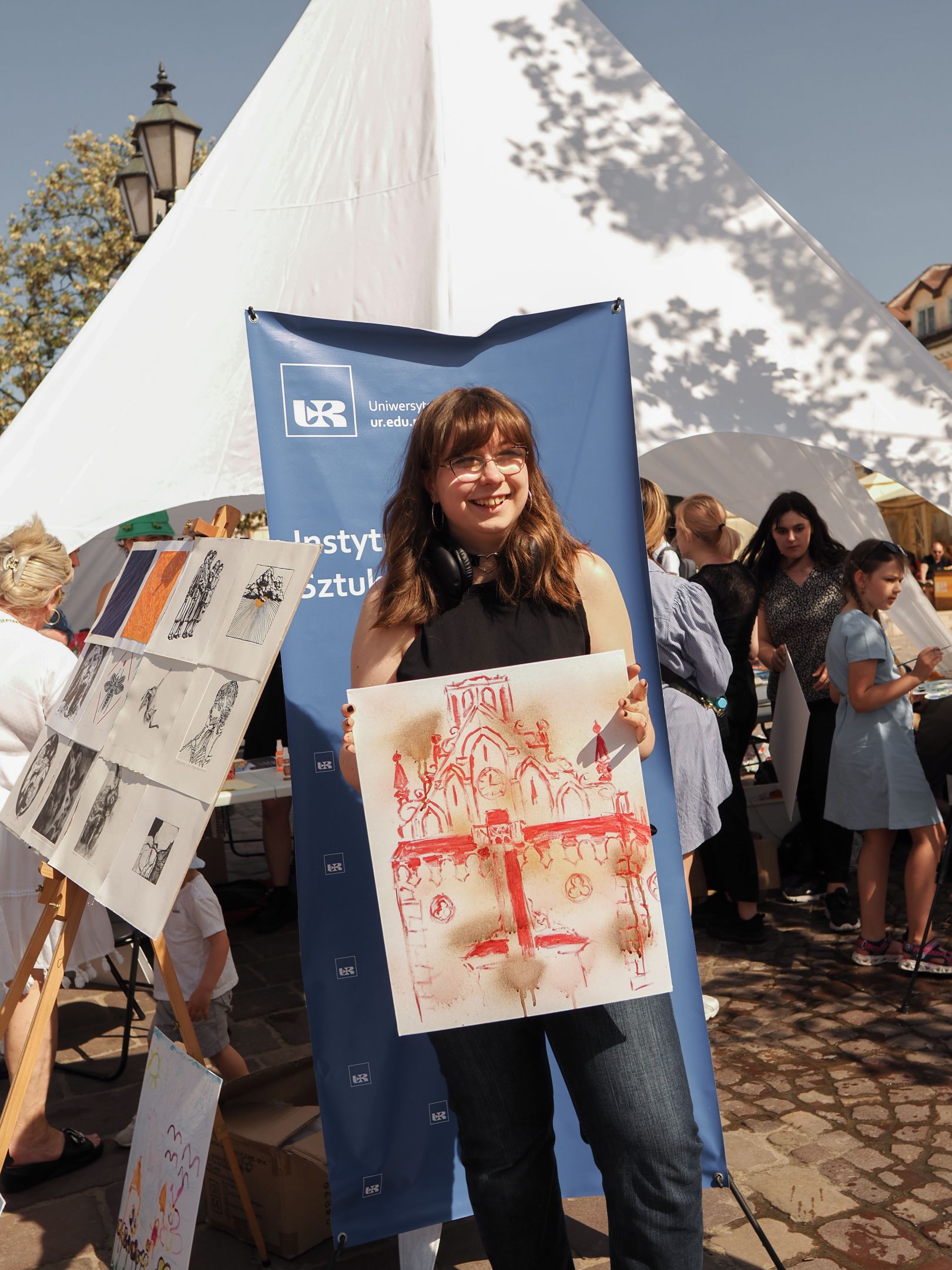 05.05.2024 to Europejski Dzień Walki z Dyskryminacją Osób Niepełnosprawnych oraz Dzień Godności Osób z Niepełnosprawnością Intelektualną. W 2024 roku na rzeszowskim Rynku Dzień Osób z Niepełnosprawnością organizowało Stowarzyszenie „For You” z Głogowa Młp., a Instytut Sztuk Pięknych został zaproszony do wzięcia czynnego udziału w tym wydarzeniu. W zaproponowanych przez nas warsztatach malarskich zarówno osoby z wyjątkowymi potrzebami, jak i mieszkańcy Rzeszowa poczuli się artystami. Cieszymy się, że tyle osób skorzystało z tego spotkania ze sztuką, poznania jej pozytywnego wpływu na zdrowie psychiczne i wyjątkowego oddziaływania na sferę emocjonalną. Warsztaty poprowadzili: kadra ISP – Anna Steliga (koordynatorka współpracy ze stowarzyszeniem „For You”), Karolina Niwelińska (opiekunka Zapału), Łukasz Kuśnierz; a także członkinie i członkowie Kół Naukowo-Artystycznych działających przy ISP tj. RAZEM, ZAPAŁ, GRAFO i LENS – Jurkiewicz Justyna, Głąb Kamil, Kochan Karolina, Nowak Natalia, Żuchowicz Gabriela, Szeliga Piotr, Środoń Justyna, Błażej Marcelina, Koziara Agnieszka, Winczowska Celina, Zdziebko Katarzyna, Sobuś Emilia, Gomułka Weronika, Furmanek Kinga, Krupa Antonina, Pivnova Polina, Lis Julia, Stopa Maksymilian, Inglot Anna, Nykiel Natalia, Możdżeń Paulina, Jachyra Sylwia, Drelich Weronika, Malinowska Weronika, Kiwior Weronika, Jarosz Daria, Szwed Żaneta, Kicińska Dominika, Cieszyńska Amelia, Kopala Anna, Sherstiukova Daria, Rachwalska Gabriela, Babińska Izabela, Miąsik Julia, Cichosz Marlena, Hanejko Monika, Dawid Wikiera, Julia Tryczyńska, Kornelia Sówka, Amelia Grzebyk, Michał Gorczyca, Joanna Żebracka, oraz Natalia Szlęk i Natalia Dranishcheva. Fotorelację z wydarzenia przygotowali: Weronika Drelich, Kornelia Sówka, Kamil Głąb, Michał Gorczyca, Dawid Wikiera i Łukasz Kuśnierz.