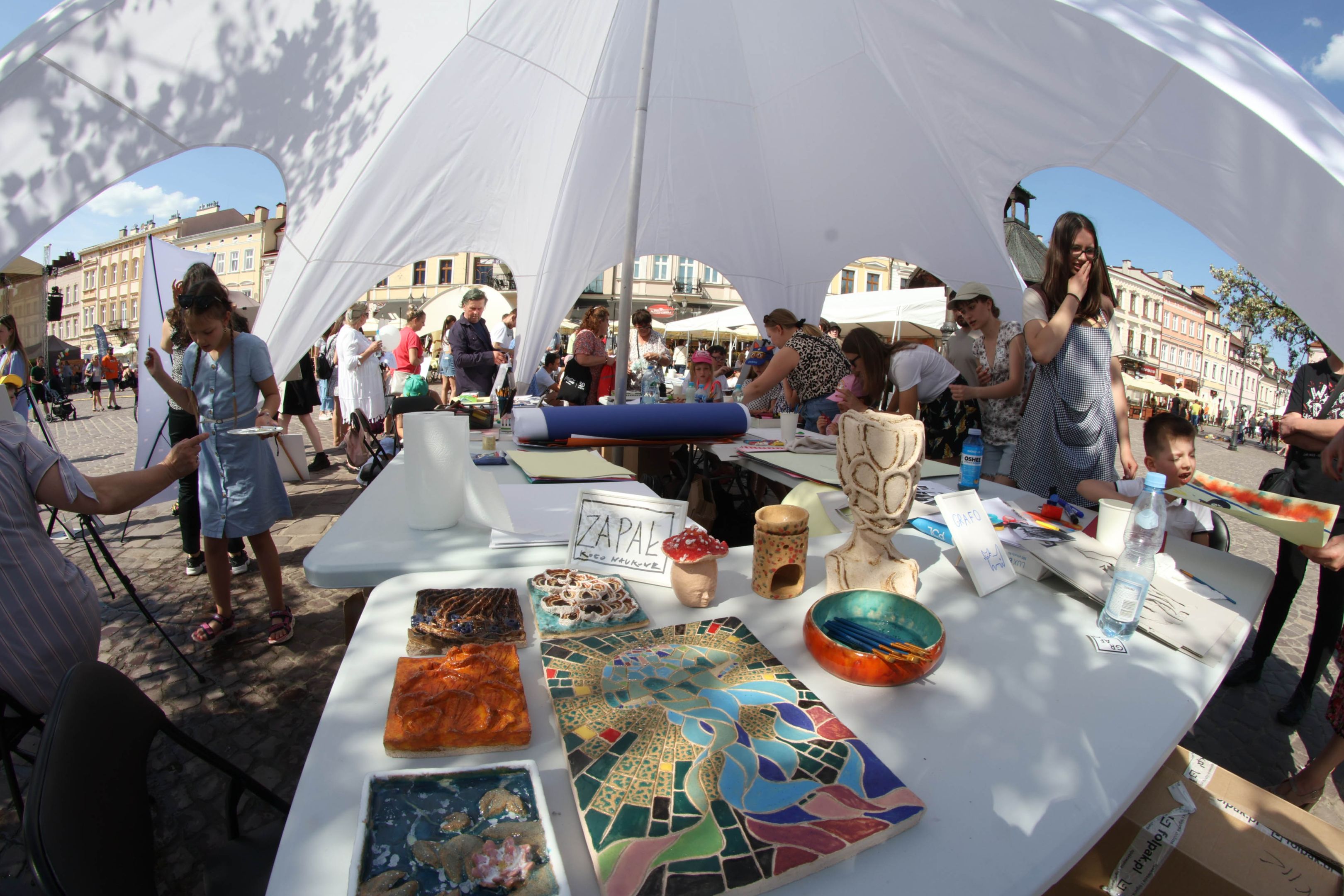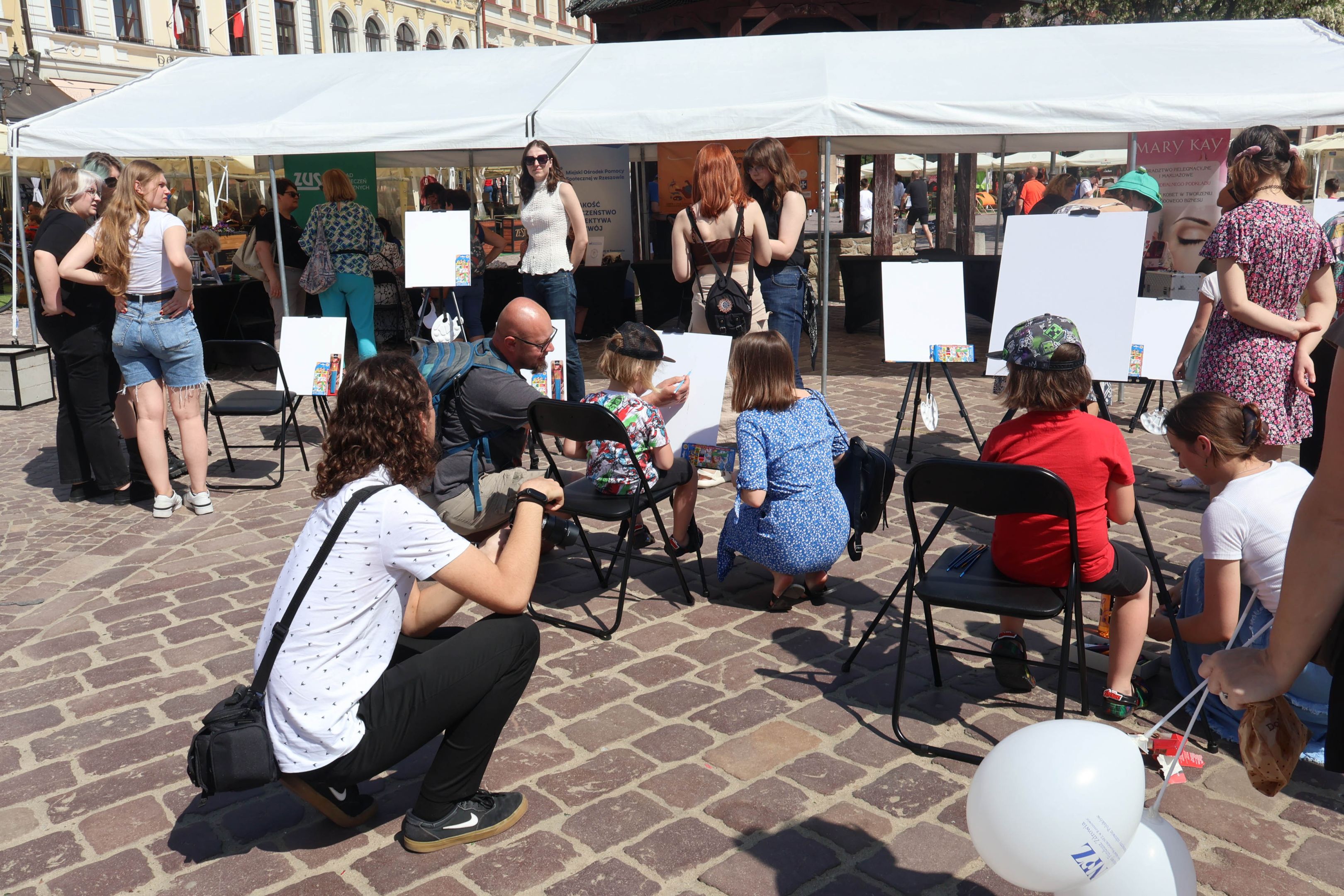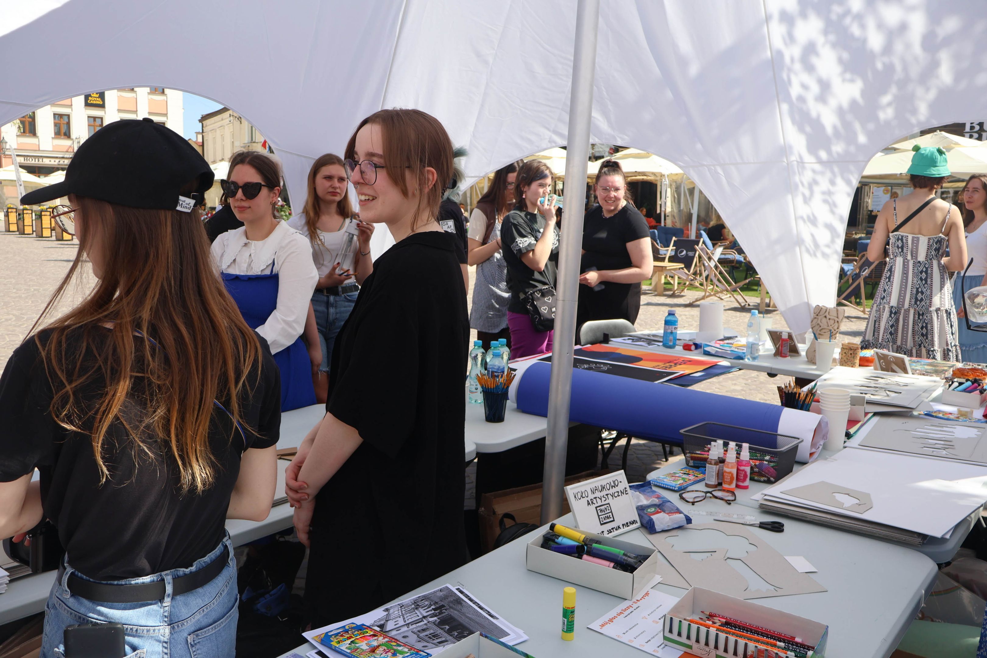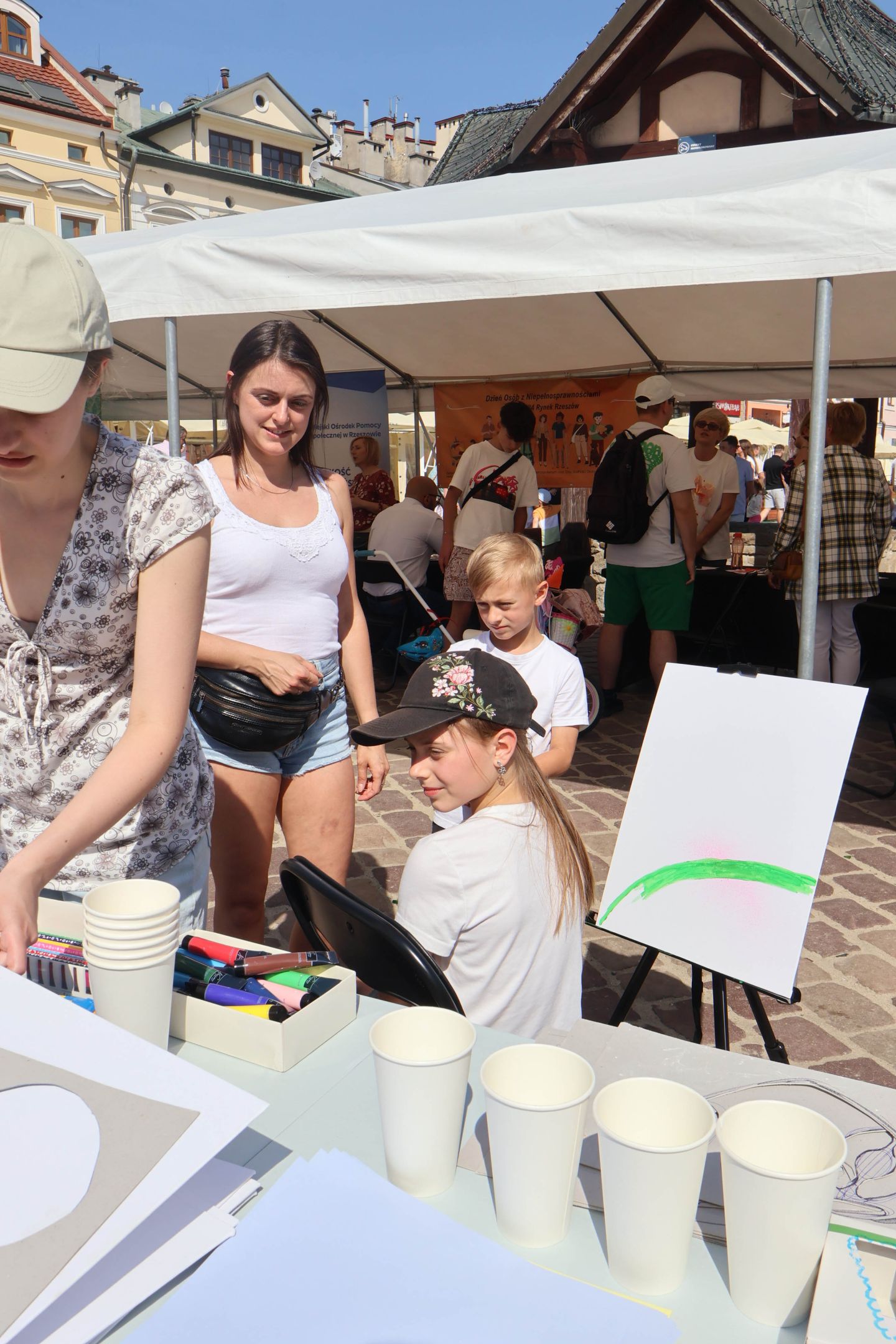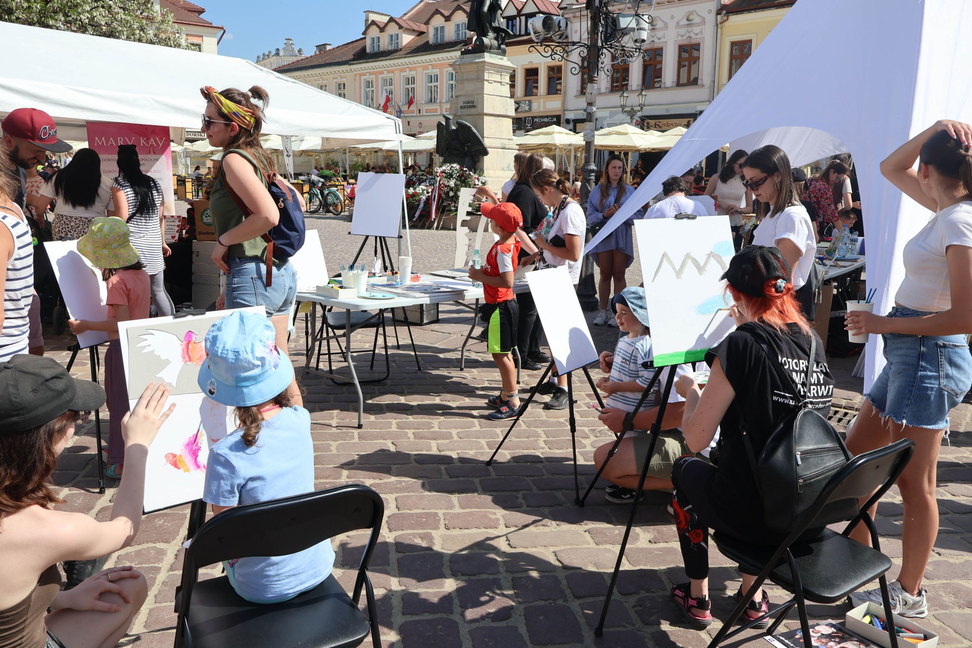 05.05.2024 to Europejski Dzień Walki z Dyskryminacją Osób Niepełnosprawnych oraz Dzień Godności Osób z Niepełnosprawnością Intelektualną. W 2024 roku na rzeszowskim Rynku Dzień Osób z Niepełnosprawnością organizowało Stowarzyszenie „For You” z Głogowa Młp., a Instytut Sztuk Pięknych został zaproszony do wzięcia czynnego udziału w tym wydarzeniu. W zaproponowanych przez nas warsztatach malarskich zarówno osoby z wyjątkowymi potrzebami, jak i mieszkańcy Rzeszowa poczuli się artystami. Cieszymy się, że tyle osób skorzystało z tego spotkania ze sztuką, poznania jej pozytywnego wpływu na zdrowie psychiczne i wyjątkowego oddziaływania na sferę emocjonalną. Warsztaty poprowadzili: kadra ISP – Anna Steliga (koordynatorka współpracy ze stowarzyszeniem „For You”), Karolina Niwelińska (opiekunka Zapału), Łukasz Kuśnierz; a także członkinie i członkowie Kół Naukowo-Artystycznych działających przy ISP tj. RAZEM, ZAPAŁ, GRAFO i LENS – Jurkiewicz Justyna, Głąb Kamil, Kochan Karolina, Nowak Natalia, Żuchowicz Gabriela, Szeliga Piotr, Środoń Justyna, Błażej Marcelina, Koziara Agnieszka, Winczowska Celina, Zdziebko Katarzyna, Sobuś Emilia, Gomułka Weronika, Furmanek Kinga, Krupa Antonina, Pivnova Polina, Lis Julia, Stopa Maksymilian, Inglot Anna, Nykiel Natalia, Możdżeń Paulina, Jachyra Sylwia, Drelich Weronika, Malinowska Weronika, Kiwior Weronika, Jarosz Daria, Szwed Żaneta, Kicińska Dominika, Cieszyńska Amelia, Kopala Anna, Sherstiukova Daria, Rachwalska Gabriela, Babińska Izabela, Miąsik Julia, Cichosz Marlena, Hanejko Monika, Dawid Wikiera, Julia Tryczyńska, Kornelia Sówka, Amelia Grzebyk, Michał Gorczyca, Joanna Żebracka, oraz Natalia Szlęk i Natalia Dranishcheva. Fotorelację z wydarzenia przygotowali: Weronika Drelich, Kornelia Sówka, Kamil Głąb, Michał Gorczyca, Dawid Wikiera i Łukasz Kuśnierz.