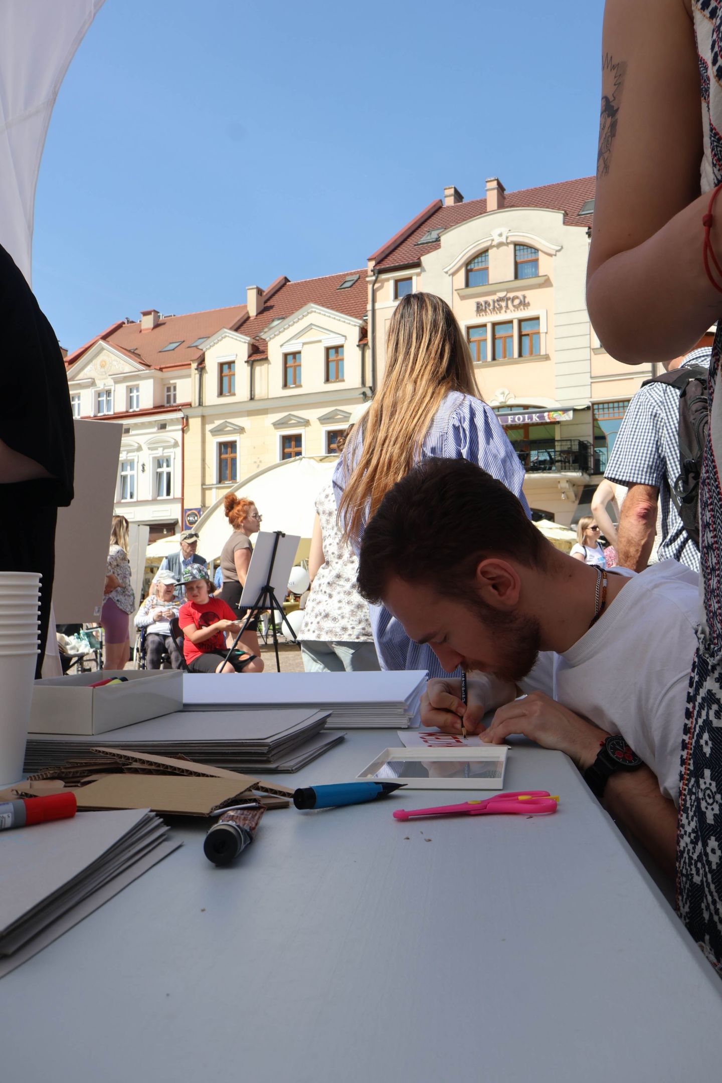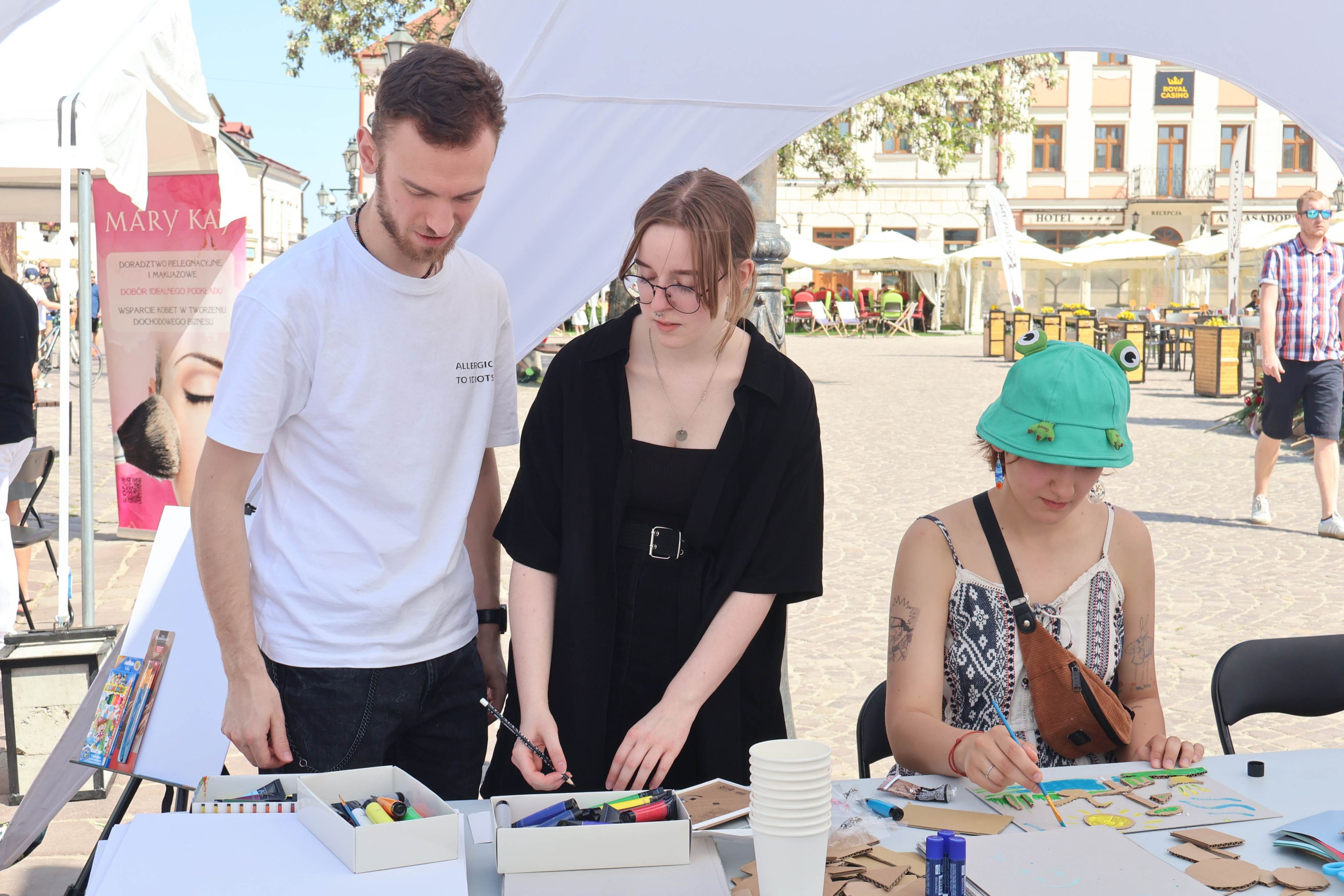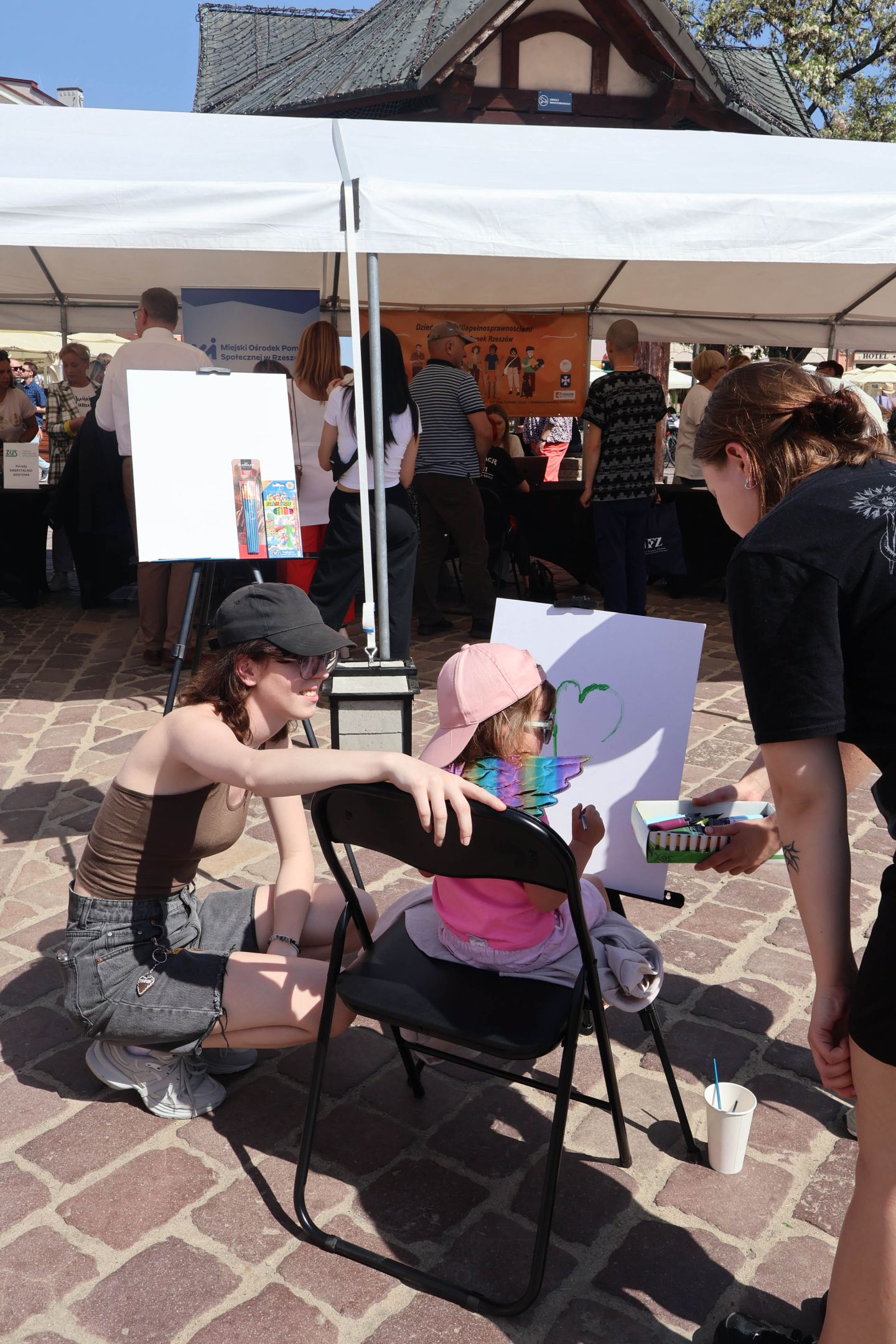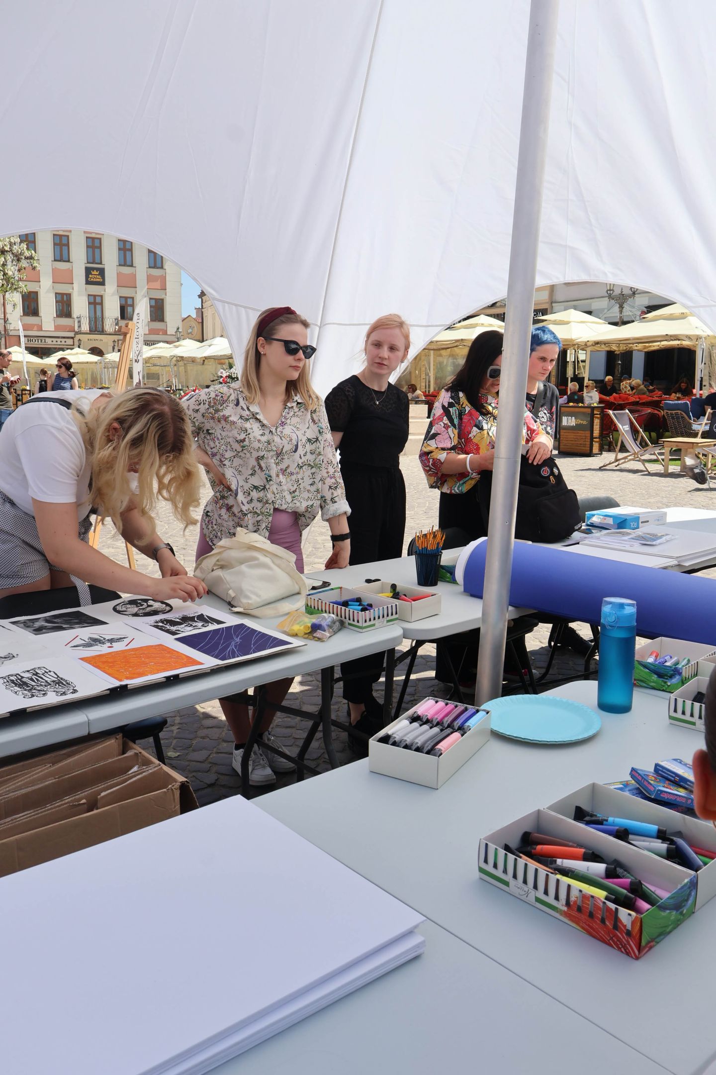05.05.2024 to Europejski Dzień Walki z Dyskryminacją Osób Niepełnosprawnych oraz Dzień Godności Osób z Niepełnosprawnością Intelektualną. W 2024 roku na rzeszowskim Rynku Dzień Osób z Niepełnosprawnością organizowało Stowarzyszenie „For You” z Głogowa Młp., a Instytut Sztuk Pięknych został zaproszony do wzięcia czynnego udziału w tym wydarzeniu. W zaproponowanych przez nas warsztatach malarskich zarówno osoby z wyjątkowymi potrzebami, jak i mieszkańcy Rzeszowa poczuli się artystami. Cieszymy się, że tyle osób skorzystało z tego spotkania ze sztuką, poznania jej pozytywnego wpływu na zdrowie psychiczne i wyjątkowego oddziaływania na sferę emocjonalną. Warsztaty poprowadzili: kadra ISP – Anna Steliga (koordynatorka współpracy ze stowarzyszeniem „For You”), Karolina Niwelińska (opiekunka Zapału), Łukasz Kuśnierz; a także członkinie i członkowie Kół Naukowo-Artystycznych działających przy ISP tj. RAZEM, ZAPAŁ, GRAFO i LENS – Jurkiewicz Justyna, Głąb Kamil, Kochan Karolina, Nowak Natalia, Żuchowicz Gabriela, Szeliga Piotr, Środoń Justyna, Błażej Marcelina, Koziara Agnieszka, Winczowska Celina, Zdziebko Katarzyna, Sobuś Emilia, Gomułka Weronika, Furmanek Kinga, Krupa Antonina, Pivnova Polina, Lis Julia, Stopa Maksymilian, Inglot Anna, Nykiel Natalia, Możdżeń Paulina, Jachyra Sylwia, Drelich Weronika, Malinowska Weronika, Kiwior Weronika, Jarosz Daria, Szwed Żaneta, Kicińska Dominika, Cieszyńska Amelia, Kopala Anna, Sherstiukova Daria, Rachwalska Gabriela, Babińska Izabela, Miąsik Julia, Cichosz Marlena, Hanejko Monika, Dawid Wikiera, Julia Tryczyńska, Kornelia Sówka, Amelia Grzebyk, Michał Gorczyca, Joanna Żebracka, oraz Natalia Szlęk i Natalia Dranishcheva. Fotorelację z wydarzenia przygotowali: Weronika Drelich, Kornelia Sówka, Kamil Głąb, Michał Gorczyca, Dawid Wikiera i Łukasz Kuśnierz.