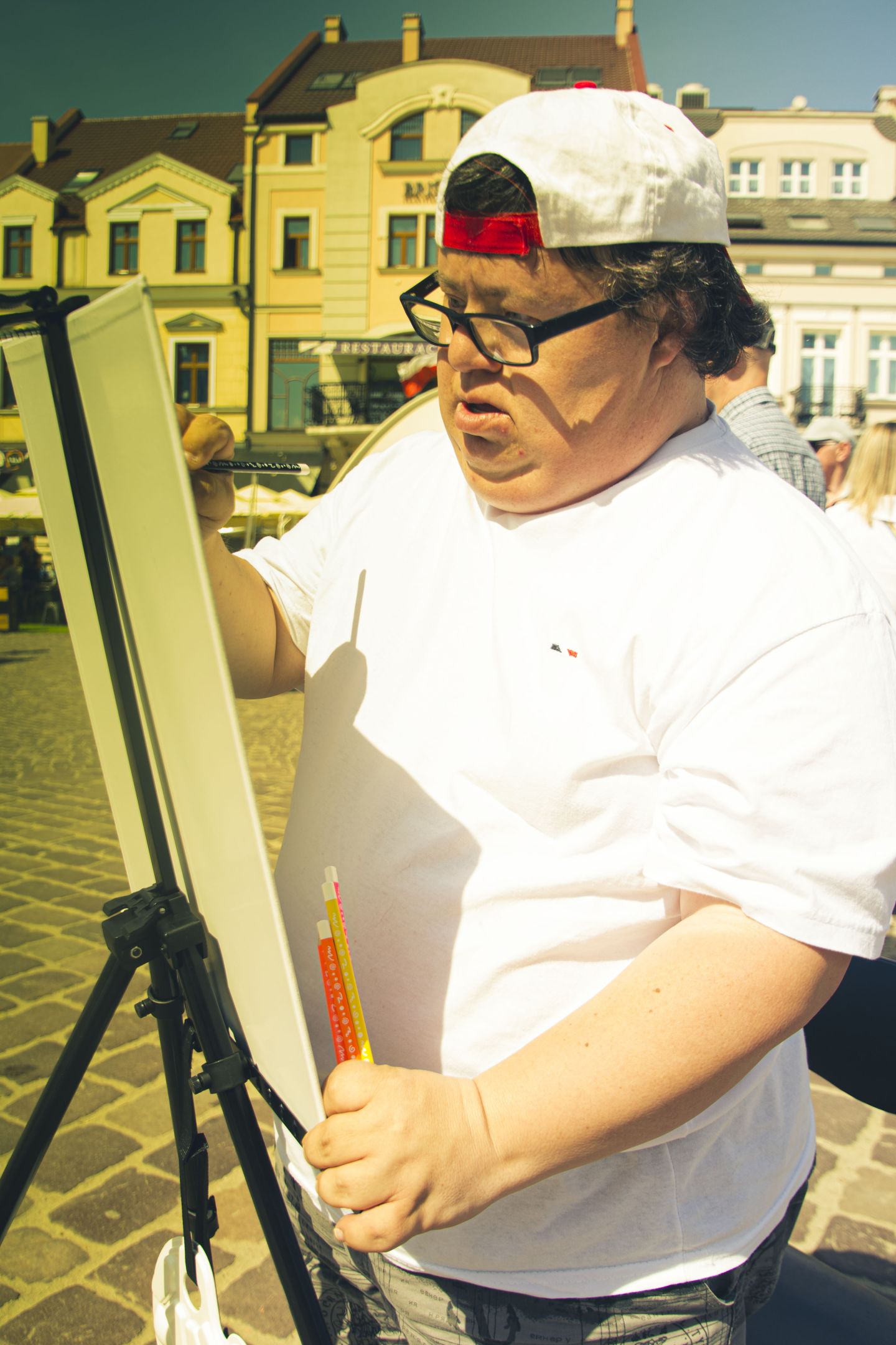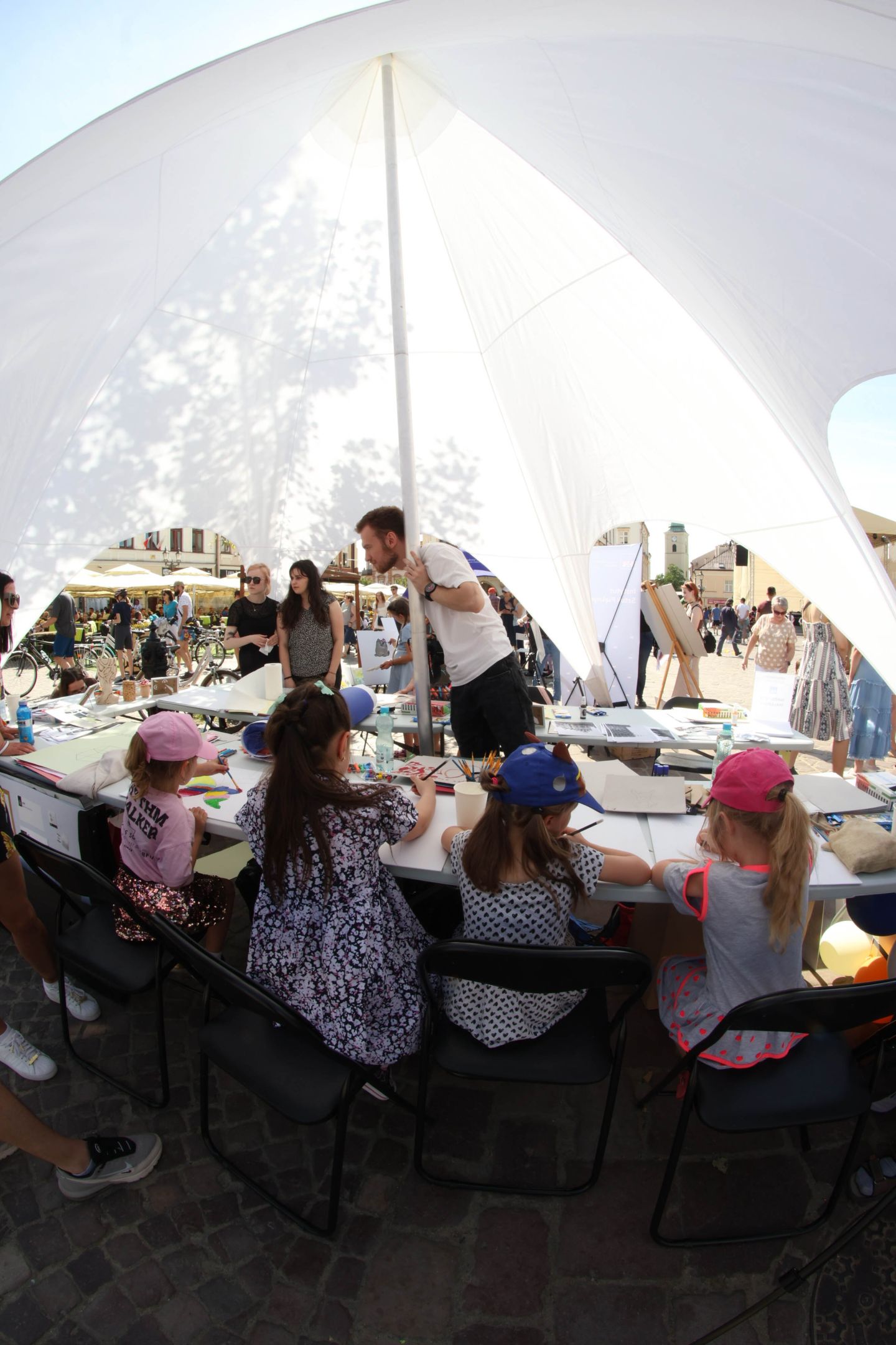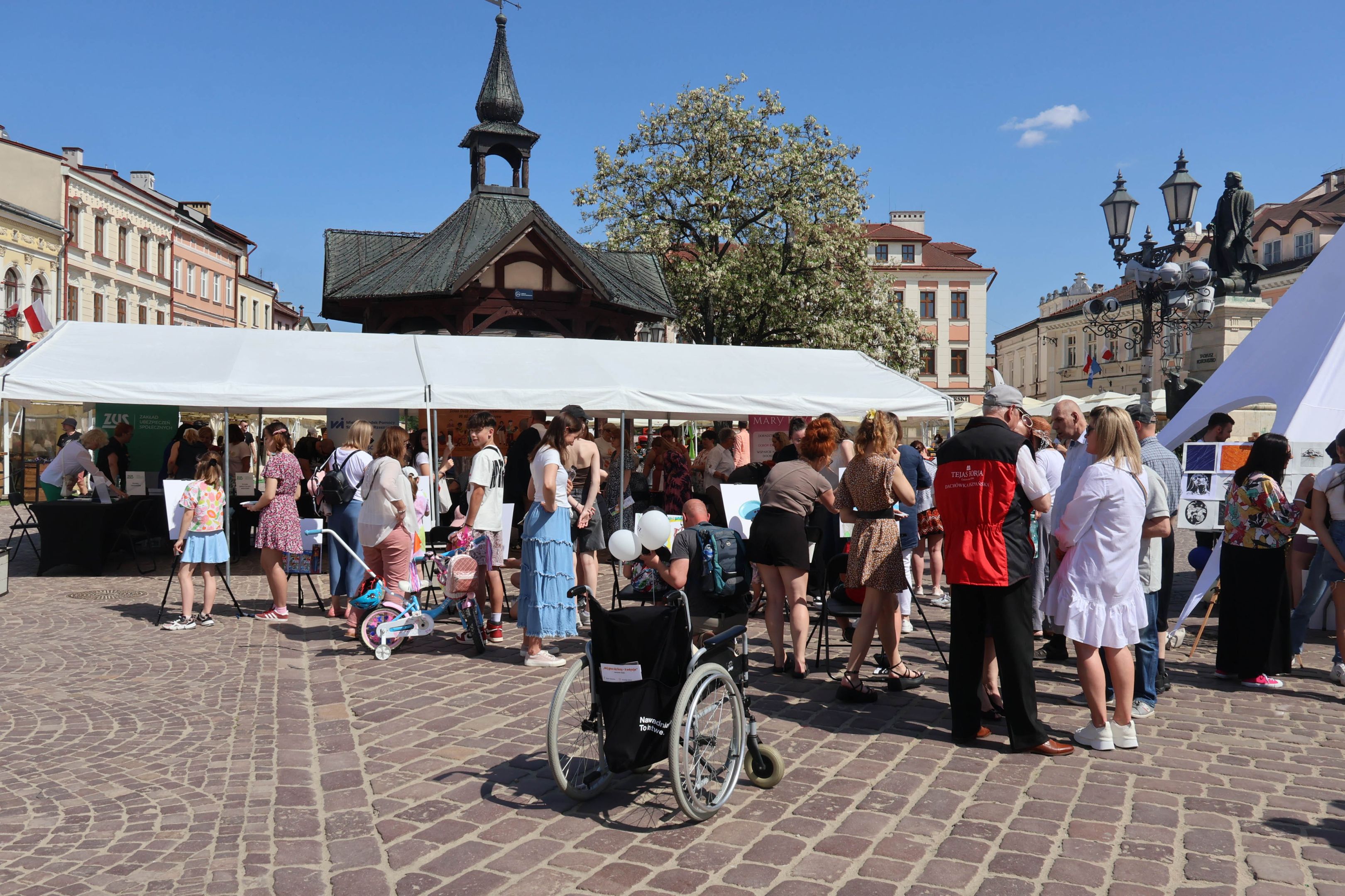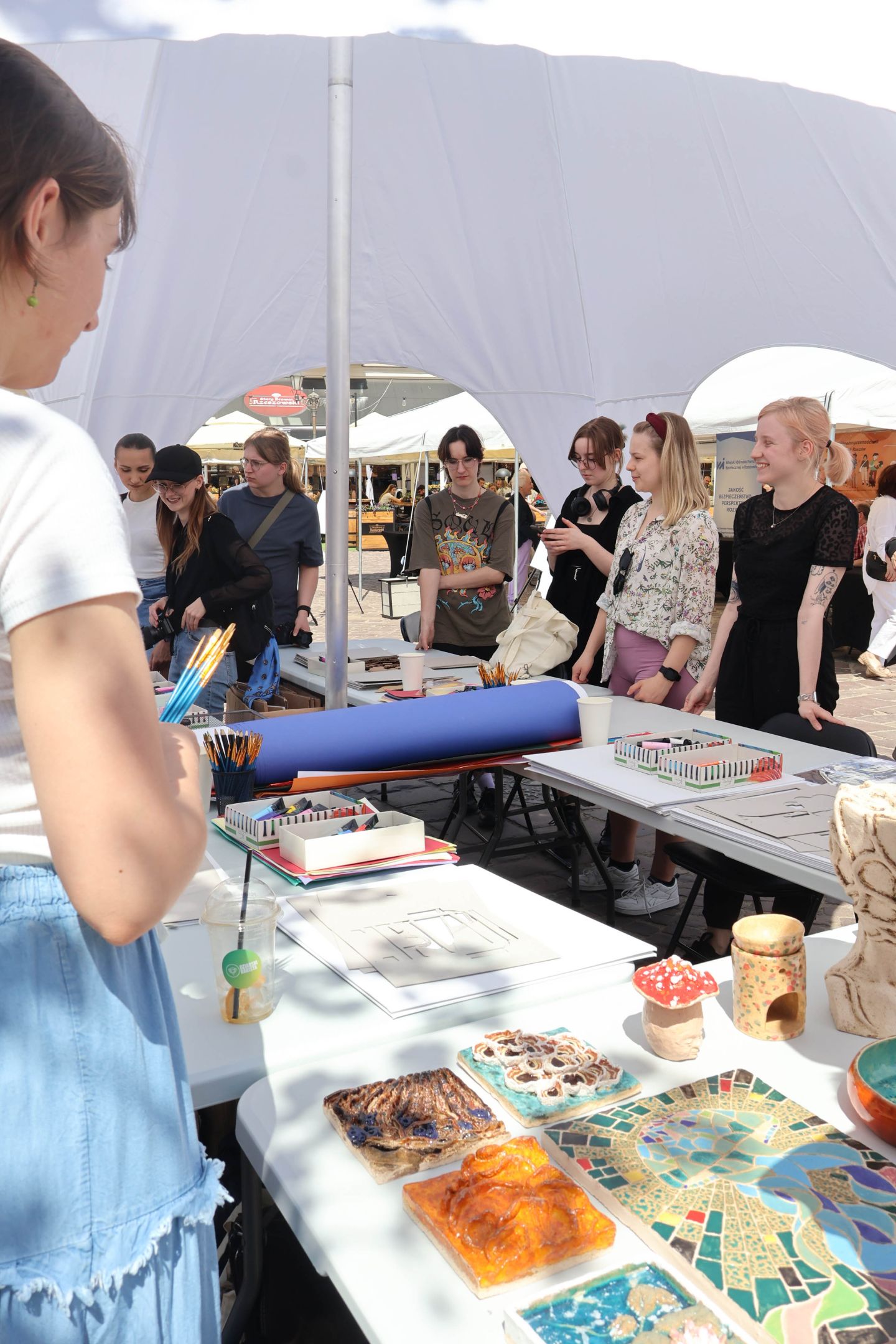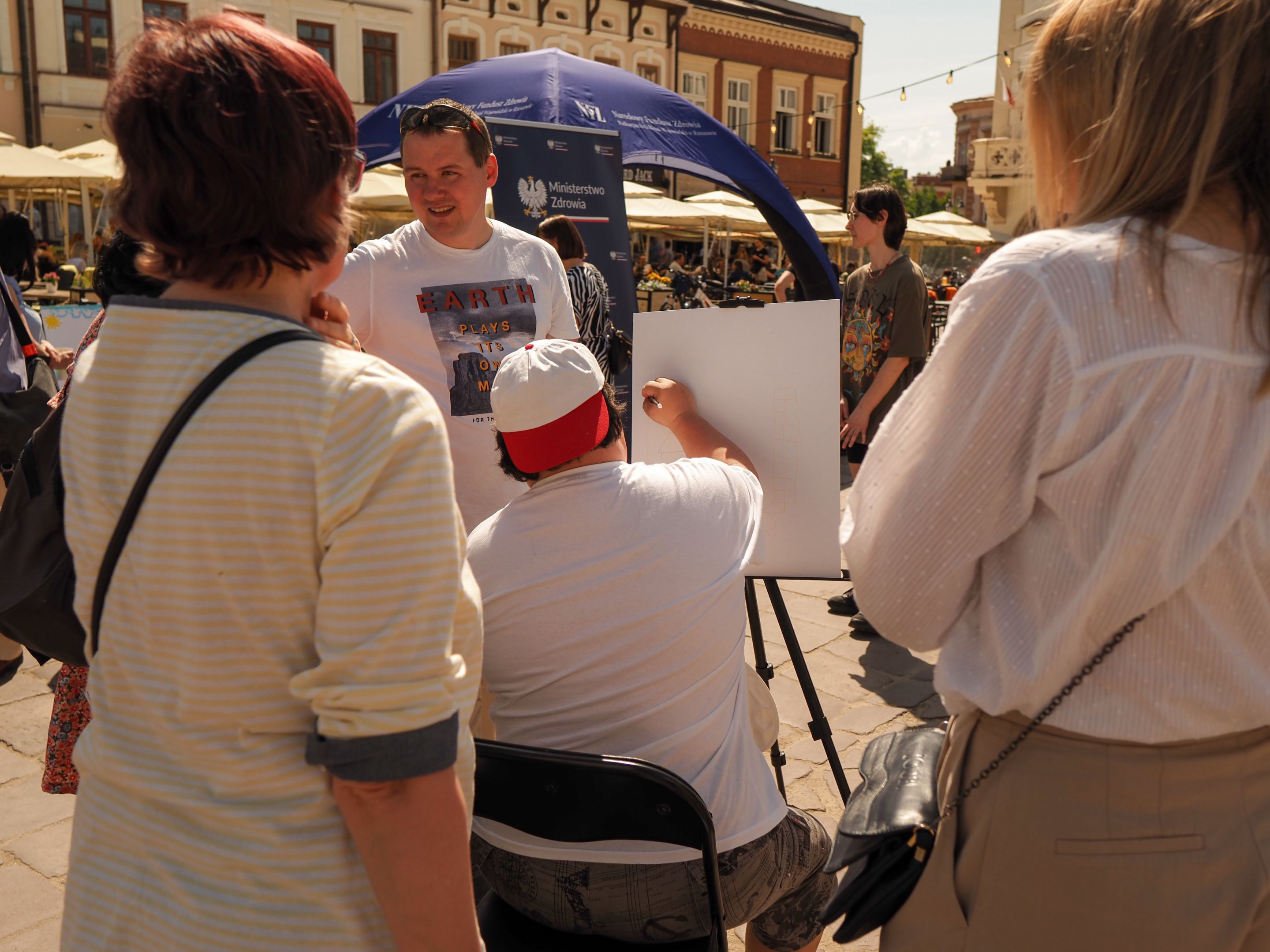 05.05.2024 to Europejski Dzień Walki z Dyskryminacją Osób Niepełnosprawnych oraz Dzień Godności Osób z Niepełnosprawnością Intelektualną. W 2024 roku na rzeszowskim Rynku Dzień Osób z Niepełnosprawnością organizowało Stowarzyszenie „For You” z Głogowa Młp., a Instytut Sztuk Pięknych został zaproszony do wzięcia czynnego udziału w tym wydarzeniu. W zaproponowanych przez nas warsztatach malarskich zarówno osoby z wyjątkowymi potrzebami, jak i mieszkańcy Rzeszowa poczuli się artystami. Cieszymy się, że tyle osób skorzystało z tego spotkania ze sztuką, poznania jej pozytywnego wpływu na zdrowie psychiczne i wyjątkowego oddziaływania na sferę emocjonalną. Warsztaty poprowadzili: kadra ISP – Anna Steliga (koordynatorka współpracy ze stowarzyszeniem „For You”), Karolina Niwelińska (opiekunka Zapału), Łukasz Kuśnierz; a także członkinie i członkowie Kół Naukowo-Artystycznych działających przy ISP tj. RAZEM, ZAPAŁ, GRAFO i LENS – Jurkiewicz Justyna, Głąb Kamil, Kochan Karolina, Nowak Natalia, Żuchowicz Gabriela, Szeliga Piotr, Środoń Justyna, Błażej Marcelina, Koziara Agnieszka, Winczowska Celina, Zdziebko Katarzyna, Sobuś Emilia, Gomułka Weronika, Furmanek Kinga, Krupa Antonina, Pivnova Polina, Lis Julia, Stopa Maksymilian, Inglot Anna, Nykiel Natalia, Możdżeń Paulina, Jachyra Sylwia, Drelich Weronika, Malinowska Weronika, Kiwior Weronika, Jarosz Daria, Szwed Żaneta, Kicińska Dominika, Cieszyńska Amelia, Kopala Anna, Sherstiukova Daria, Rachwalska Gabriela, Babińska Izabela, Miąsik Julia, Cichosz Marlena, Hanejko Monika, Dawid Wikiera, Julia Tryczyńska, Kornelia Sówka, Amelia Grzebyk, Michał Gorczyca, Joanna Żebracka, oraz Natalia Szlęk i Natalia Dranishcheva. Fotorelację z wydarzenia przygotowali: Weronika Drelich, Kornelia Sówka, Kamil Głąb, Michał Gorczyca, Dawid Wikiera i Łukasz Kuśnierz.