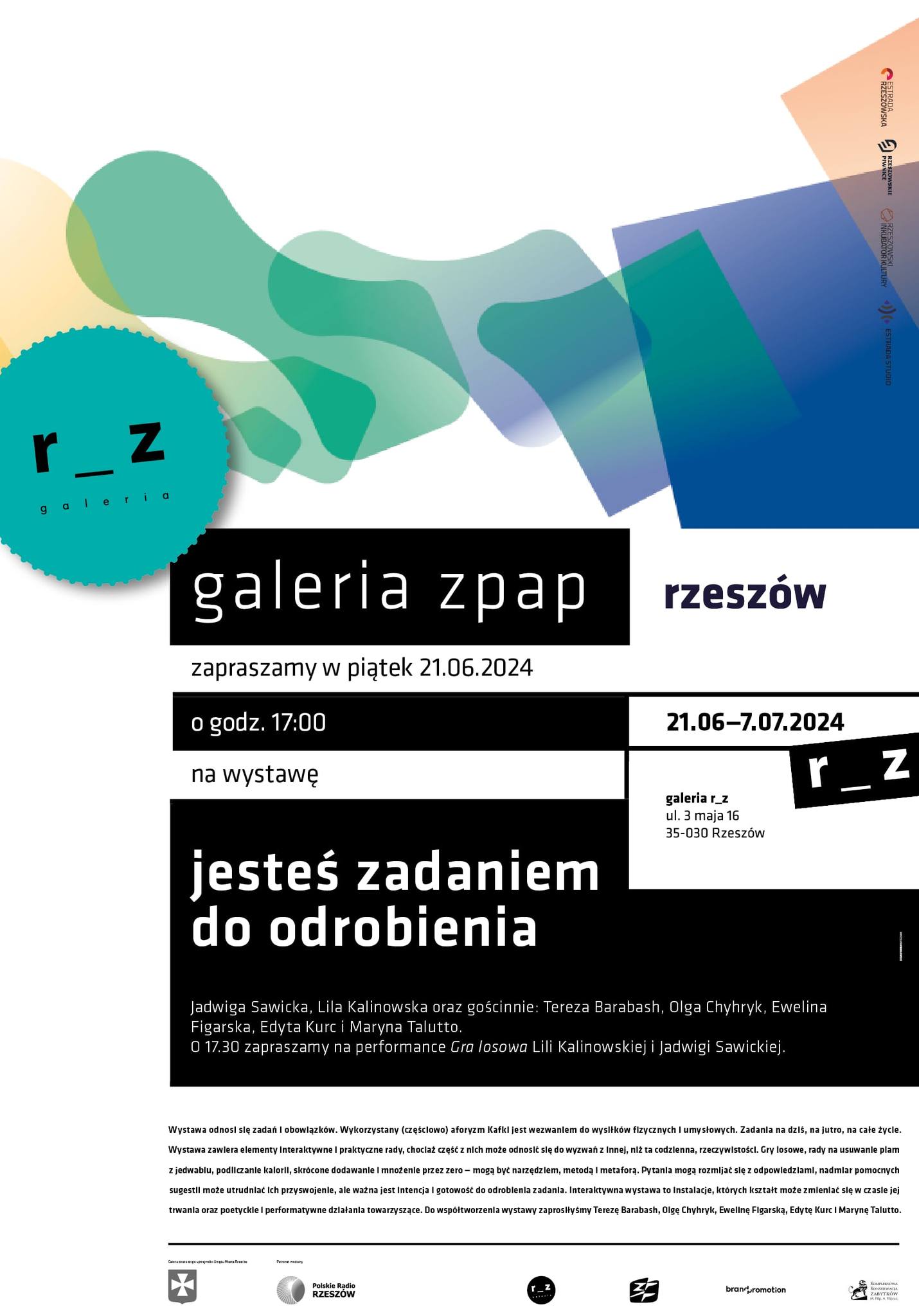 „Jesteś zadaniem do odrobienia” to interaktywna wystawa, której kształt może się zmienić w czasie jej trwania, prezentująca prace dwóch współczesnych artystek – Jadwigi Sawickiej i Liliany Kalinowskiej oraz gościnnie Tereza Barabash, Olga Chyhryk, Ewelina Figarska, Edyta Kurc i Maryna Talutto.