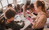 GR 2 - podczas zajęć na Wydziale Sztuk Pięknych w Pracowni Druku Płaskiego i Litografii zrealizowała prace na temat „Faktury z natury - grafika w technice auto-offsetu”. Podczas warsztatów prowadzonych przez członków Koła Naukowo-Artystycznego E/A oraz wykładowczyń: dr Kamila Bednarska, mgr Katarzyna Tereszkiewicz, mgr Julia Rut uczestnicy dowiedzieli się, jak działa matryca w technice druku płaskiego oraz wykonali własne kompozycje w oparciu o wylosowane faktury roślinne. W wyniku pracy stworzyli autorską odbitkę graficzną, którą wraz z matrycą zachowali jako dowód swojej twórczości.