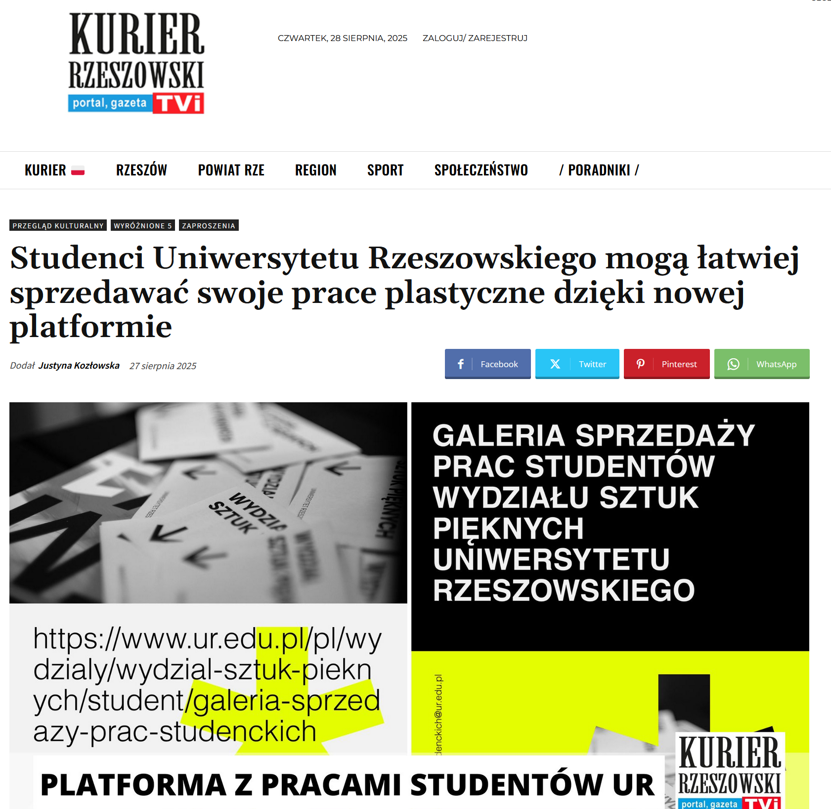 Wydział Sztuki UR w Kurierze Rzeszowskim