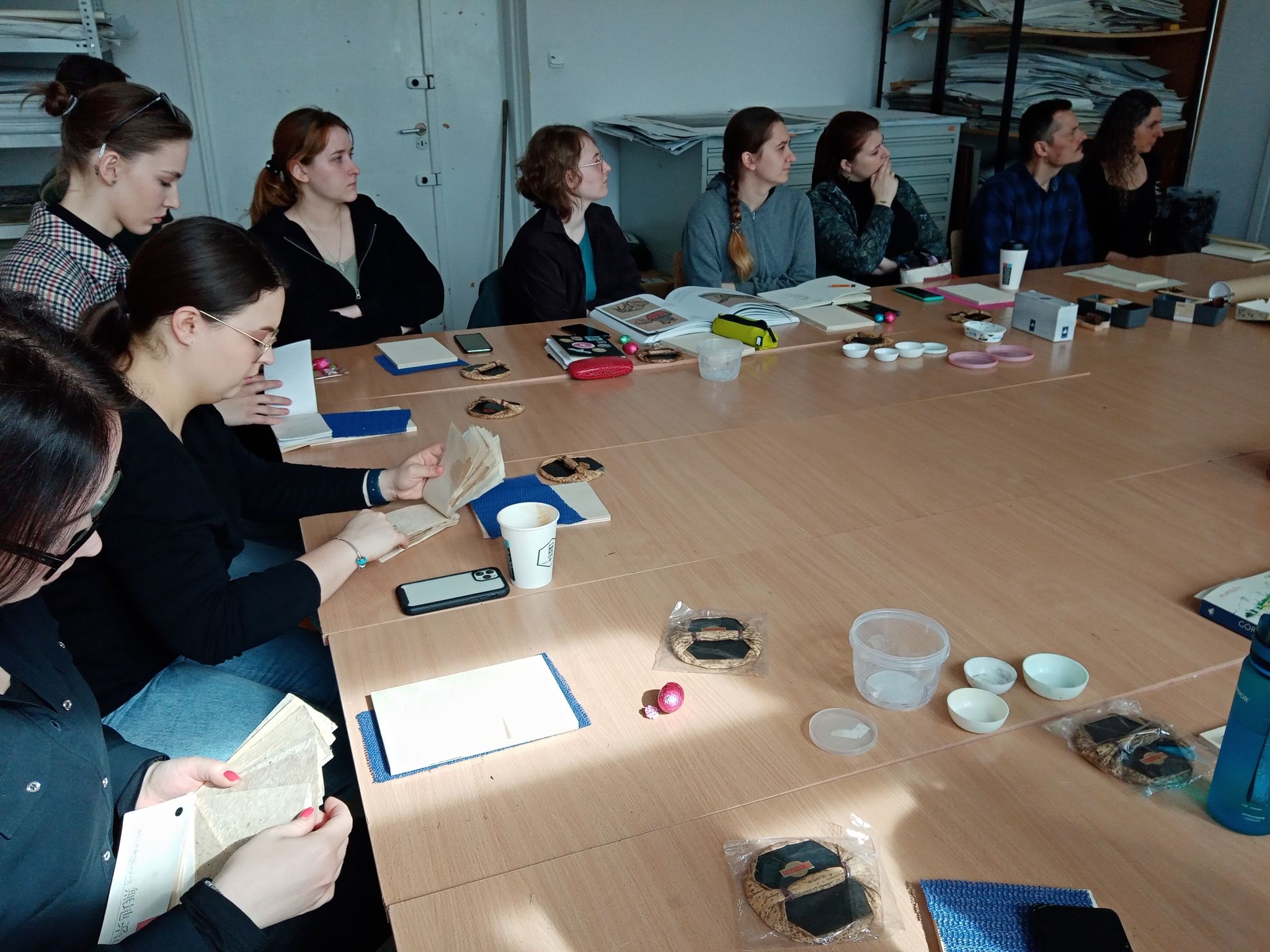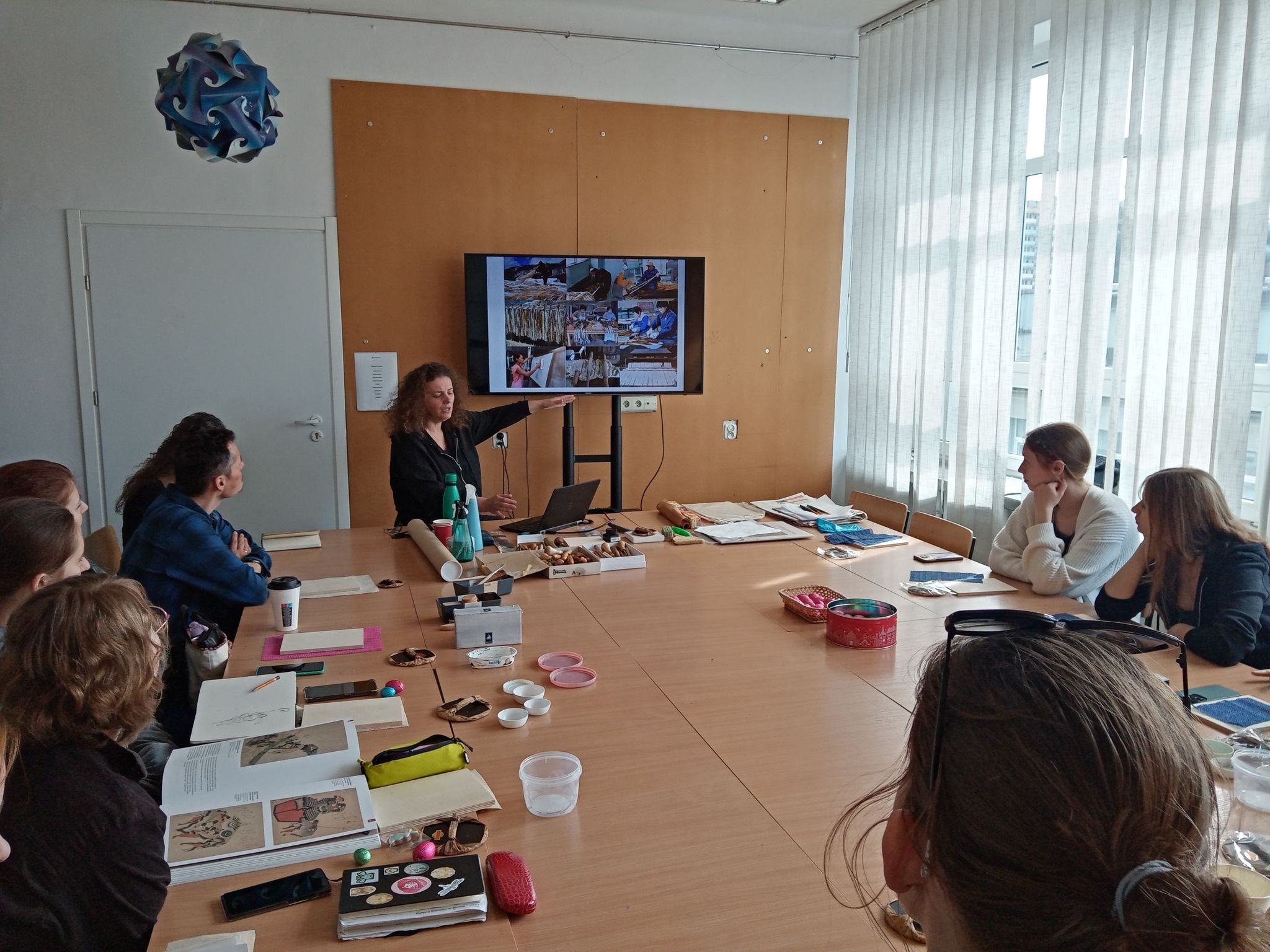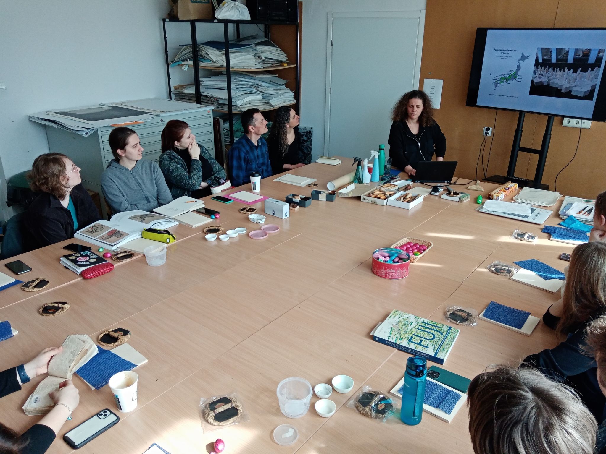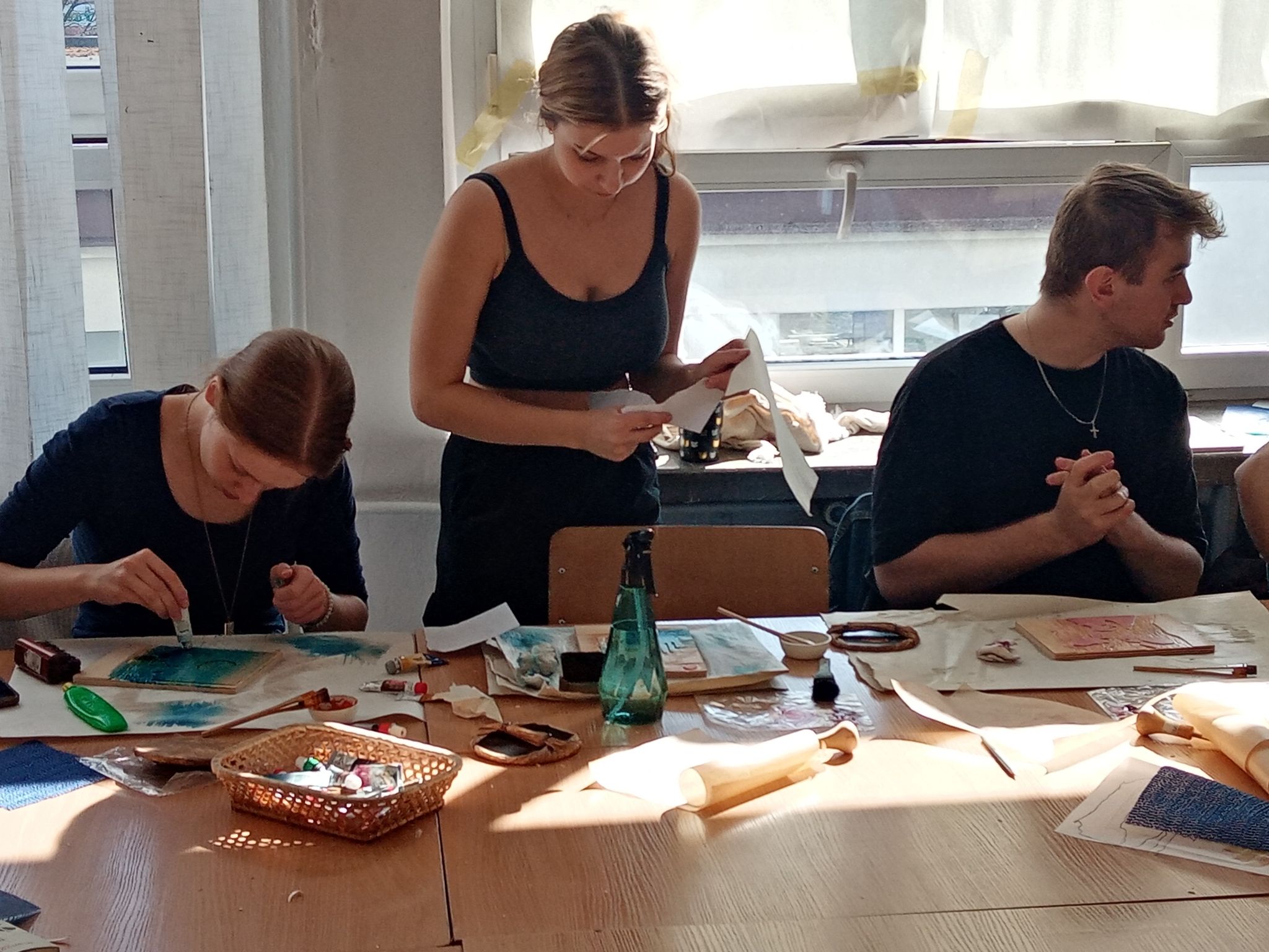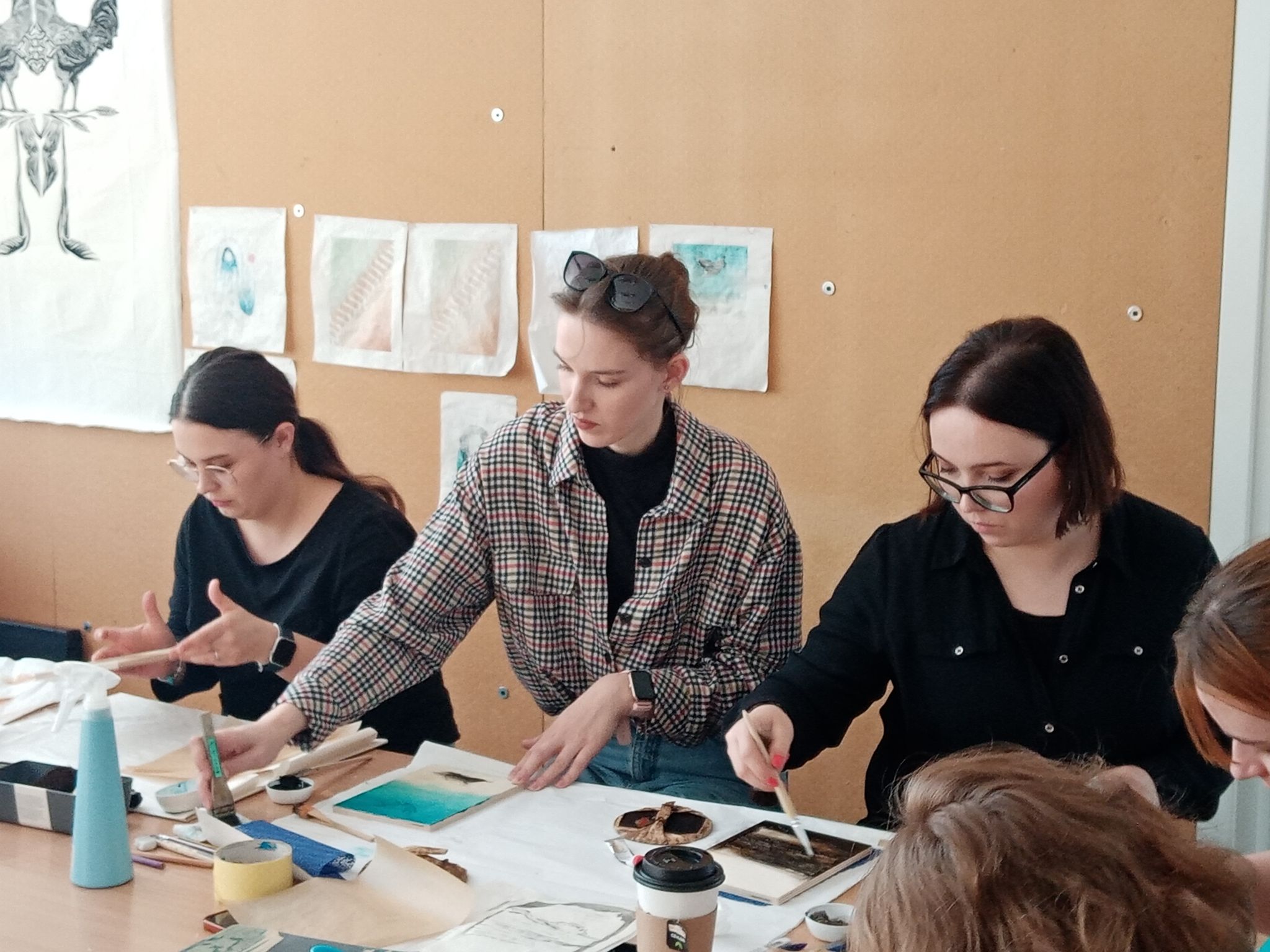 W dniu 27 marca 2024 roku gościliśmy panią dr Martę Bożyk z Wydziału Grafiki Akademii Sztuk Pięknych w Krakowie, która przyjechała do Instytutu Sztuk Pięknych UR, aby w pracowni grafiki warsztatowej druku wypukłego poprowadzić warsztaty graficzne w tradycyjnej japońskiej technice drzeworytu – mokuhanga. Spotkanie rozpoczęło się od wykładu o historii papieru japońskiego washi przez mistrzów ukiyo-e, narzędziach tradycyjnych do drzeworytu, współczesnych artystów pracujących w tej technice. Następnie nasi studenci uczestniczyli w warsztatach graficznych podczas których wykonywali swoje pierwsze kolorowe drzeworyty.