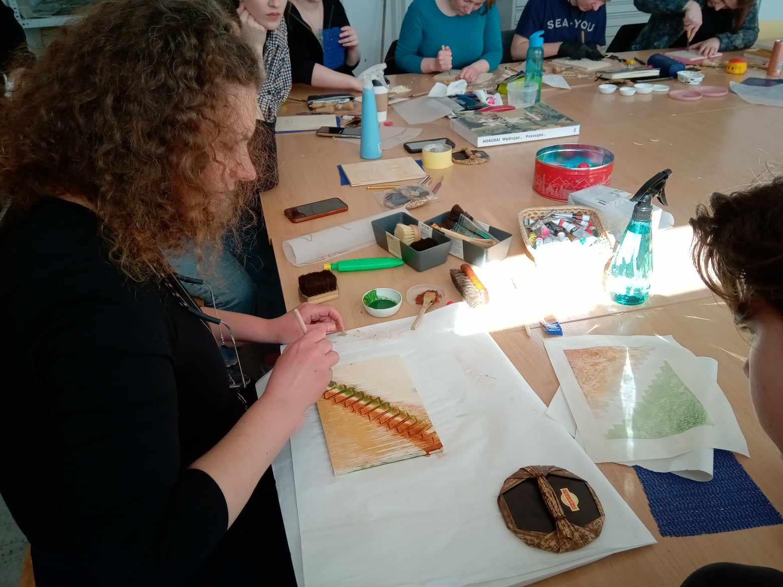 Wykład i warsztaty drzeworytu japońskiego, prowadzone przez panią dr Martę Bożyk z ASP w Krakowie w Pracowni Grafiki Warsztatowej Druku Wypukłego ISP UR