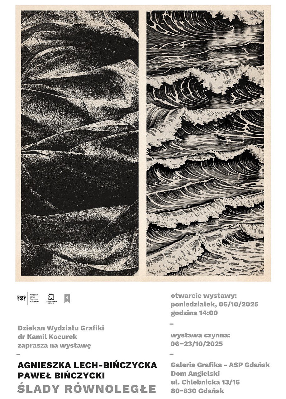 W dniach 6–23 października 2025 roku w Galerii Grafika Akademii Sztuk Pięknych w Gdańsku odbywa się wystawa indywidualna zatytułowana „Ślady równoległe”, prezentująca prace Agnieszki Lech-Bińczyckiej i Pawła Bińczyckiego. Wernisaż wystawy odbył się 6 października 2025 roku. Ekspozycja została przygotowana w przestrzeni galerii mieszczącej się w zabytkowym Domu Angielskim. Aranżacja wystawy podkreślała dialog pomiędzy dwoma porządkami graficznymi – wklęsłym i wypukłym – oraz różnorodność technik, jakimi posługują się autorzy. Wydarzenie zostało zrealizowane w ramach programu wystawienniczego Galerii Grafika ASP w Gdańsku, prezentującego aktualne zjawiska i postawy w obszarze grafiki artystycznej.