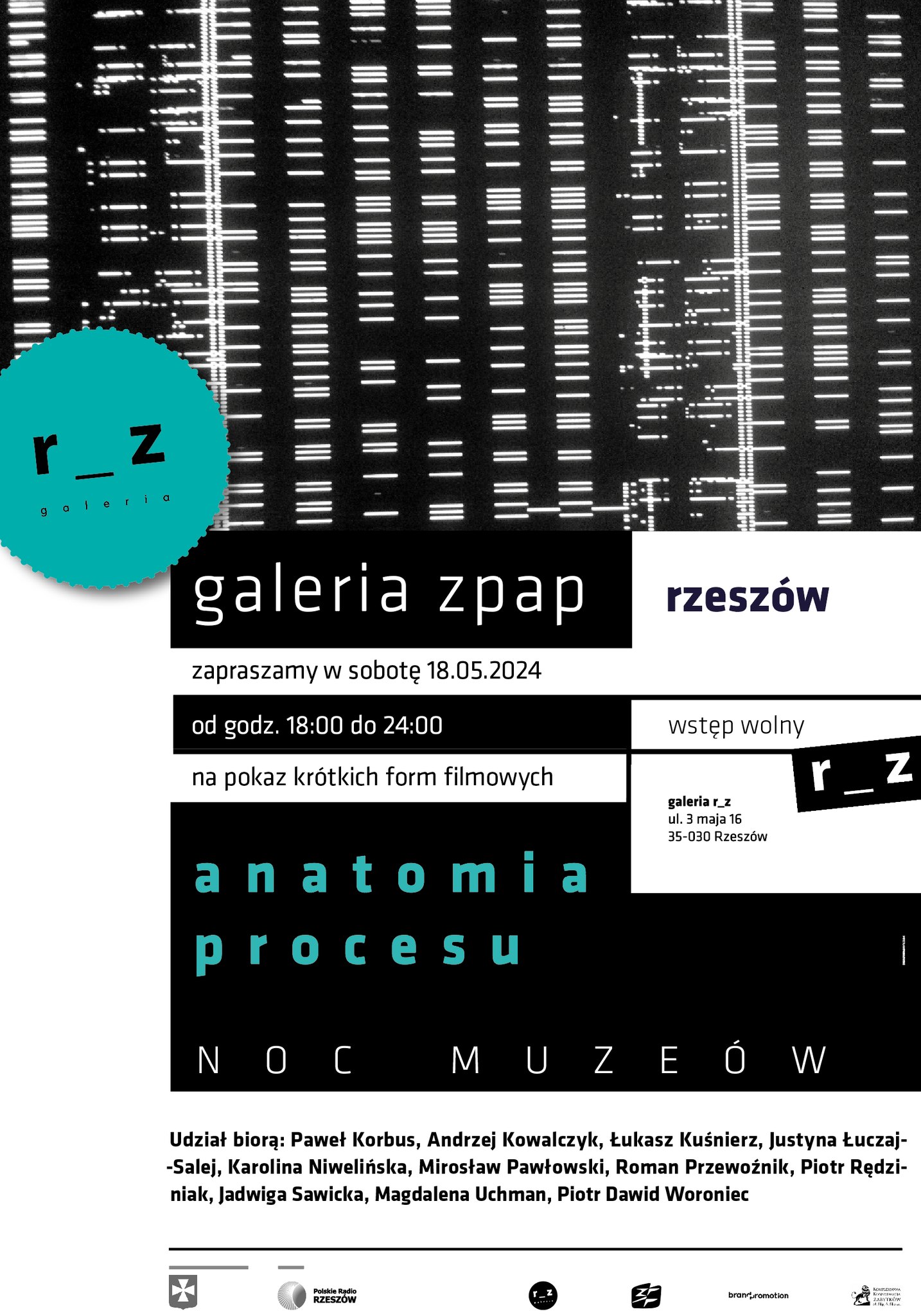 W dniu 18 maja 2024, od godz. 18.00 do 24.00 zapraszamy do Galeria r_z, galerii ZPAP O/Rzeszów na otwarcie wystawy grafiki pt. „Anatomia procesu”. Organizator: Magdalena Uchman, Piotr Dawid Woroniec, kurator: Łukasz Kuśnierz.
