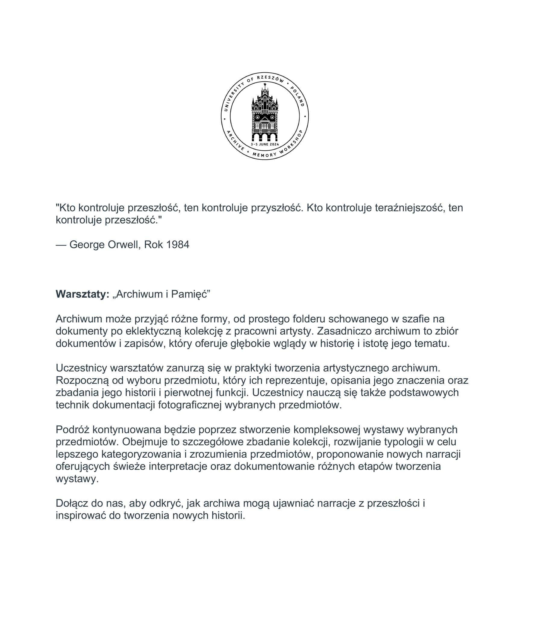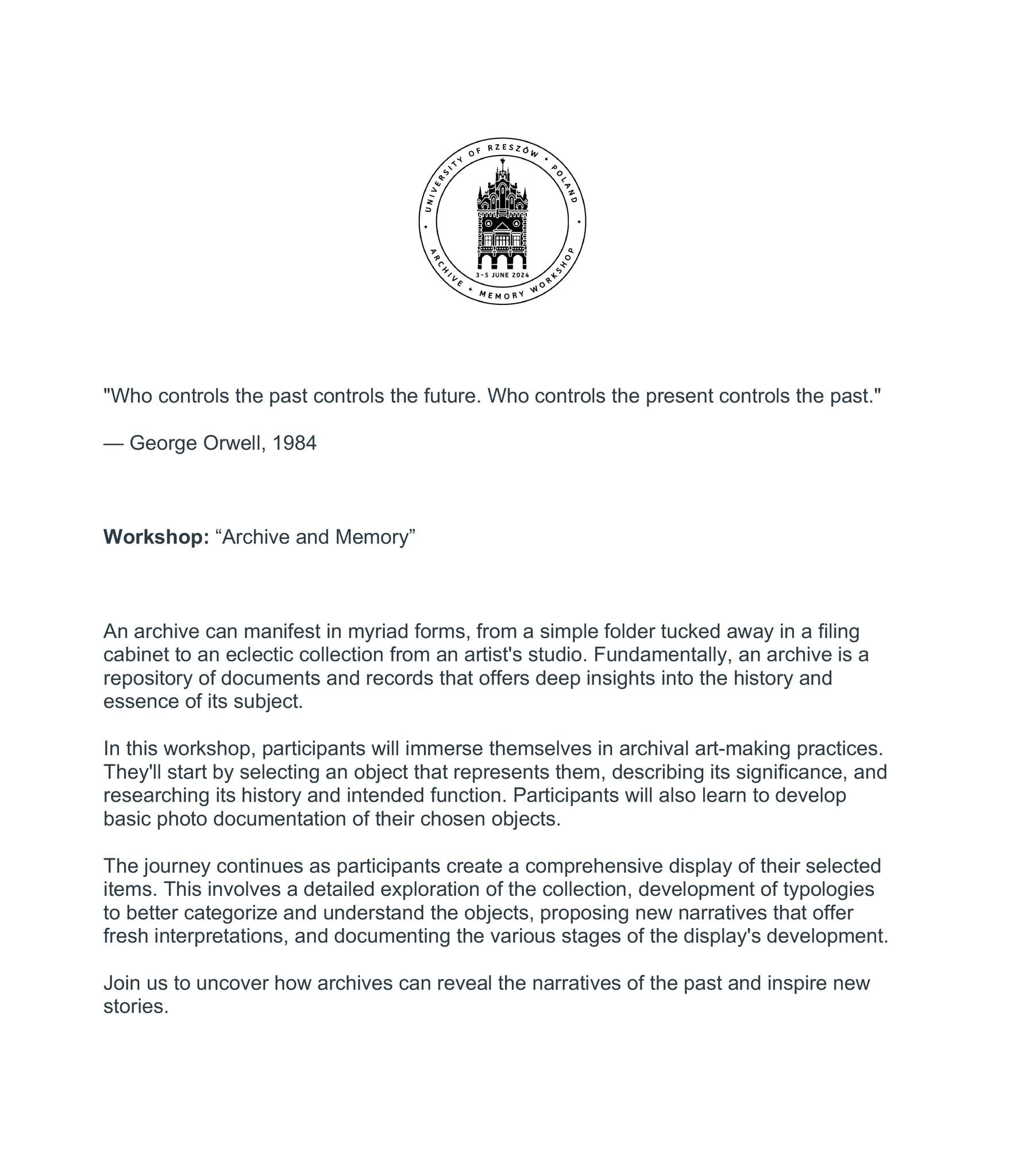 W dniach 03-04.06.2024 r. w Instytucie Sztuk Pięknych UR odbędą się warsztaty pt. "Archiwum i Pamięć" dla studentów, doktorantów i pracowników ISP, prowadzone przez profesora Jacka Kolasińskiego z Floryda International University.