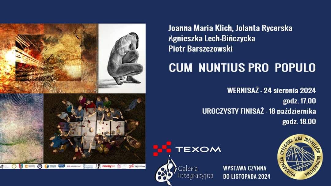 Zapraszamy na wernisaż zbiorowej wystawy pt. „CUM NUNTIUS PRO POPULO” w Galerii Integracyjnej Podkarpackiej Okręgowej Izby Inżynierów Budownictwa w Rzeszowie, na której swoje prace prezentuje Prof. UR Agnieszki Lech-Bińczycka