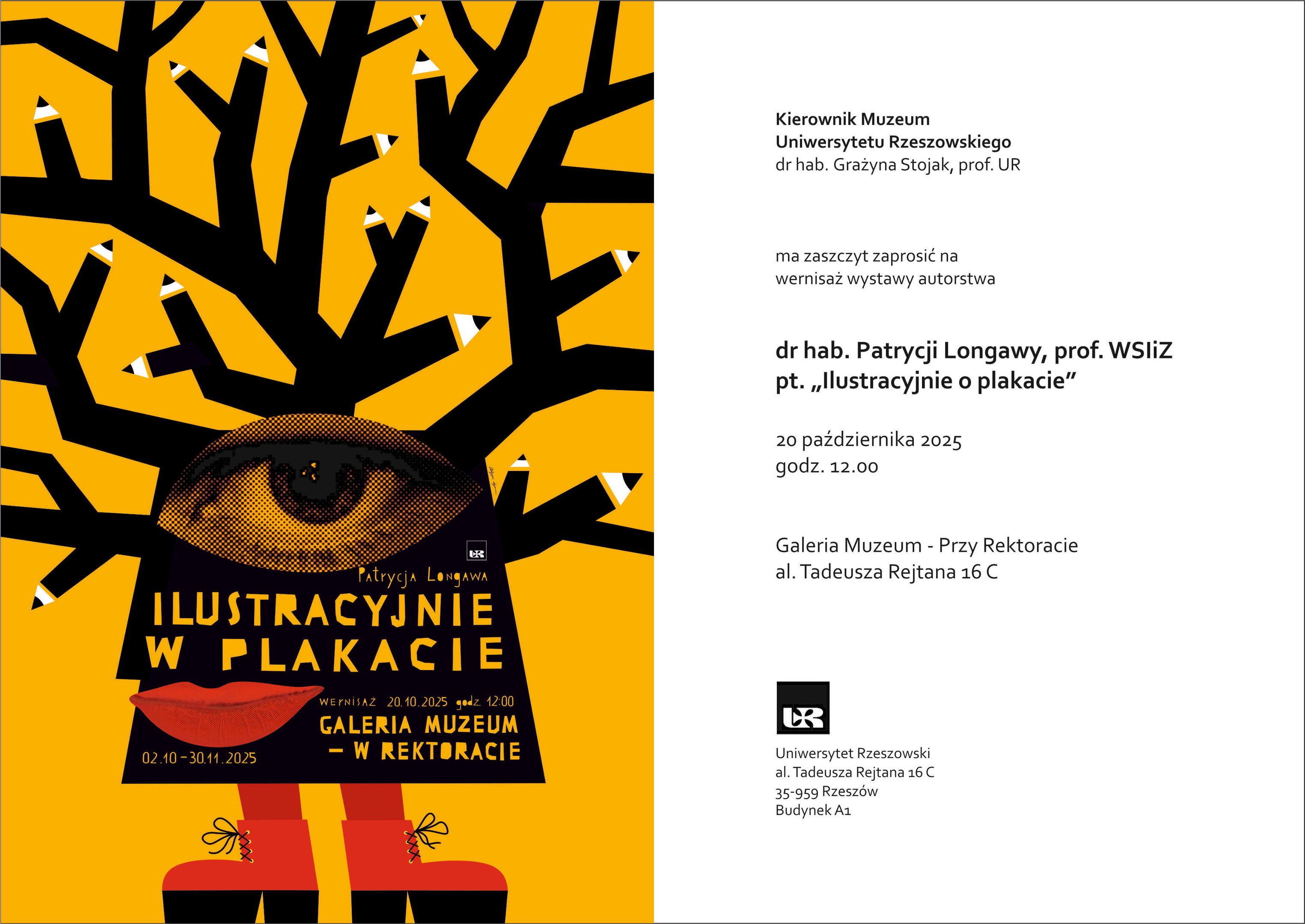 Zaproszenie na wernisaż wystawy autorstwa dr hab. Patrycji Longawy pt. "Ilustracyjnie o plakacie"