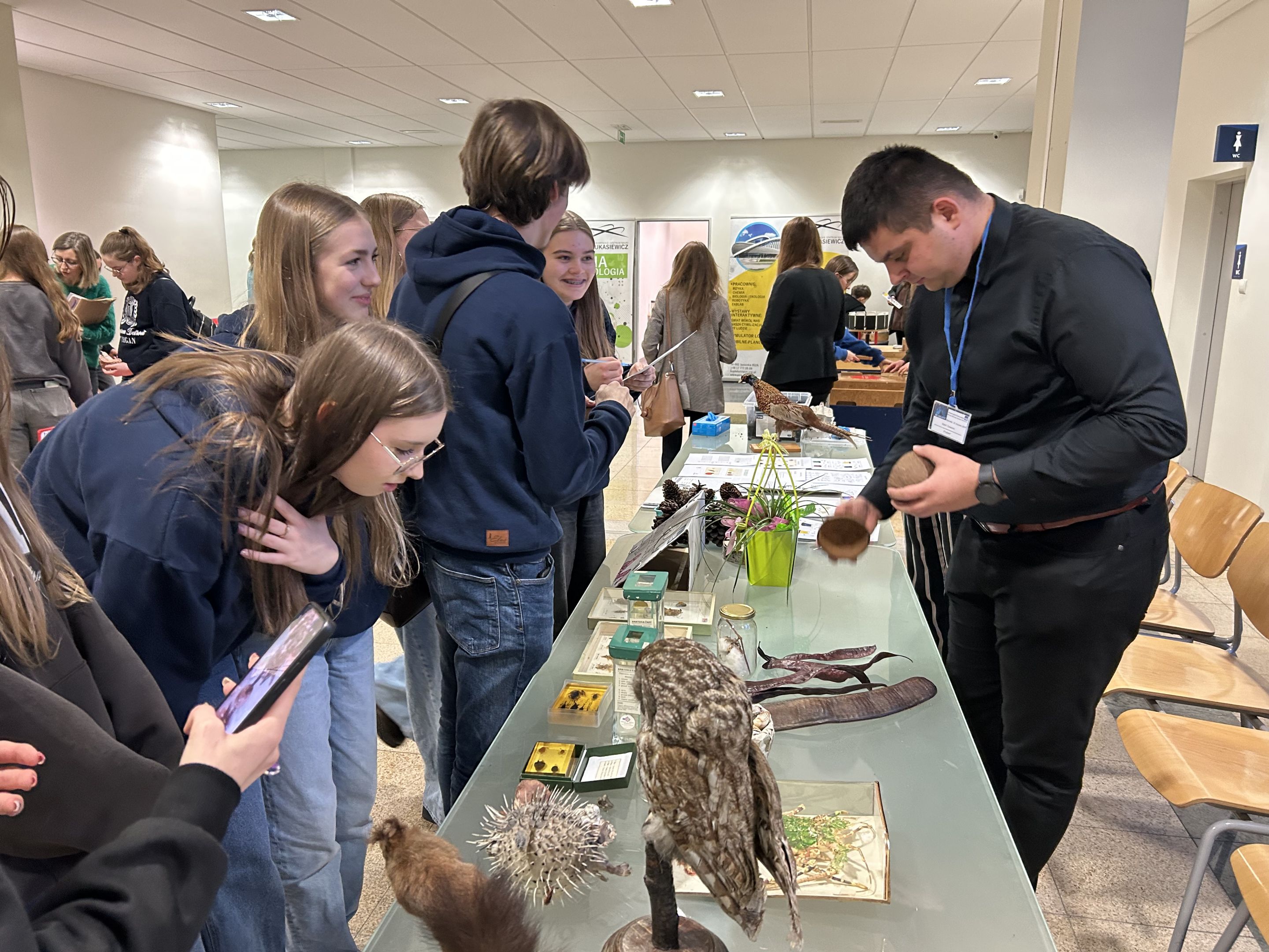 10 stycznia 2025 r. na Uniwersytecie Rzeszowskim, po raz kolejny odbyła się Noc Biologów pod hasłem „Biologia zmian klimatu”. Wydarzenie skierowane do dzieci, młodzieży, a także dorosłych - wszystkich zainteresowanych poruszaną problematyką. Jak co roku, Studenckie Koło Naukowe Zrównoważonego Rozwoju UR (działające przy Zakładzie Podstaw Rolnictwa i Gospodarki Odpadami, Wydział Technologiczno-Przyrodniczy) również brało udział w tej ogólnopolskiej akcji. Przedstawiciele SKNZR zaprezentowali gry edukacyjne z zakresu gospodarki odpadami, zrównoważonego rozwoju i przedstawili możliwości zagospodarowania wybranych odpadów organicznych z wykorzystaniem wermikompostowania. Ponadto pokazali wiele eksponatów z zakresu zoologii czy botaniki. Po raz kolejny prezentacja gier edukacyjnych i preparatów spotkała się z dużym zainteresowaniem. Więcej szczegółów z wydarzenia poniżej.
