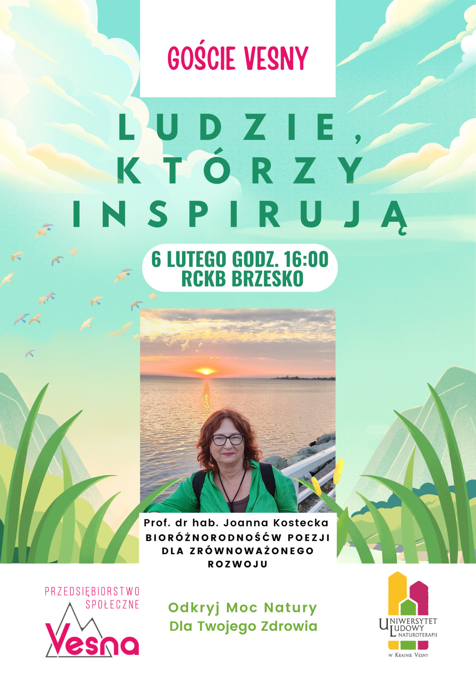 Miło nam poinformować, że 6 lutego 2025 roku, w Regionalnym Centrum Kultury w Brzesku, odbyło się spotkanie z poezją zatytułowane „Bioróżnorodność w poezji dla zrównoważonego rozwoju”. Spotkanie zostało zorganizowane w ramach działalności Uniwersytetu Ludowego Naturoterapii w Krainie Vesny.