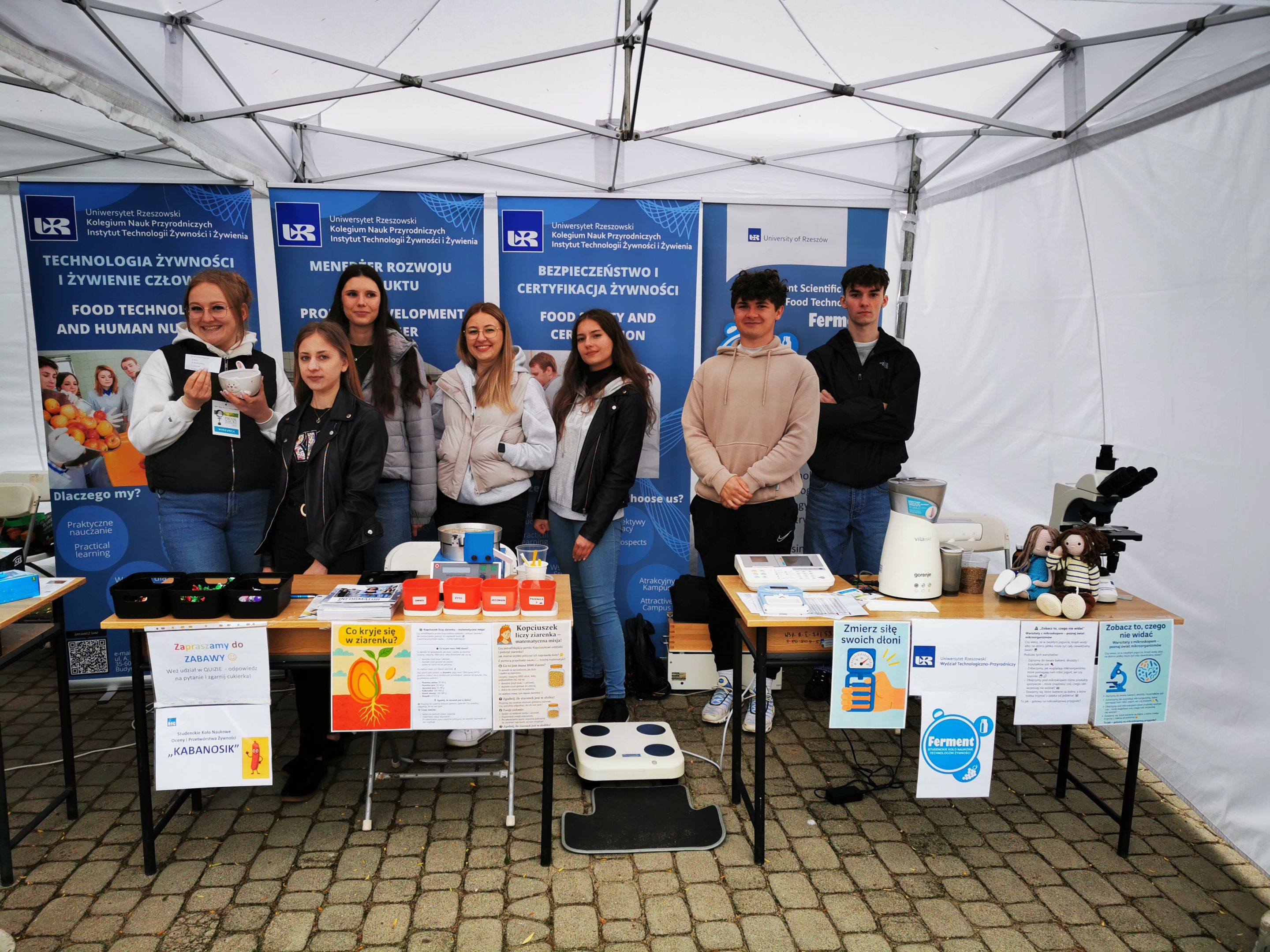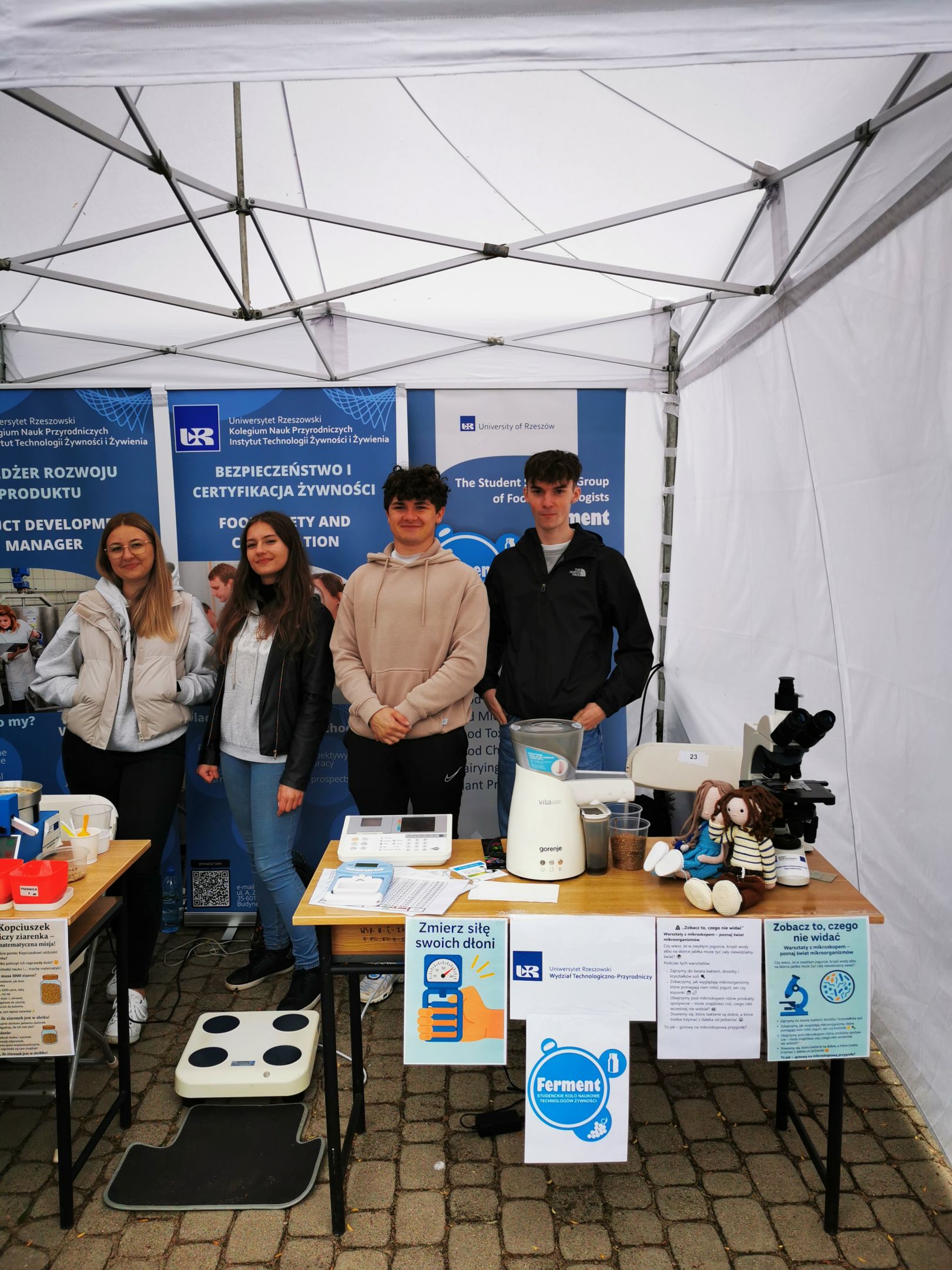 Nie zabrakło również Studenckiego Koła Naukowego Technologów Żywności FERMENT, reprezentowanego przez: Klaudię Trzpis, Martynę Szczomrzyk, Annę Ochalską, Zuzannę Stadnik, Weronikę Jasz, Gabrielę Łukasik i Aleksandrę Kucharz pod opieką dr. inż. Pawła Hanusa. Wraz z nimi działali studenci nowo powstałego Koła Naukowego Mente – Filip Kochman i Jakub Lewcio. Przygotowali oni interaktywne warsztaty:
