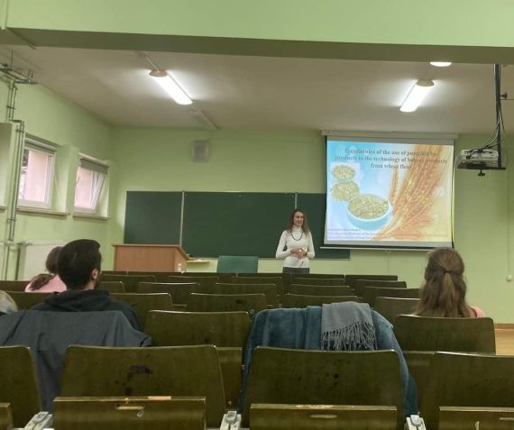 W ramach akcji kluczowej 1 "Mobilność edukacyjna" gościła w Instytucie Technologii Żywności i Żywienia dr Anastasiia Shevchenko z Narodowego Uniwersytetu Technologii Żywności w Kijowie (NUFT). Pani Doktor w dniach 11-15 grudnia 2023 r. prowadziła wykłady z zakresu technologii piekarskiej i cukierniczej dla studentów kierunku technologia żywności i żywienie człowieka. Ponadto wzięła udział w spotkaniach z kadrą zarządczą oraz pracownikami naukowymi, a także zapoznała się z zapleczem dydaktycznym Instytutu.