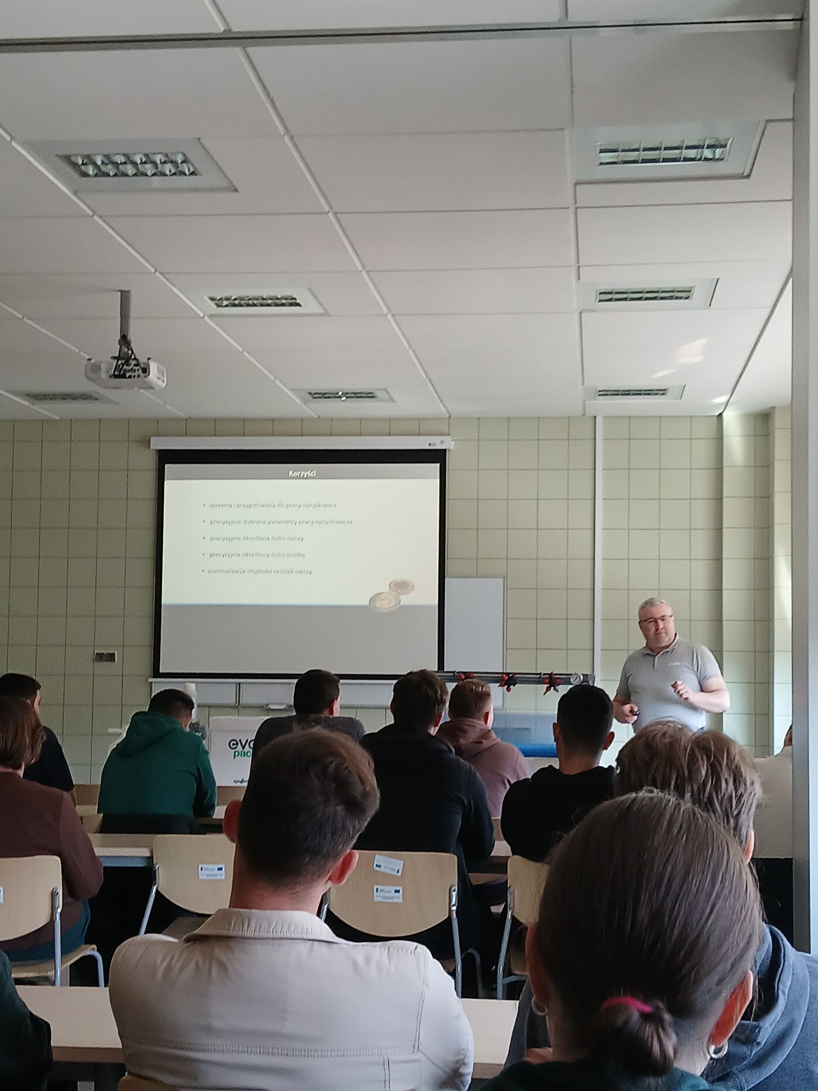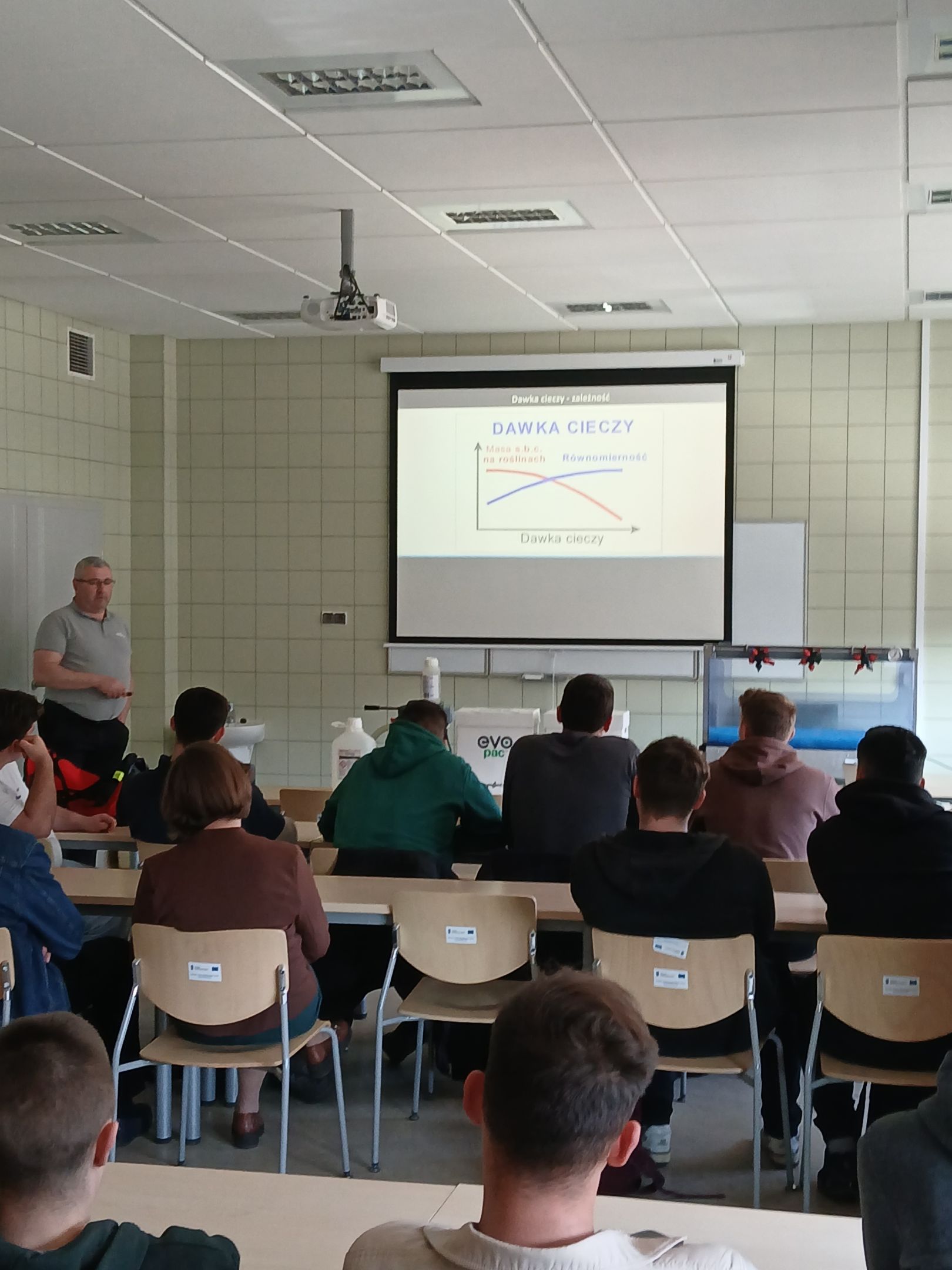 W dniu 11 marca 2026 r. dr inż. Michał Noworól ekspert z firmy Syngenta przeprowadził szkolenie dla studentów kierunku Rolnictwo, pt. "Kalibracja opryskiwacza". Na warsztatach przedstawiono zasady precyzyjnego oprysku środkami ochrony roślin, normy prędkości jazdy traktora, ciśnienia roboczego oraz rodzaju rozpylaczy w celu aplikacji odpowiedniej dawki cieczy na jednostkę powierzchni. Studenci wykazali duże zainteresowanie omawianym tematem z uwagi na aspekt prawny, ekonomiczny i środowiskowy związany z kalibracją opryskiwaczy w gospodarstwach rolnych.