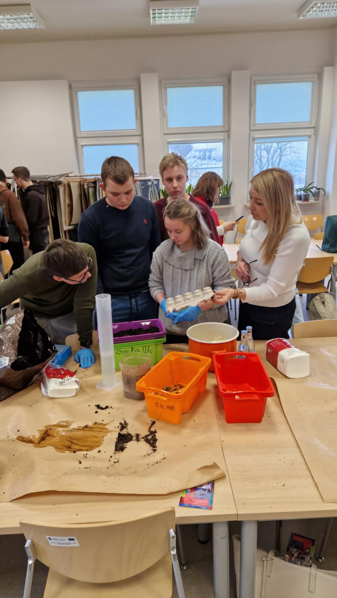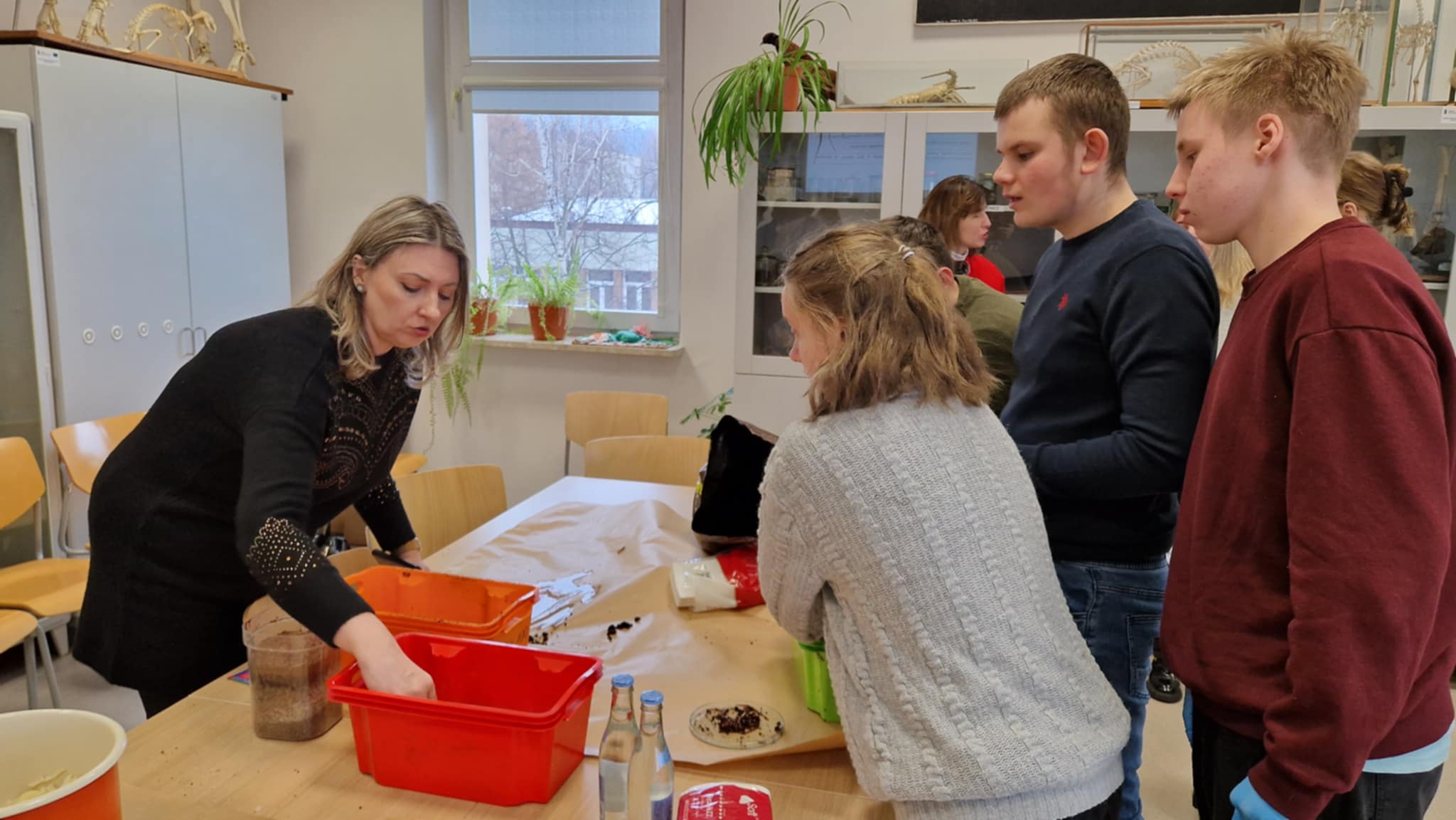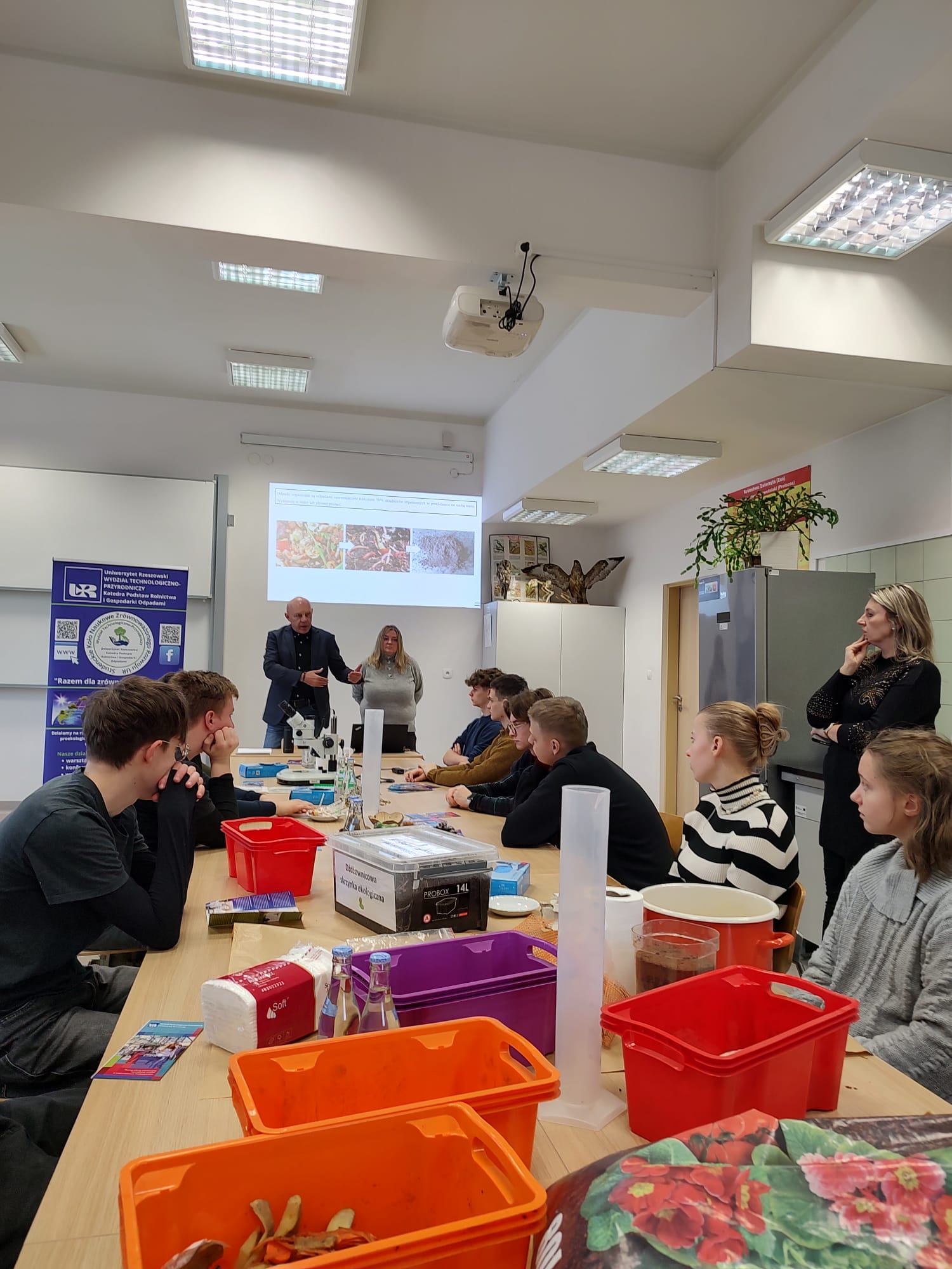 Pierwszy blok zajęć przybliżył uczestnikom rolę dżdżownic w glebie oraz ekologiczne sposoby przetwarzania odpadów organicznych. Po części wykładowej pt. „Rola wermikompostu w zrównoważonym rolnictwie i ogrodnictwie”, poprowadzonej przez dr hab. Mariolę Garczyńską, prof. UR, uczestnicy przystąpili do zajęć praktycznych, podczas których zapoznali się z proekologicznymi metodami przetwarzania odpadów, wpisującymi się w założenia gospodarki obiegu zamkniętego. Warsztaty prowadzili: dr hab. Mariola Garczyńska, prof. UR, dr Anna Mazur-Pączka, mgr inż. Renata Szura z Katedry Podstaw Rolnictwa i Gospodarki Odpadami oraz przedstawiciele SKN Zrównoważonego Rozwoju.