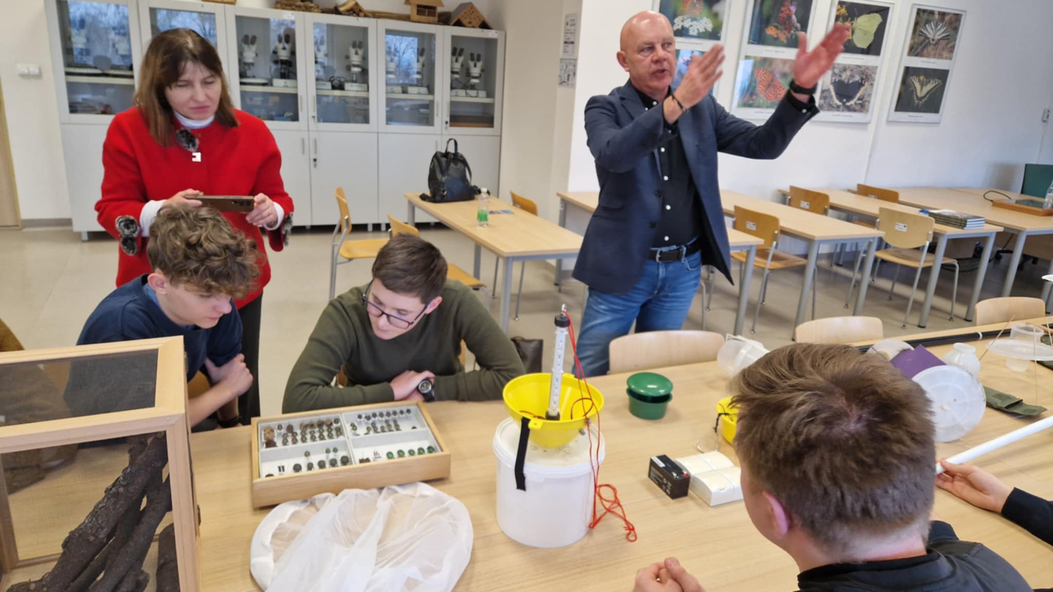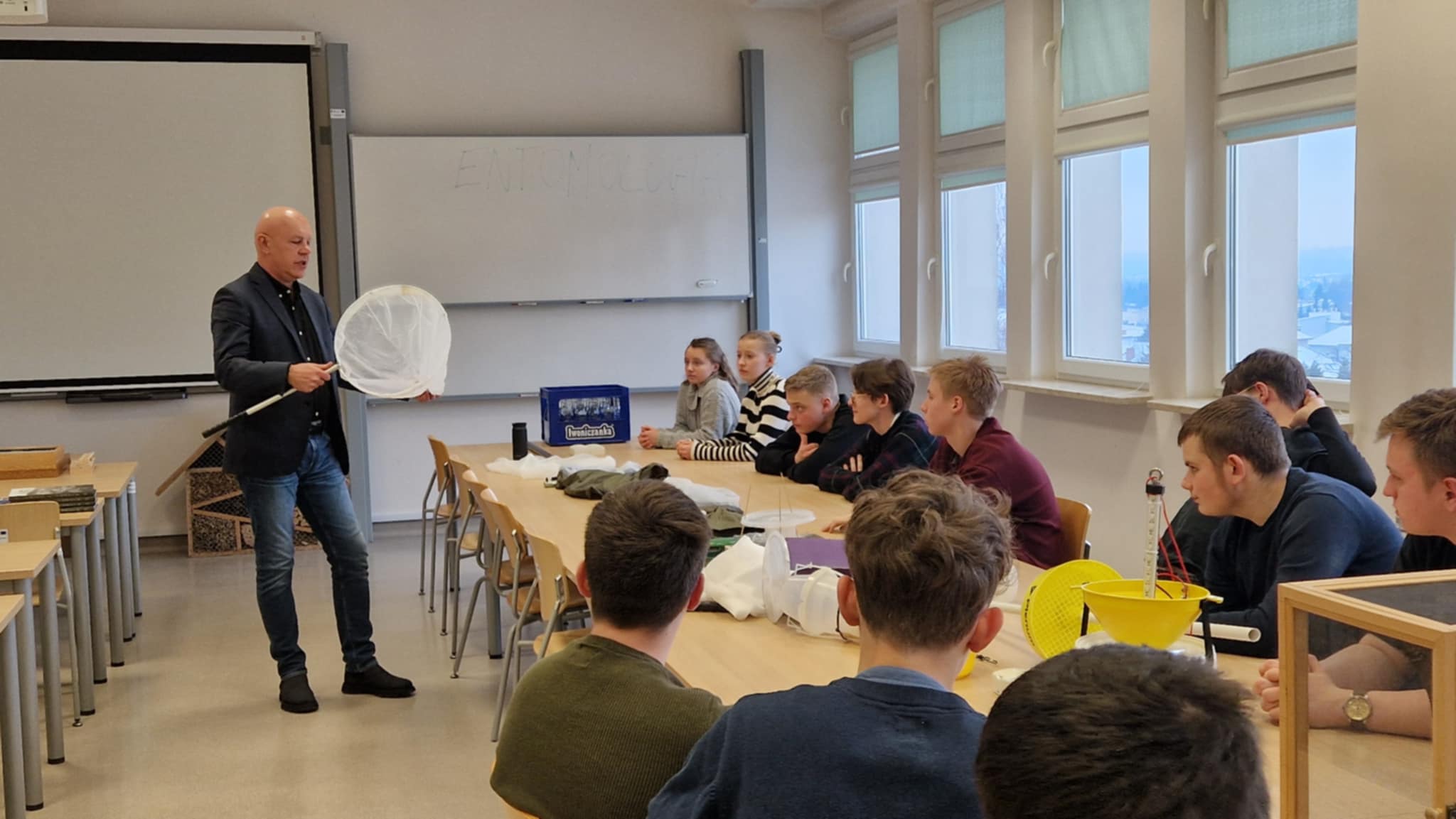 Drugą część zajęć, zatytułowaną „Metody odławiania i preparowania owadów”, poprowadził dr inż. Tomasz Olbrycht z Katedry Agroekologii i Użytkowania Lasu, który wprowadził uczestników w tematykę badań entomologicznych. W trakcie warsztatów uczestnicy poznali metody oraz narzędzia wykorzystywane przez entomologów podczas badań terenowych. Zaprezentowano m.in. różne typy siatek i czerpaków entomologicznych, pułapki barierowe, pułapki Moerickego i Barbera, a także parasole oraz sita entomologiczne. Omówiono również sposoby pozyskiwania materiału przeznaczonego do hodowli owadów saproksylicznych. Zajęcia zakończył krótki wykład poświęcony metodom preparowania owadów, zasadom etykietowania okazów oraz właściwemu przechowywaniu kolekcji naukowych.