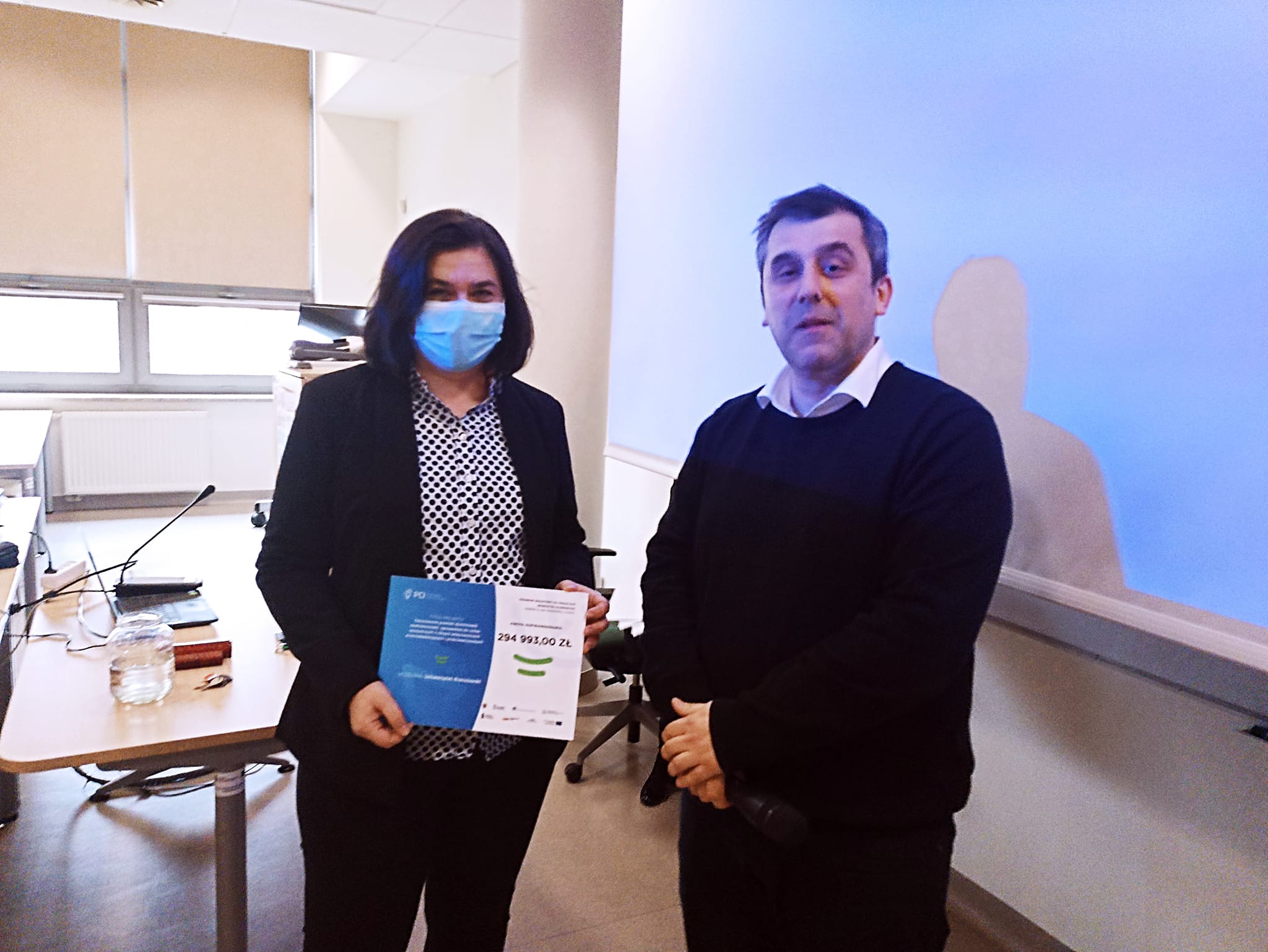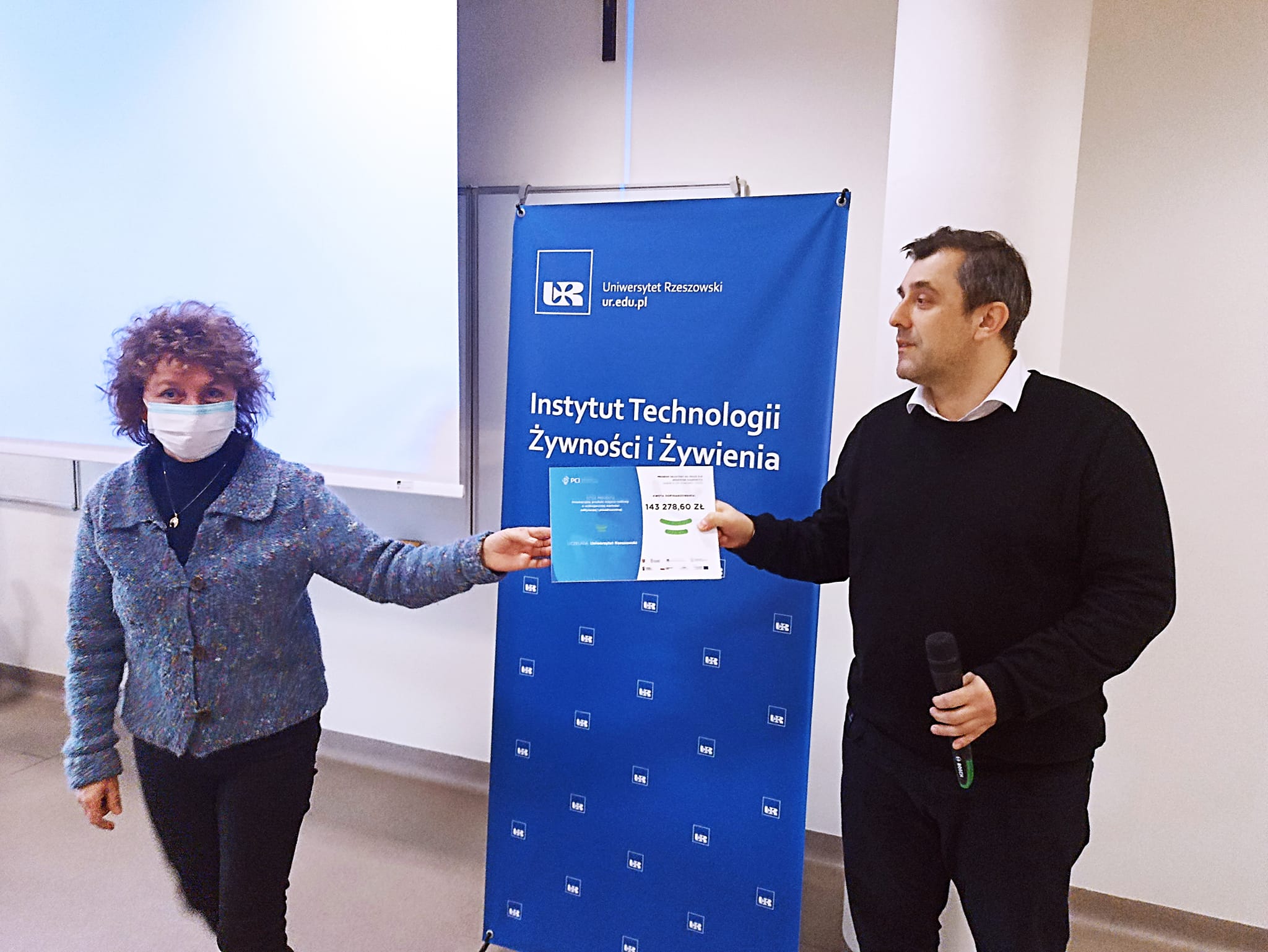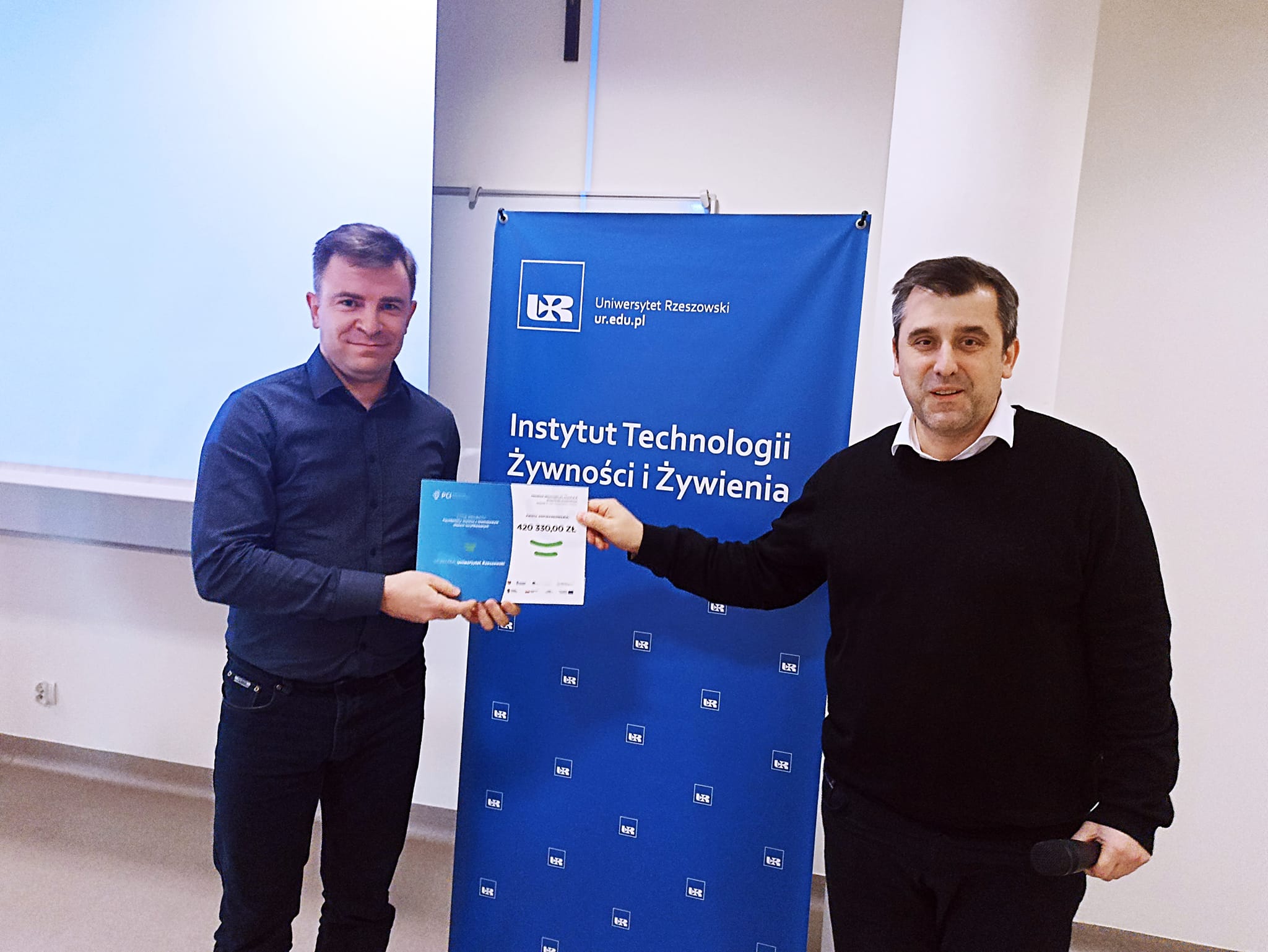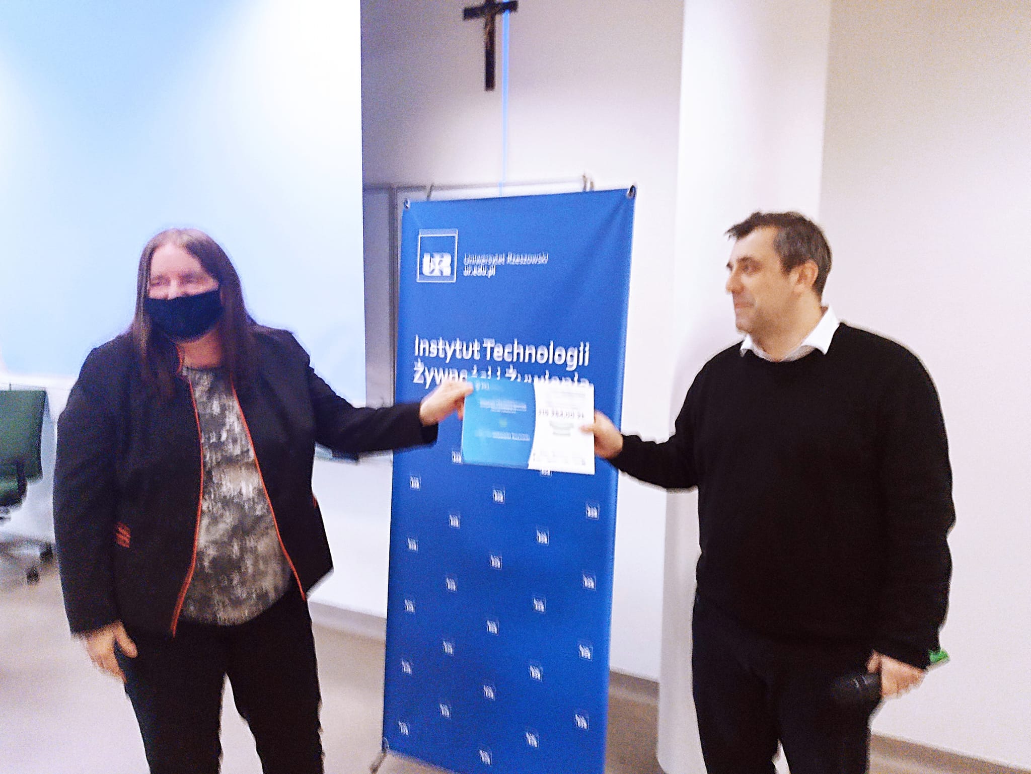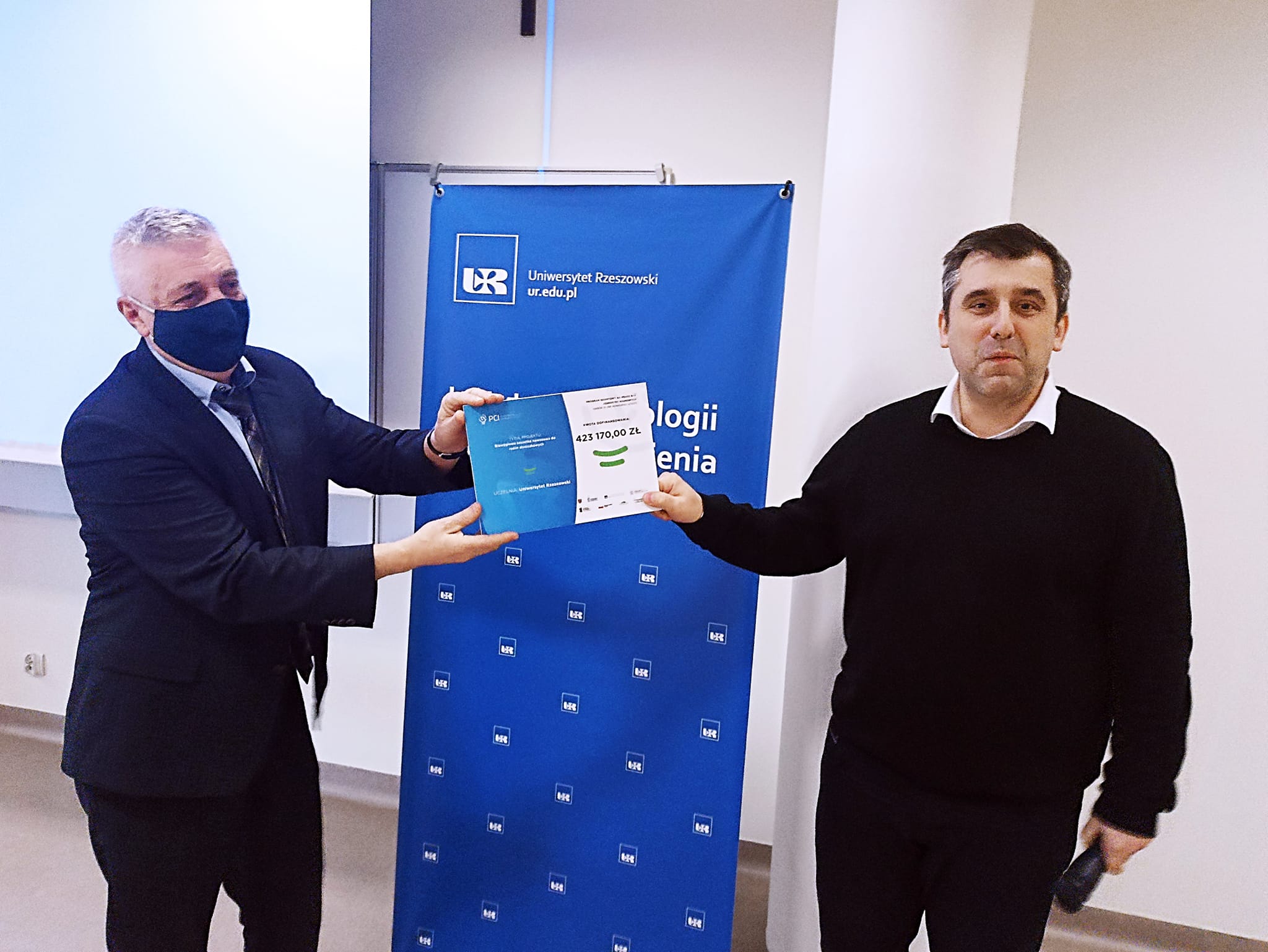 W dniu 8 marca 2022 roku, w obecności Pani Prorektor Prof. dr hab. Idalii Kasprzyk, koordynatorzy projektów finansowanych w ramach Podkarpackiego Centrum Innowacji, odebrali z rąk Pana Dyrektora dr hab. Ireneusza Kapusty, prof. UR, symboliczne czeki na realizację grantów badawczych