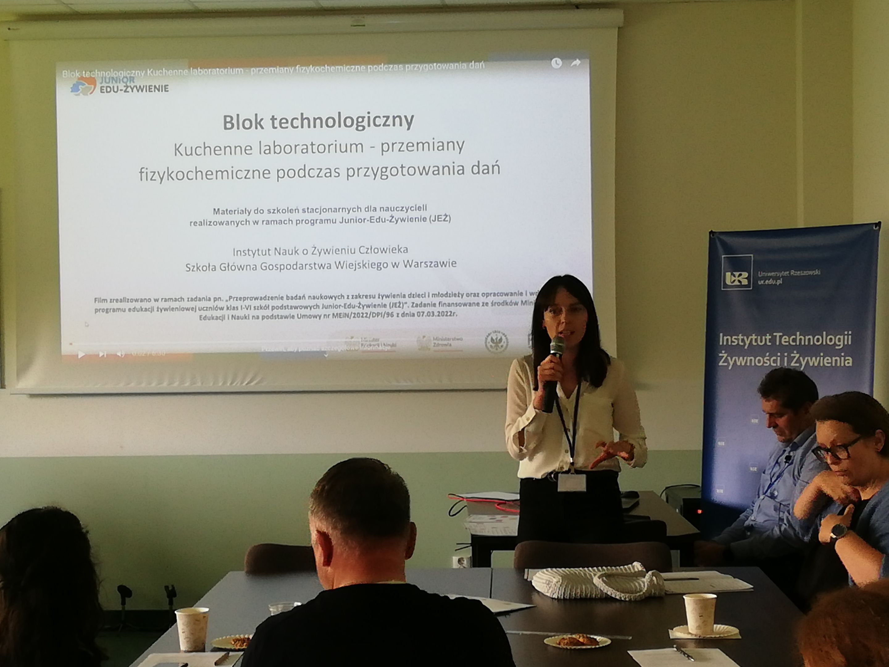 W dniach 12 i 14 czerwca 2023 r. odbyły się szkolenia, w formie warsztatowej, dla nauczycieli klas 4-6 podkarpackich szkół podstawowych, w ramach zadania „Przeprowadzenie badań naukowych z zakresu żywienia dzieci i młodzieży oraz opracowanie i wdrożenie programu edukacji żywieniowej uczniów klas I-VI szkół podstawowych – Junior-Edu-Żywienie (JEŻ)”, finansowanego ze środków MEiN, które jest realizowane przez Instytut Nauk o Żywieniu Człowieka Szkoły Głównej Gospodarstwa Wiejskiego w Warszawie (MEiN/2022/DPI/96 z dnia 07.03.2022 r.).