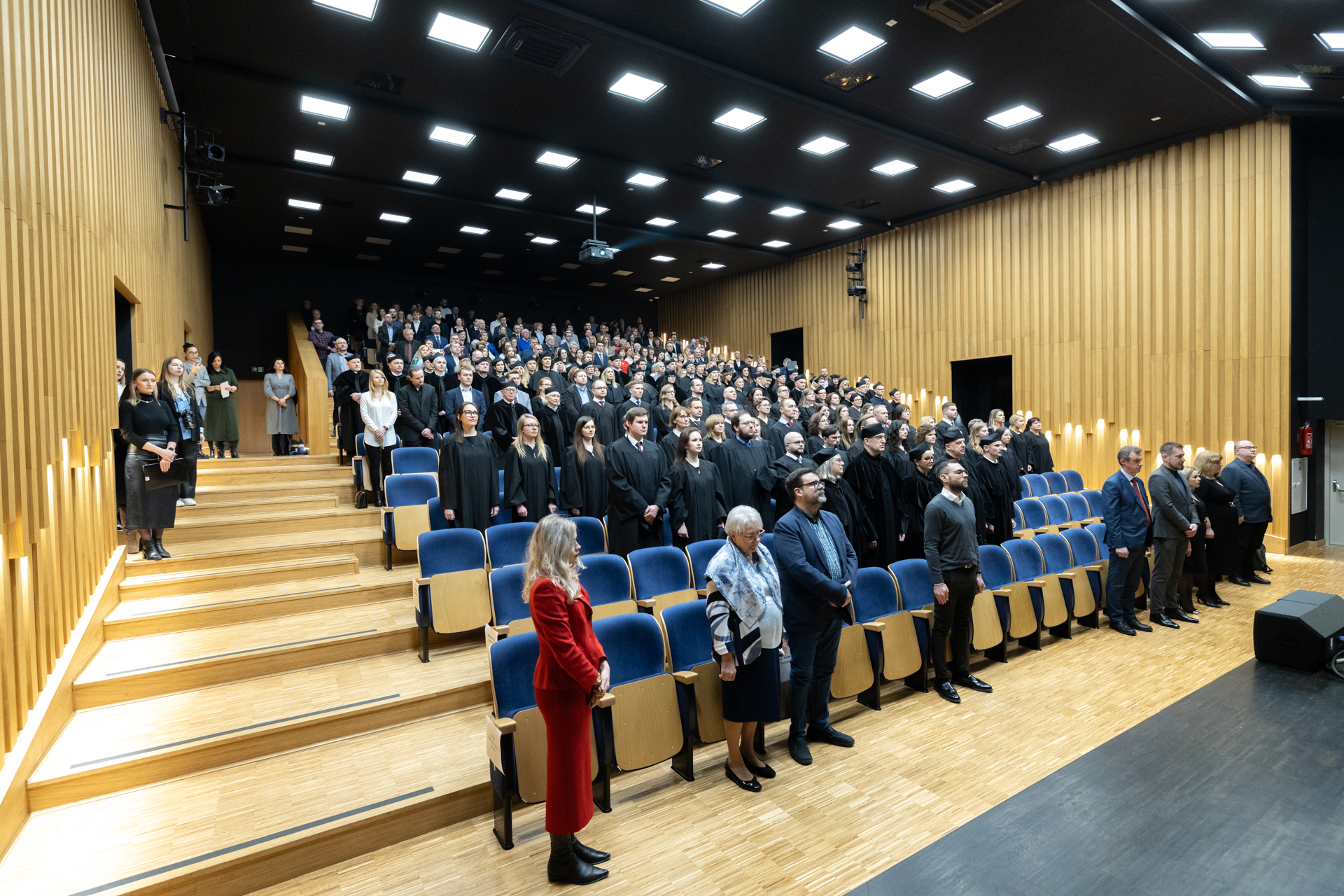Prof. dr hab. Elżbieta Feret, Prorektor ds. Kolegium Nauk Społecznych zaprosiła na scenę osoby, którym Rada Naukowa Kolegium Nauk Społecznych przyznała stopień naukowy doktora.