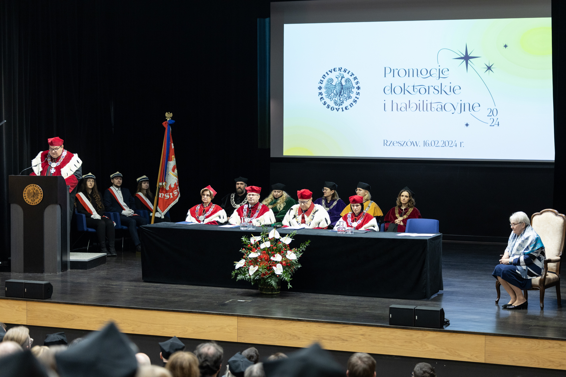 Uroczystość promocji doktorskiej ma szczególny charakter. Jest ona bowiem końcowym, miłym akcentem wieloletniego trudu doktorów, niewymiernej opieki naukowej promotorów i życzliwej troski wielu ogniw instytucjonalnych naszej Uczelni. - mówił JM prof. dr hab. Sylwester Czopek, Rektor Uniwersytetu Rzeszowskiego.