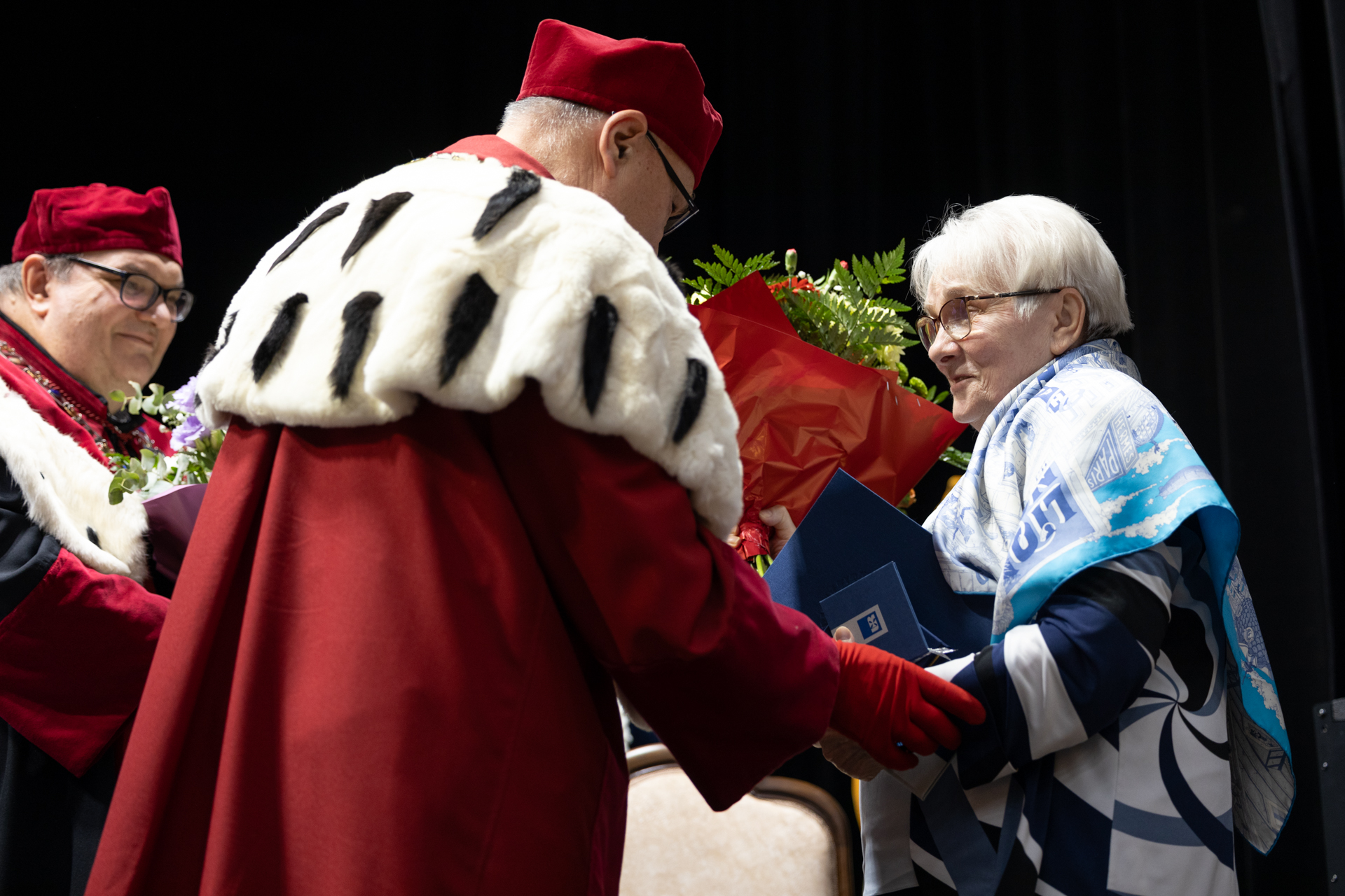 Uroczystość rozpoczęła się wręczeniem Medalu Uniwersytetu Rzeszowskiego dla prof. Anny Wilmowskiej-Pietruszynskiej. Prof. dr hab. n. med. Artur Mazur, Prorektor ds. Kolegium Nauk Medycznych przedstawił sylwetkę Odznaczonej. JM Rektor wręczył Medal prof. Annie Wilmowskiej-Pietruszynskiej, kwiaty wręczyła studentka reprezentująca „Resovię Saltans”.