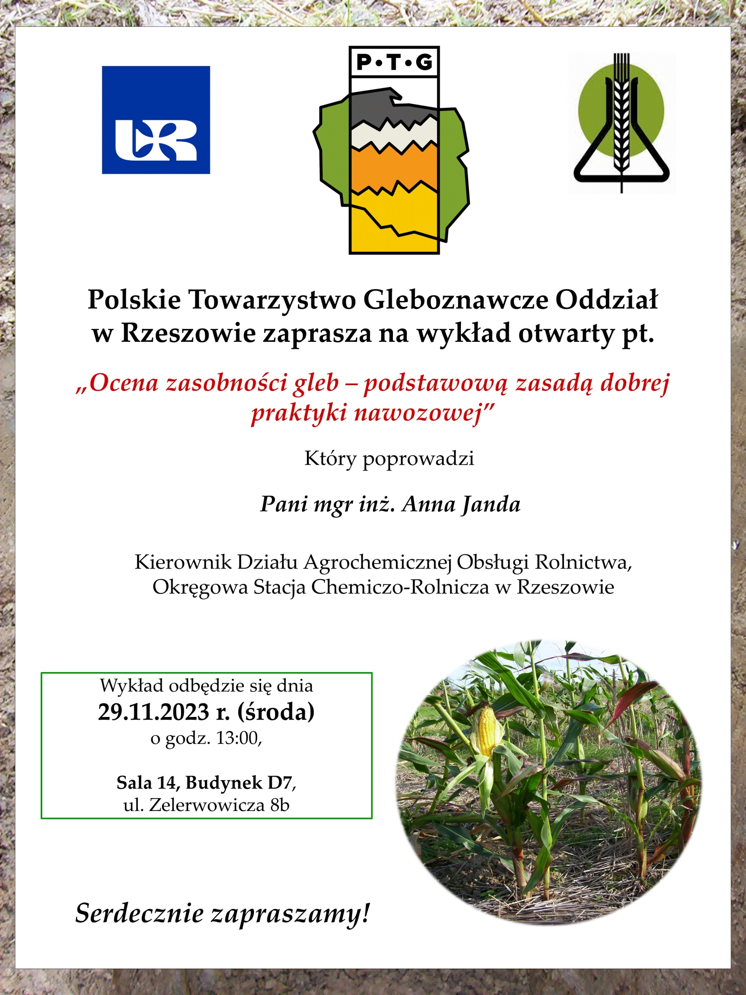 Zaproszenie na wykład otwarty pt. Ocena zasobności gleb - podstawową zasadą dobrej praktyki nawozowej