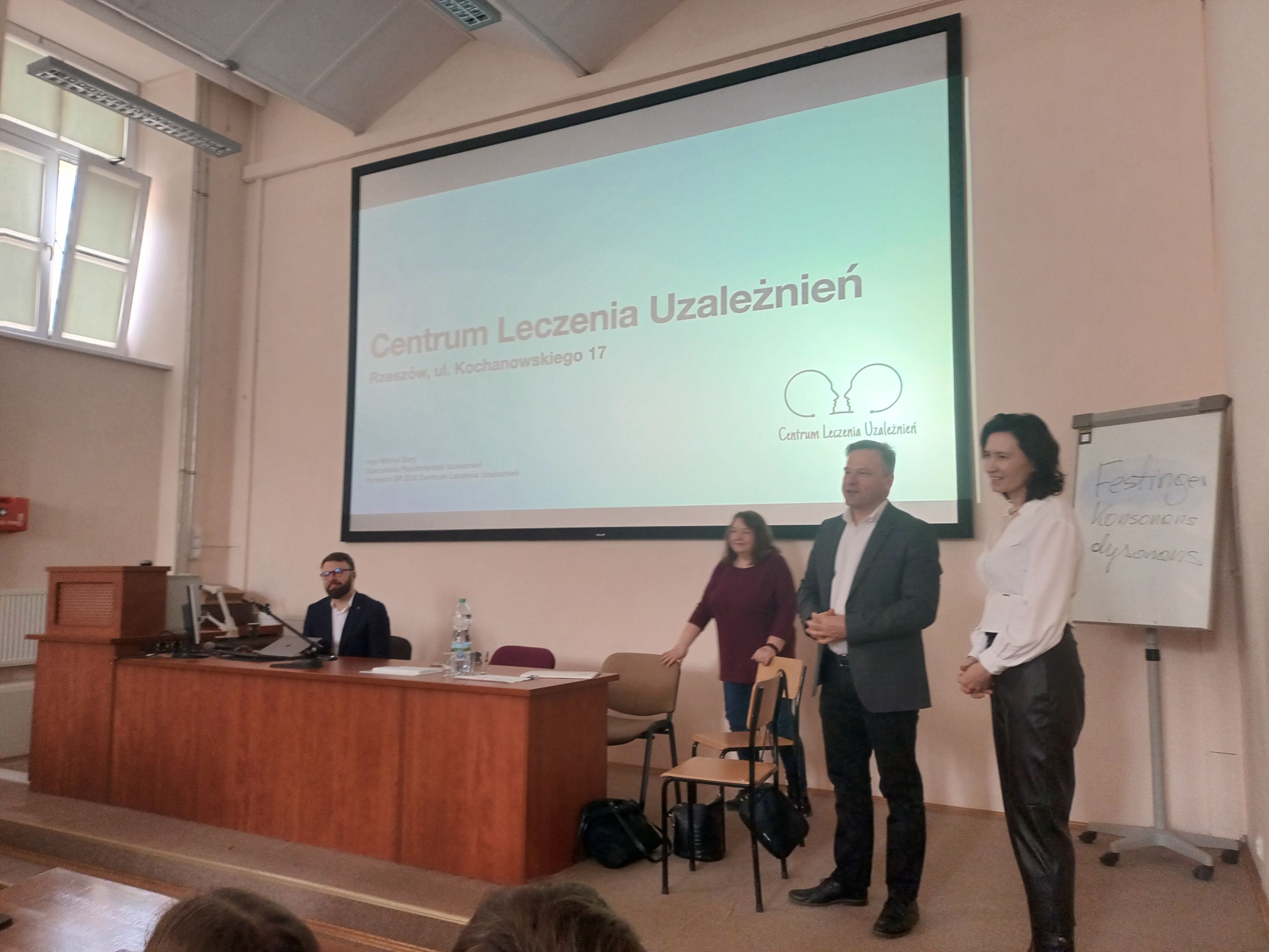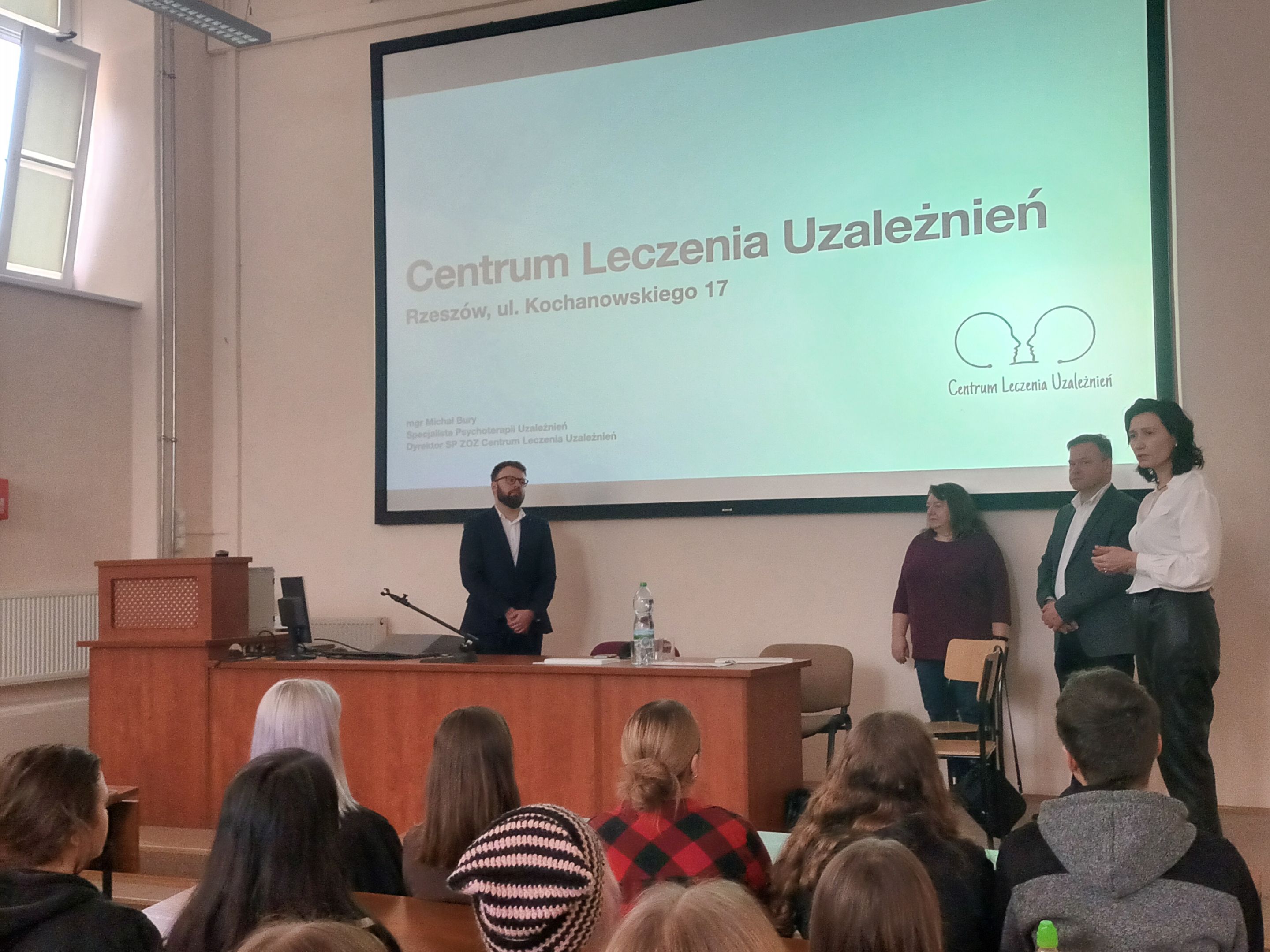14.03.2024 roku odbyło się spotkanie z Panem Dyrektorem Centrum Leczenia Uzależnień w Rzeszowie mgr Michałem Burym. Studenci mieli możliwość wysłuchania znakomitego wykładu poświęconego zadaniom i metodom pracy terapeutycznej i profilaktycznej, które realizuje Centrum. Pan Dyrektor – specjalista terapii uzależnień – wyjaśnił zaburzone mechanizmy funkcjonowania charakterystyczne dla osób uzależnionych oraz współuzależnionych, przedstawił schematy cyklu terapeutycznego oraz formy pracy profilaktycznej. Po szczegóły dotyczące pracy Centrum odsyłamy do stron internetowych, które najserdeczniej rekomendujemy: