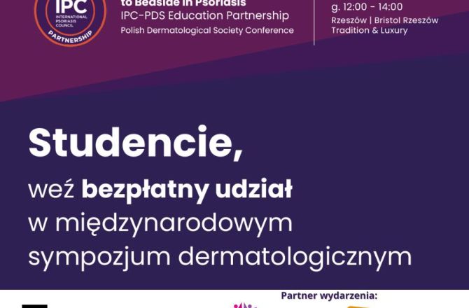 zobacz więcej Studenci kierunków medycznych zaproszeni na bezpłatne sympozjum dermatologiczne IPC-PDS „Lessons from the Bench to Bedside in Psoriasis”
